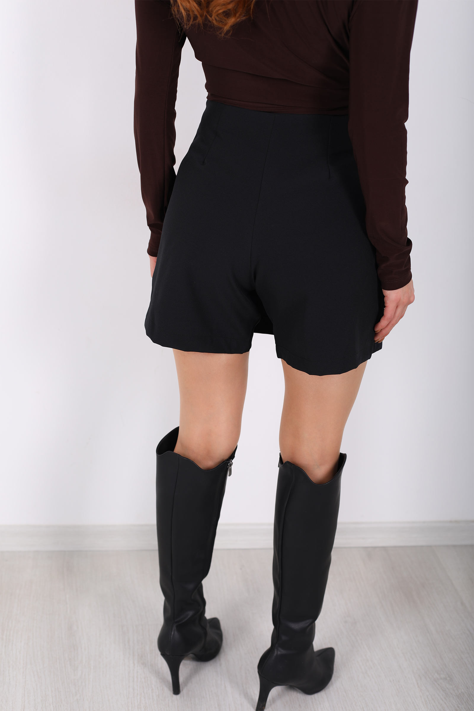 Aksesuarlı Mini Siyah Kadın Şort Etek