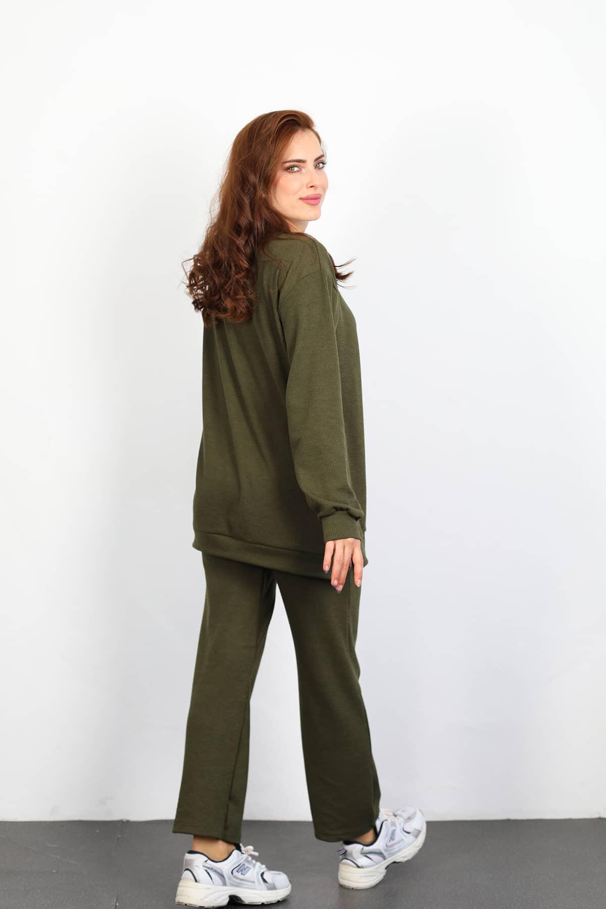 Çimalı Modal Pantolon - Crop Haki Kadın Takım