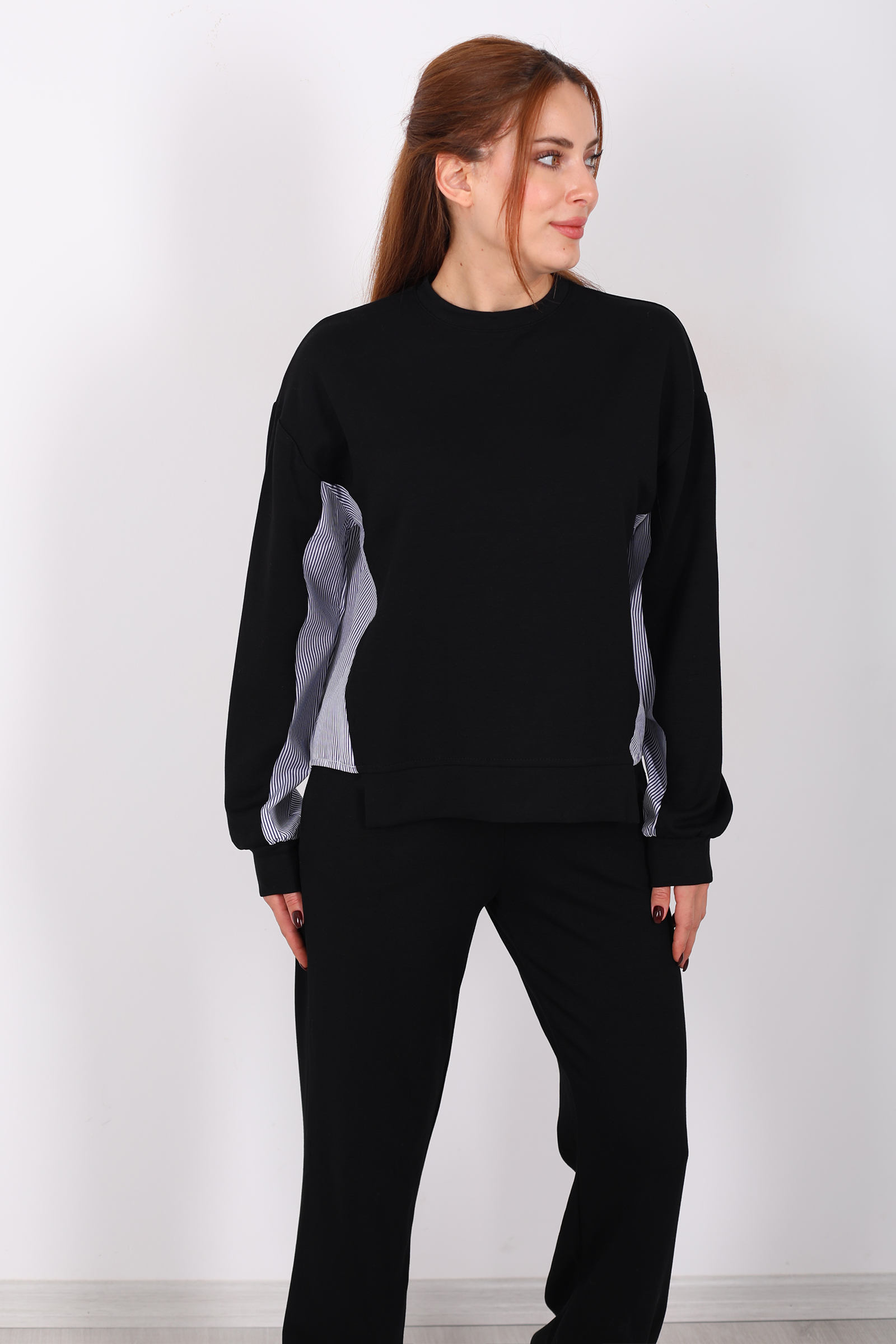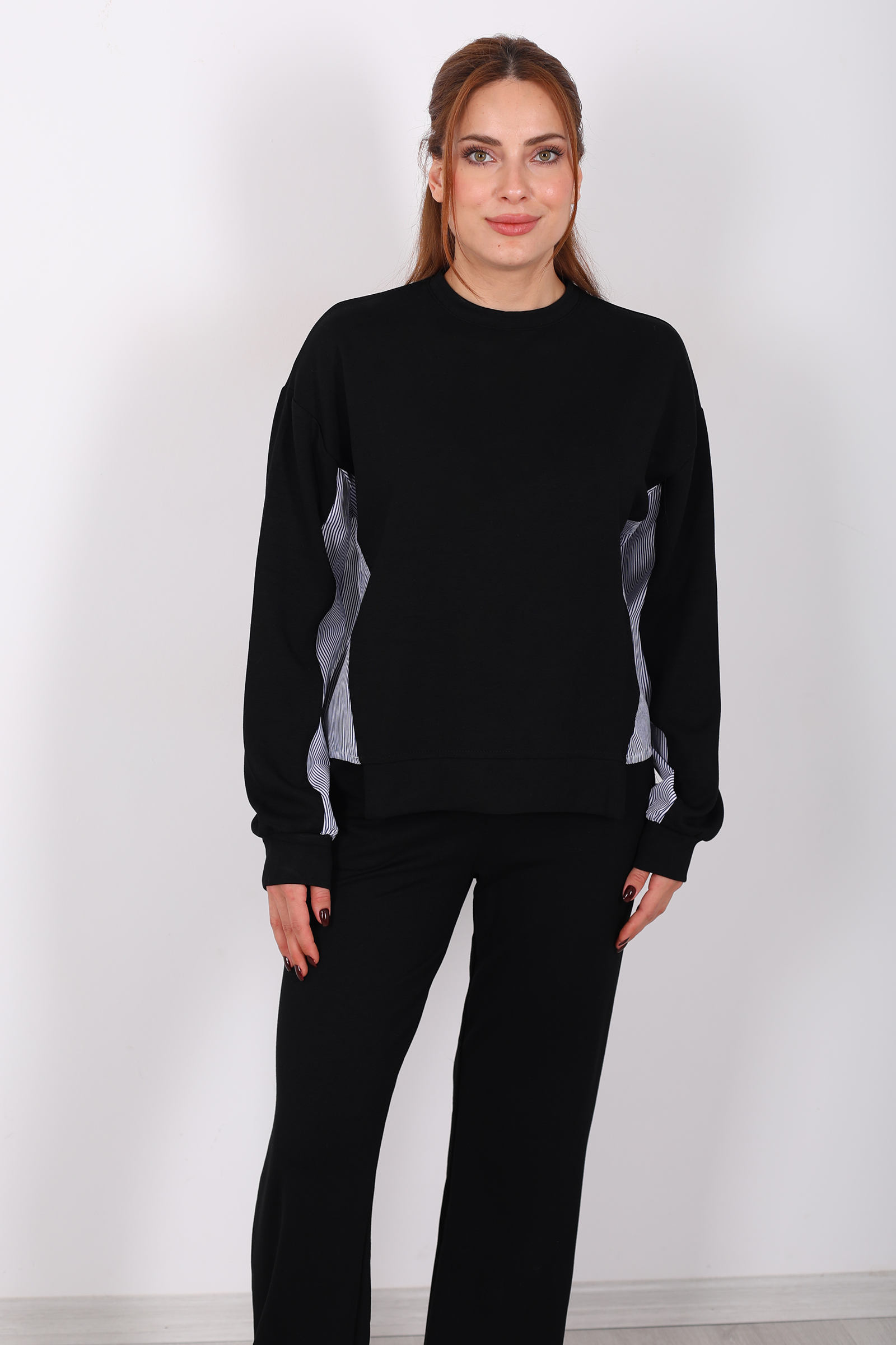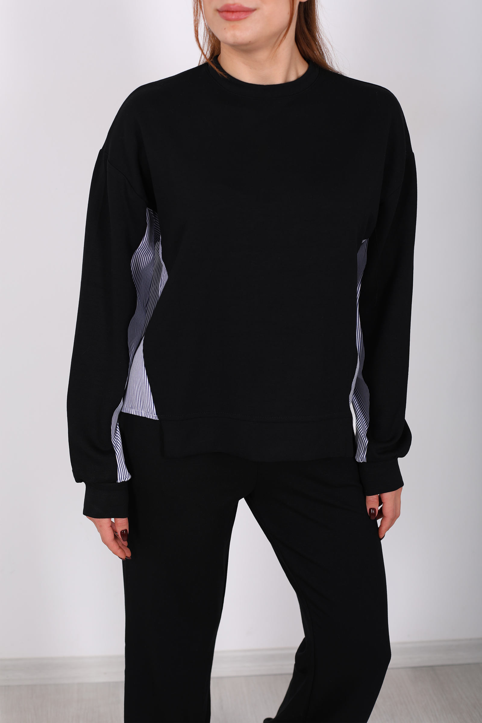 Arka Gömlek Garnili Siyah Kadın Modal Takım
