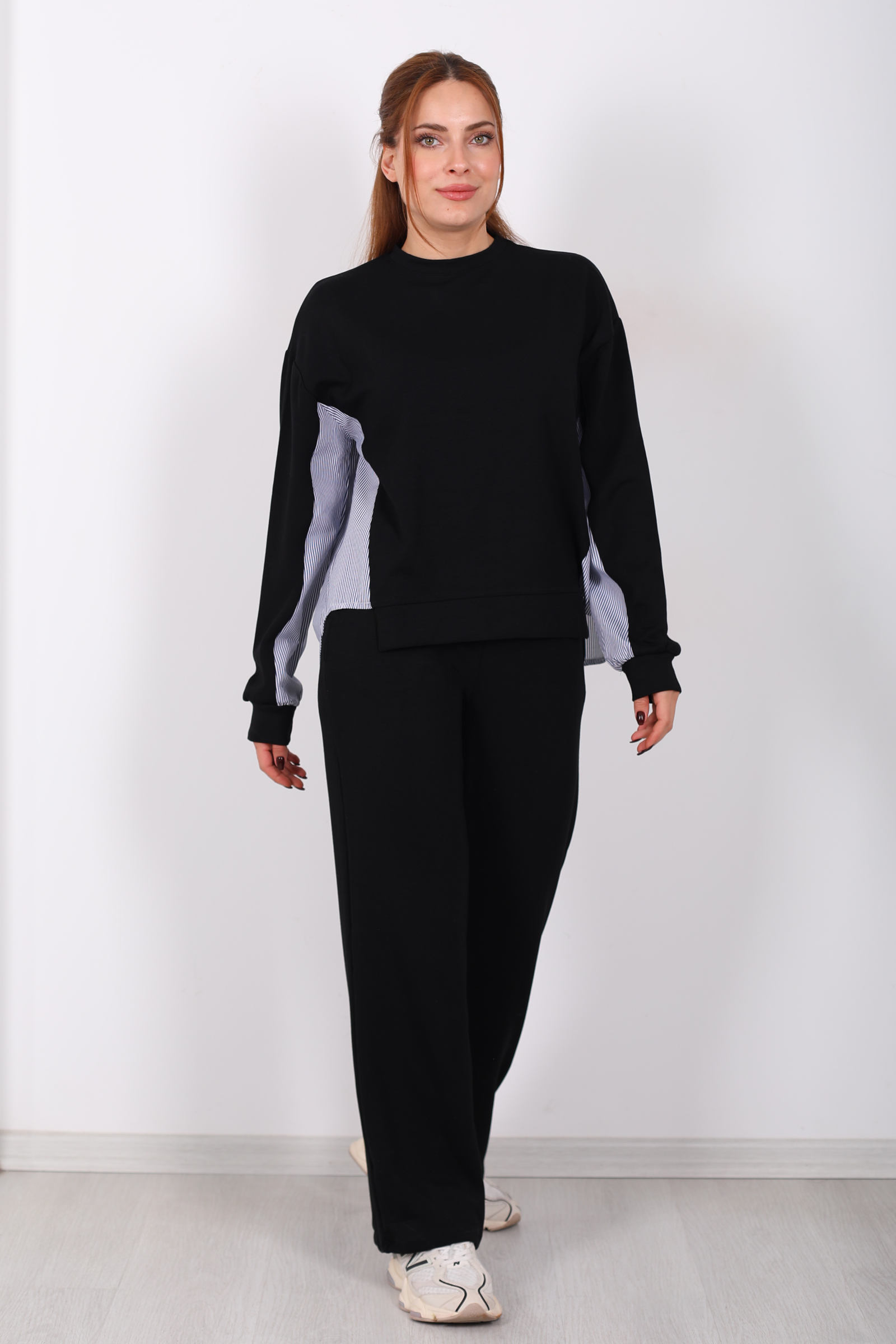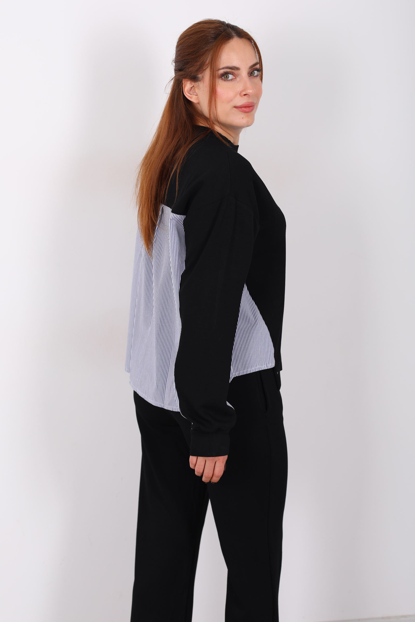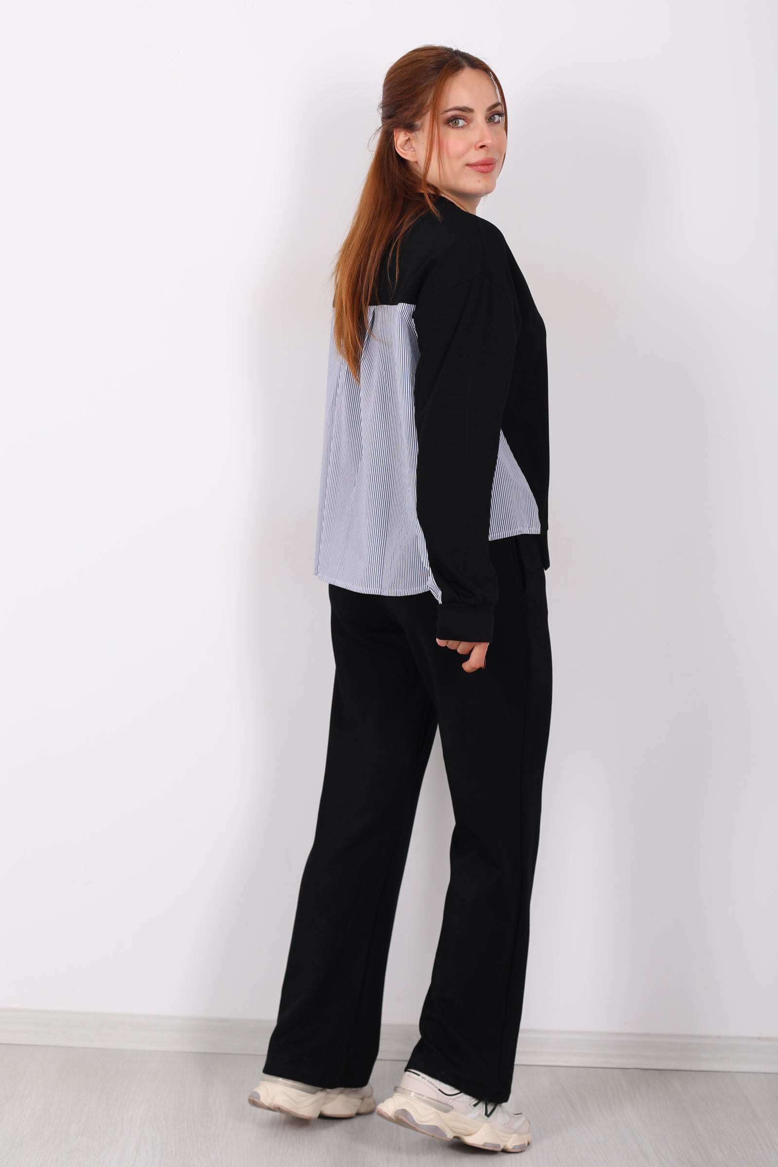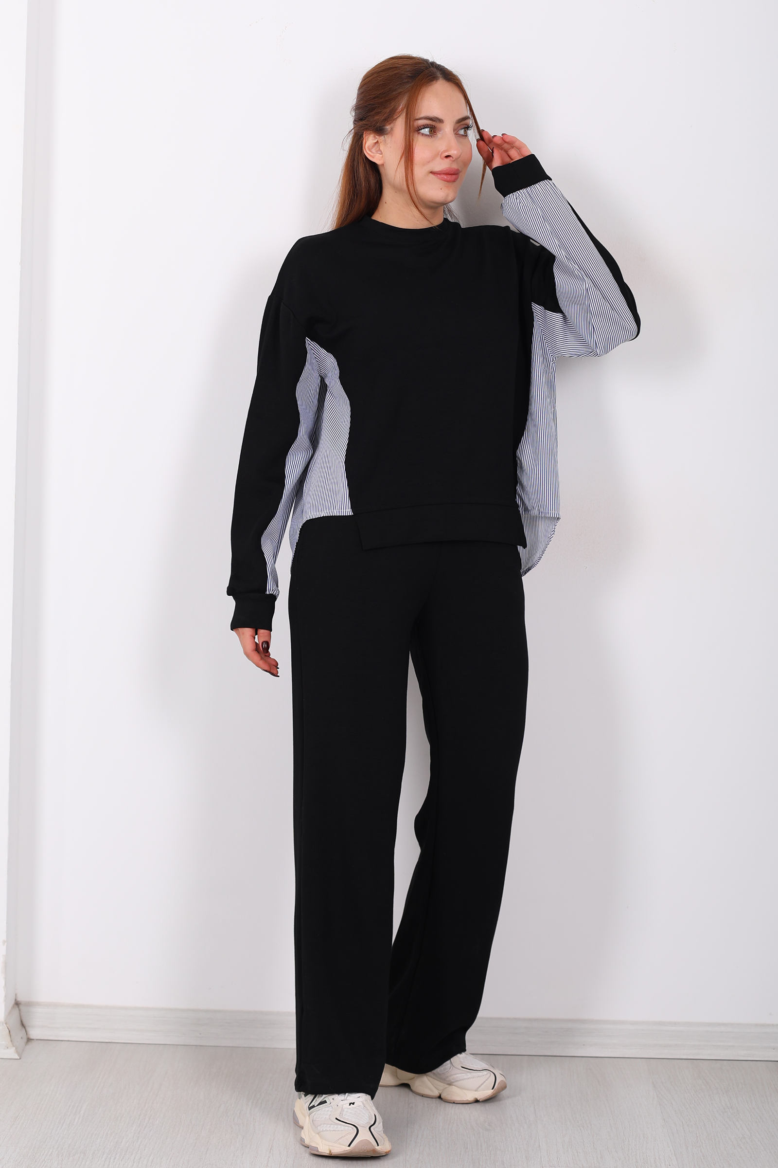Arka Gömlek Garnili Siyah Kadın Modal Takım