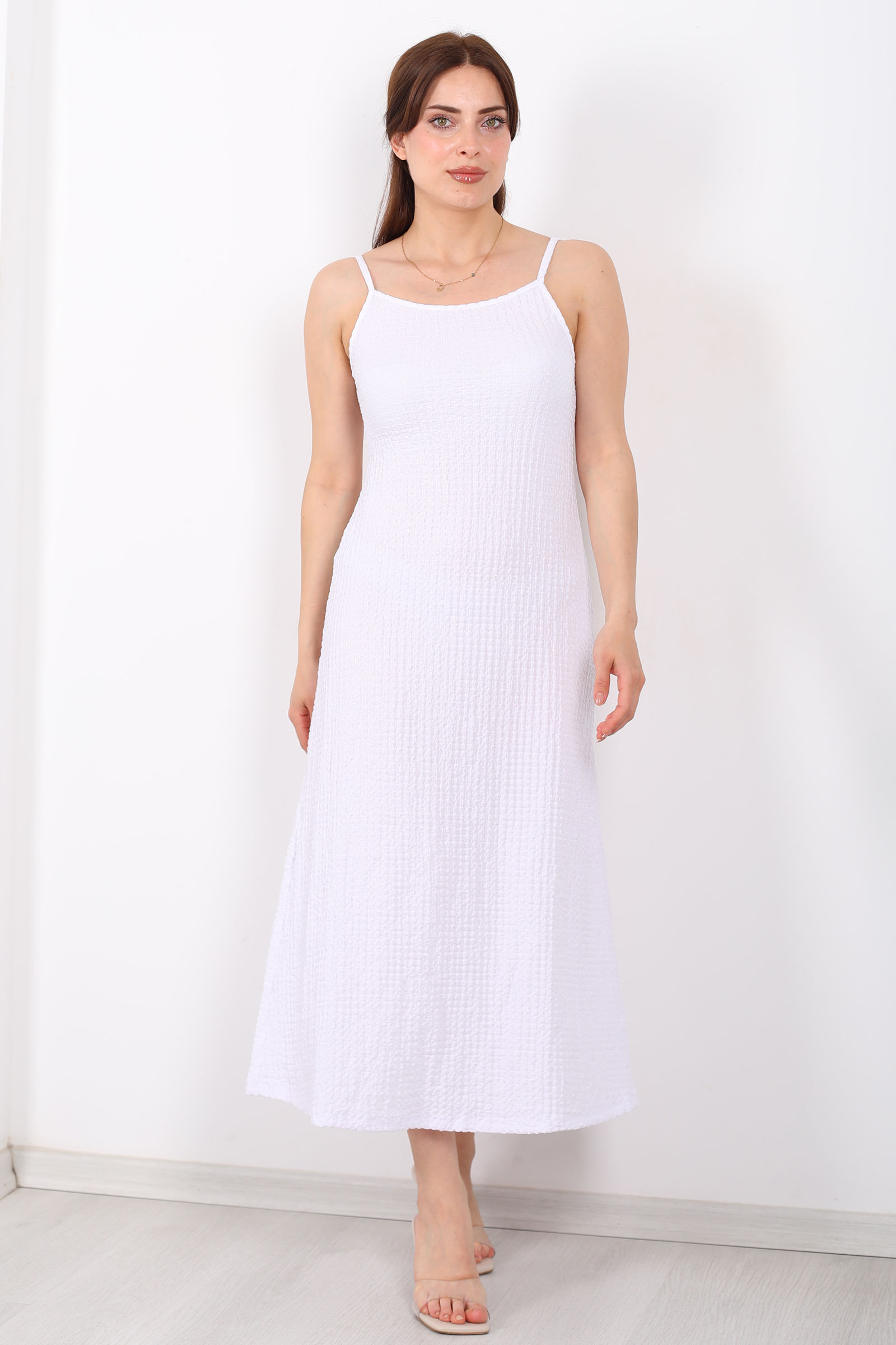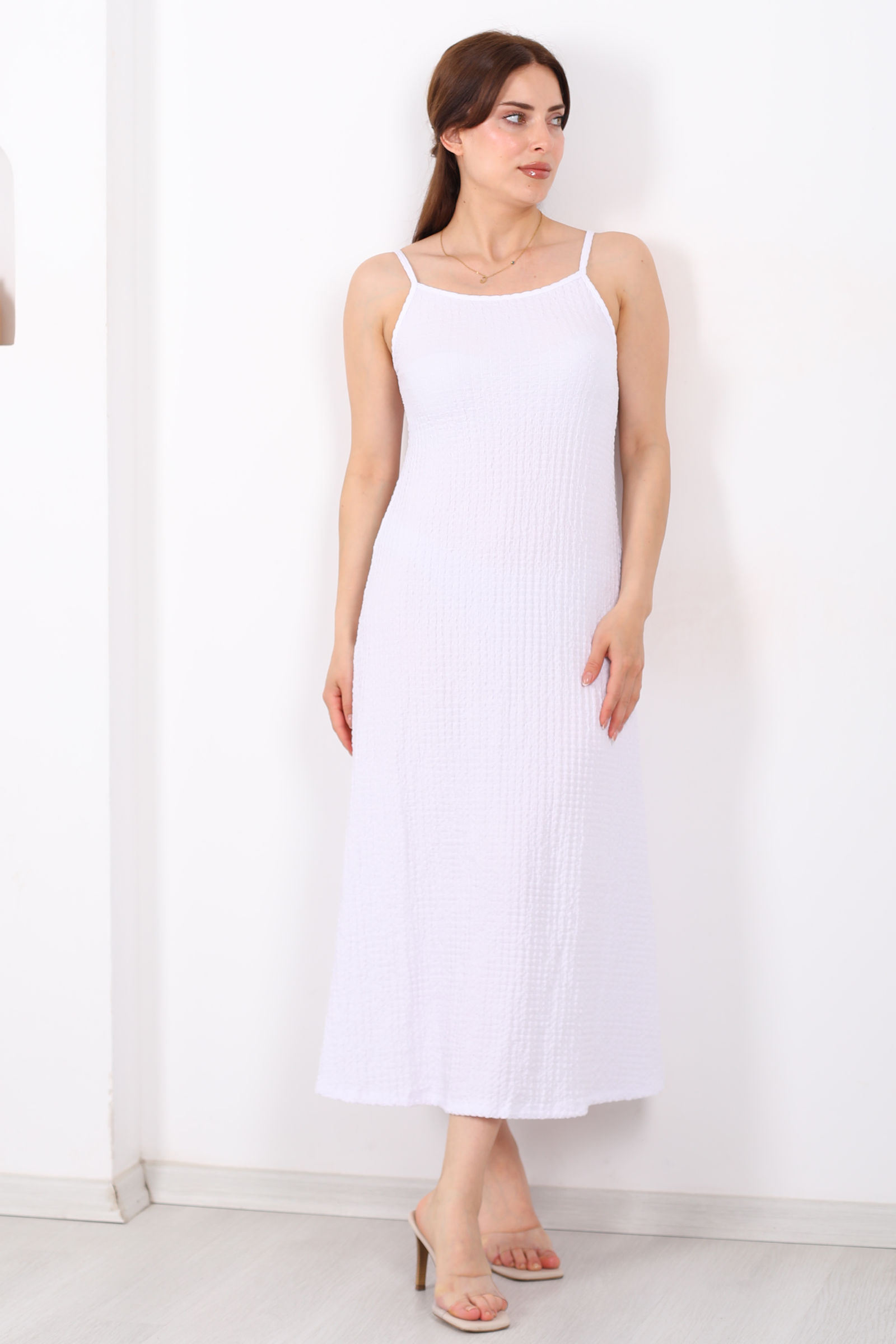 Askılı Bubble Kadın Beyaz Midi Elbise