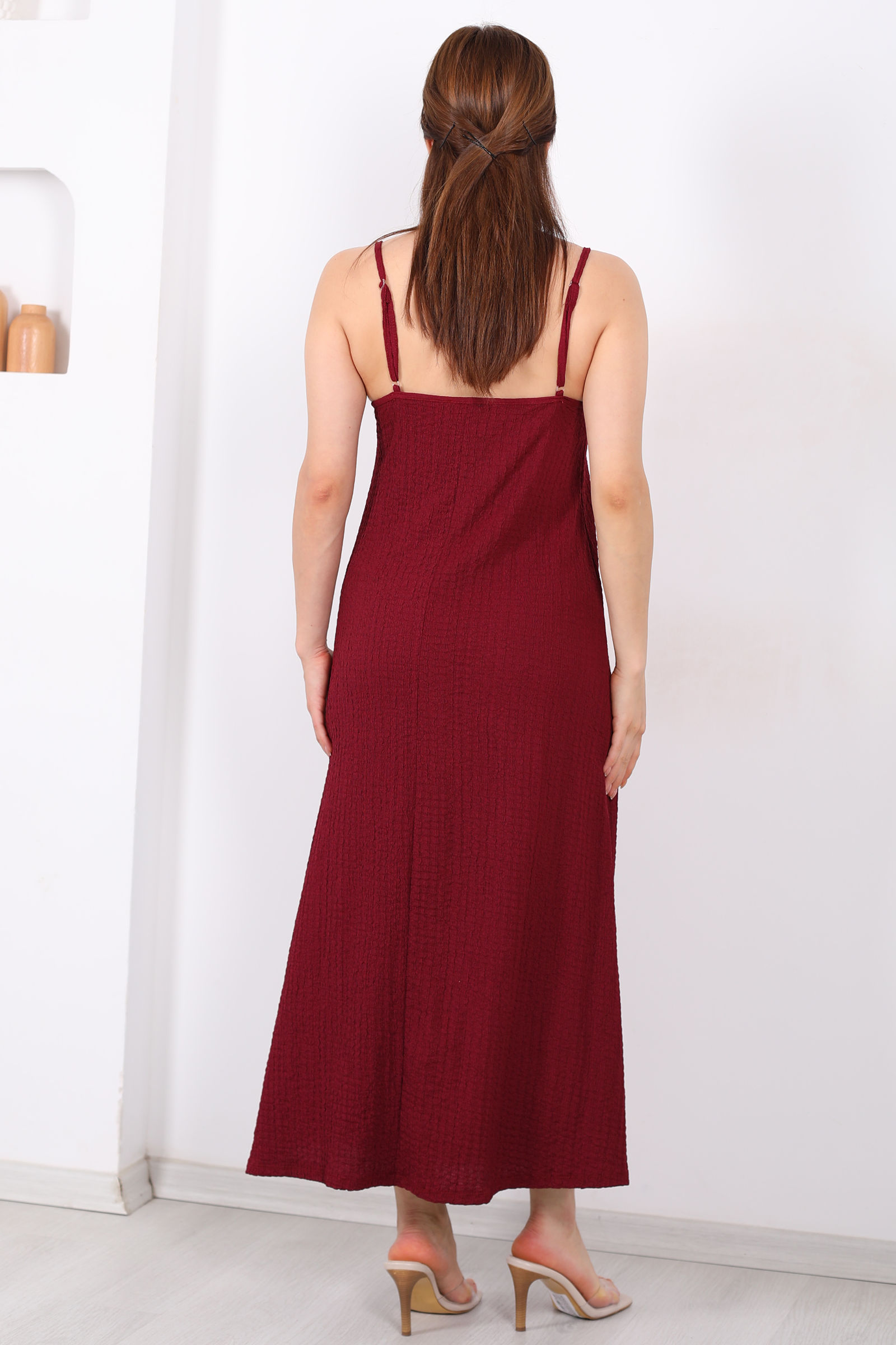 Göğüs Pileli Kemerli Önü Yırtmaçlı Kahverengi Kadın Elbise