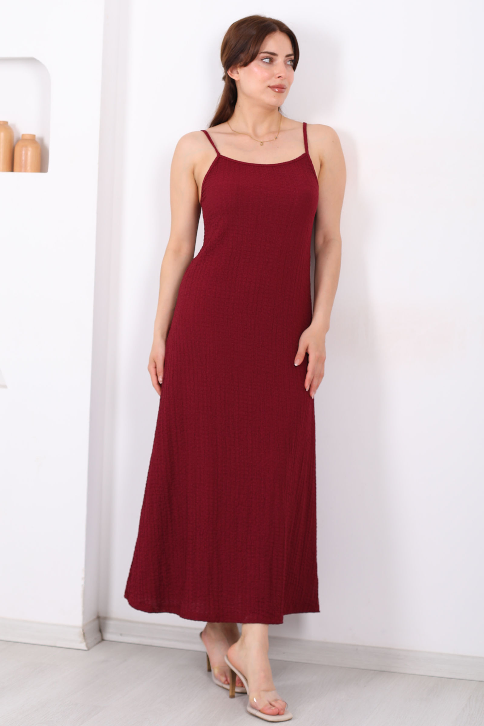 Askısı Taşlı Drape Detaylı Yırtmaçlı Taş Rengi Kadın Uzun Balık Elbise