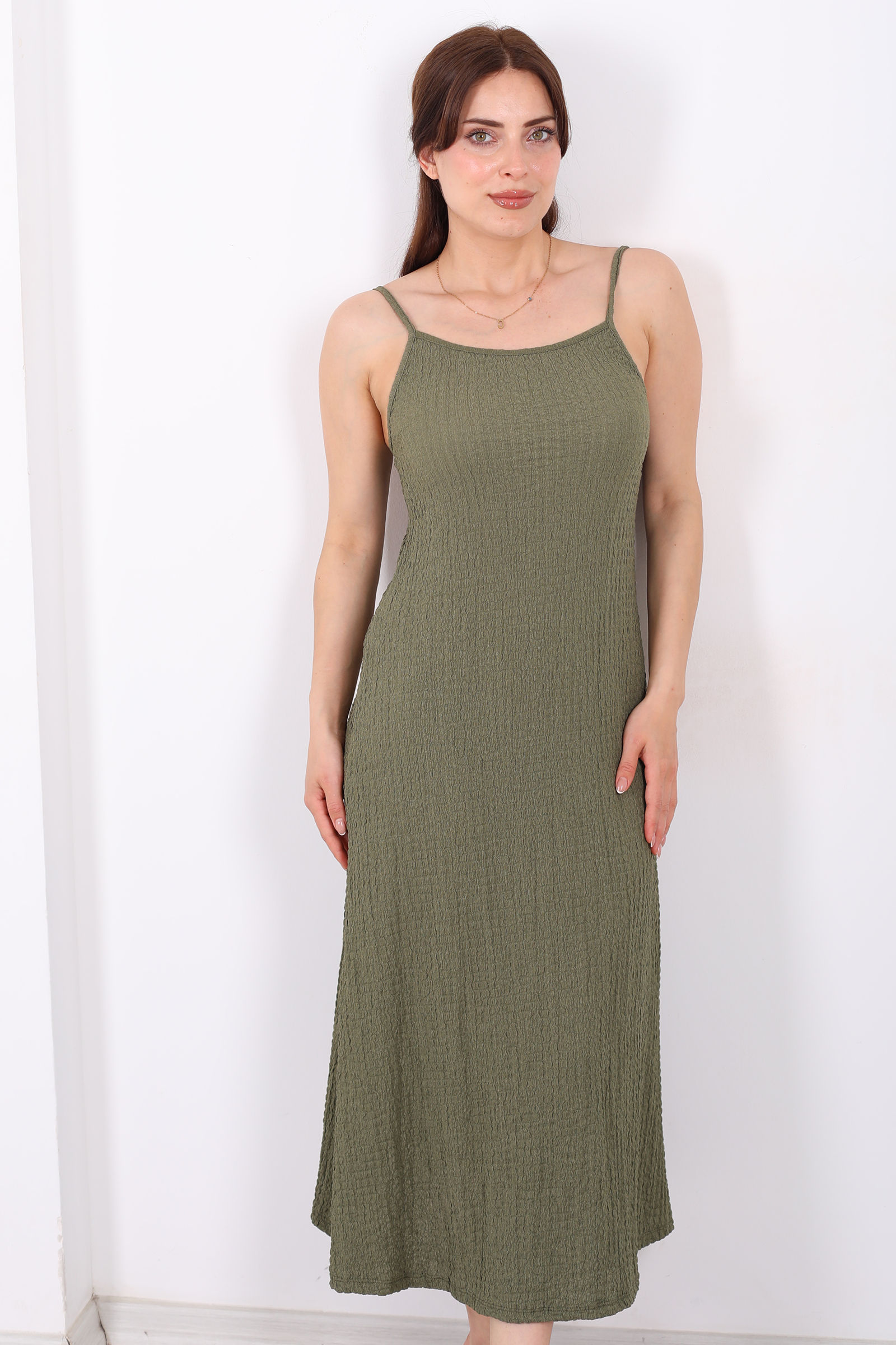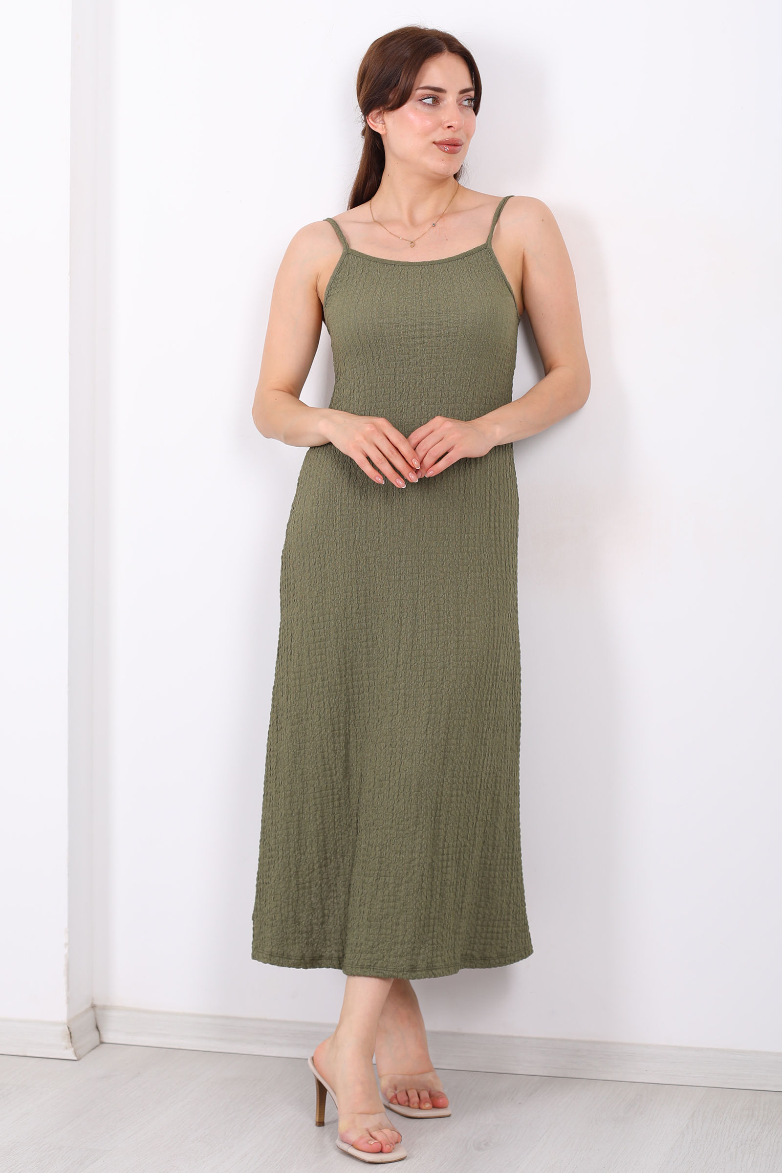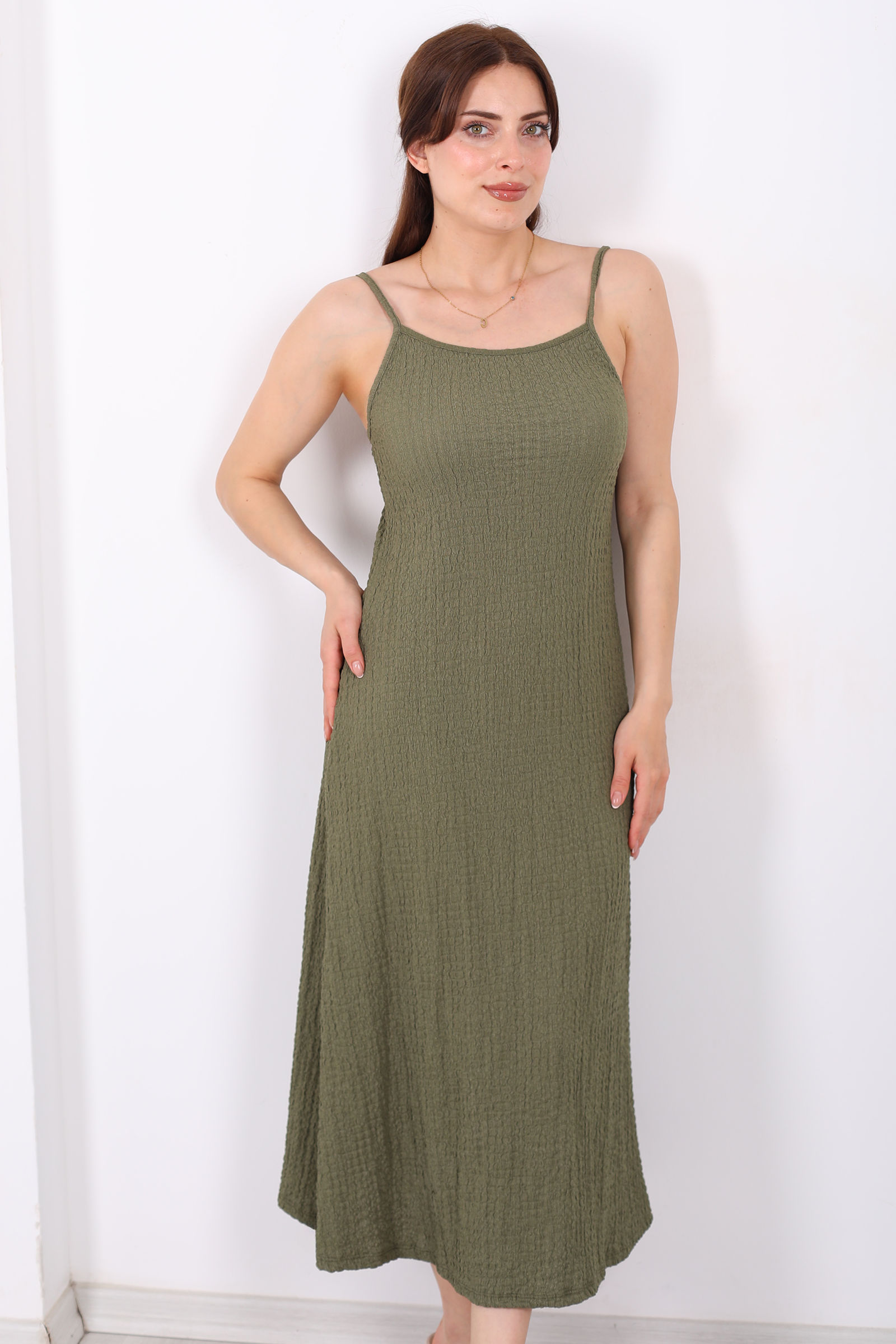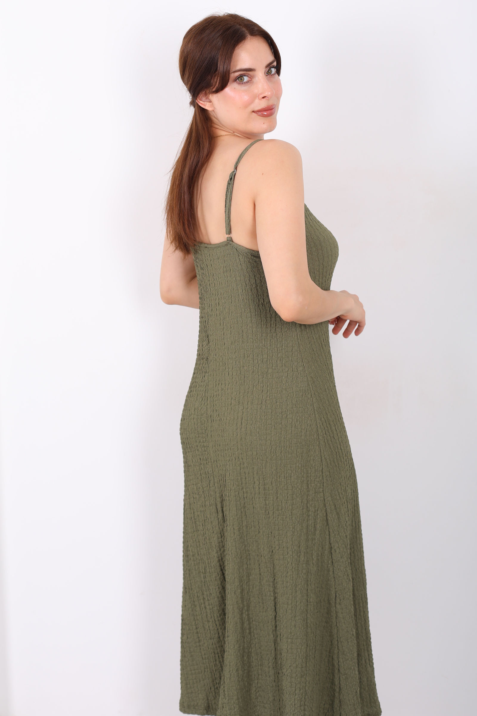 Kruvaze Yaka Kemerli Yeşil Kadın Midi Bürümcük Elbise