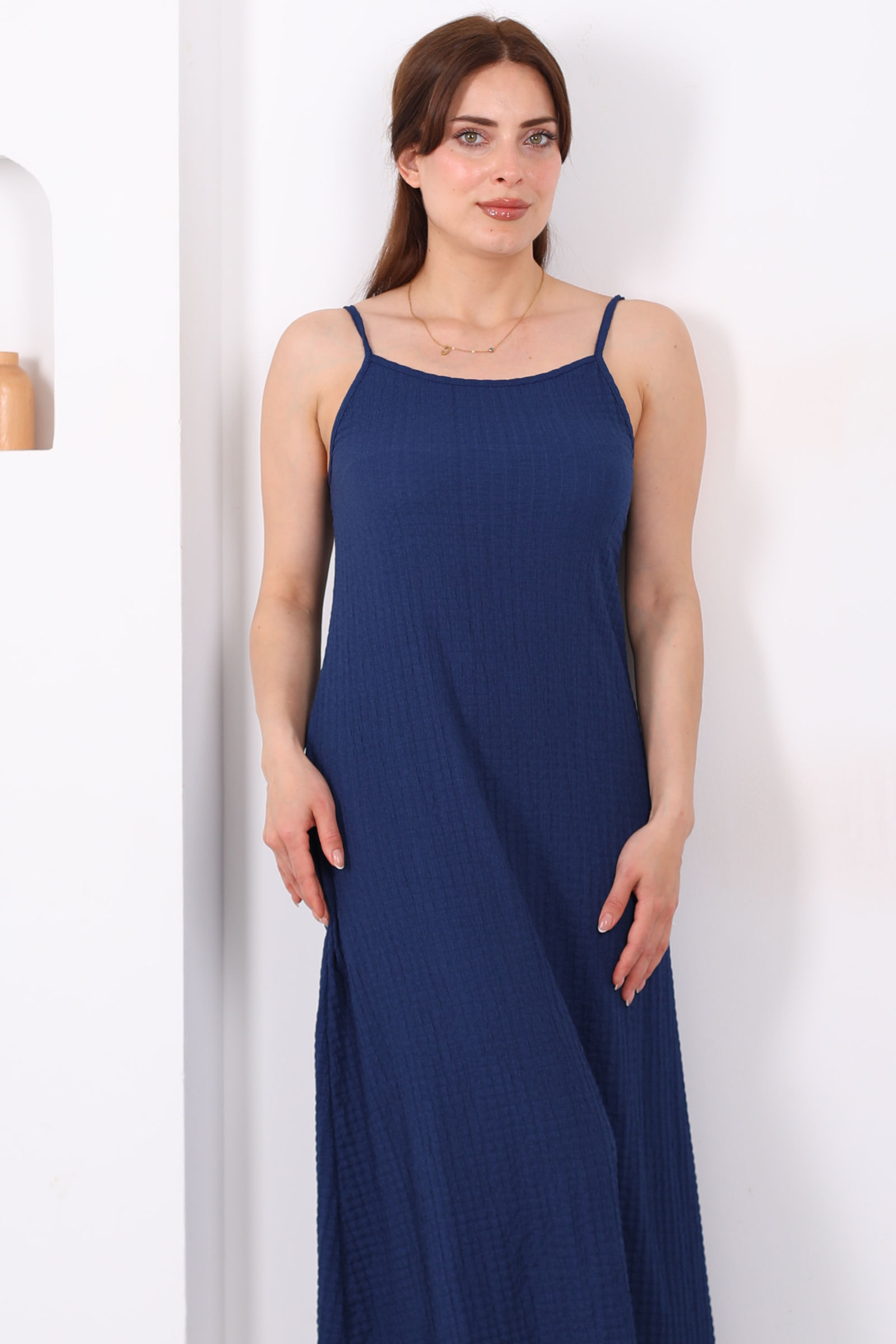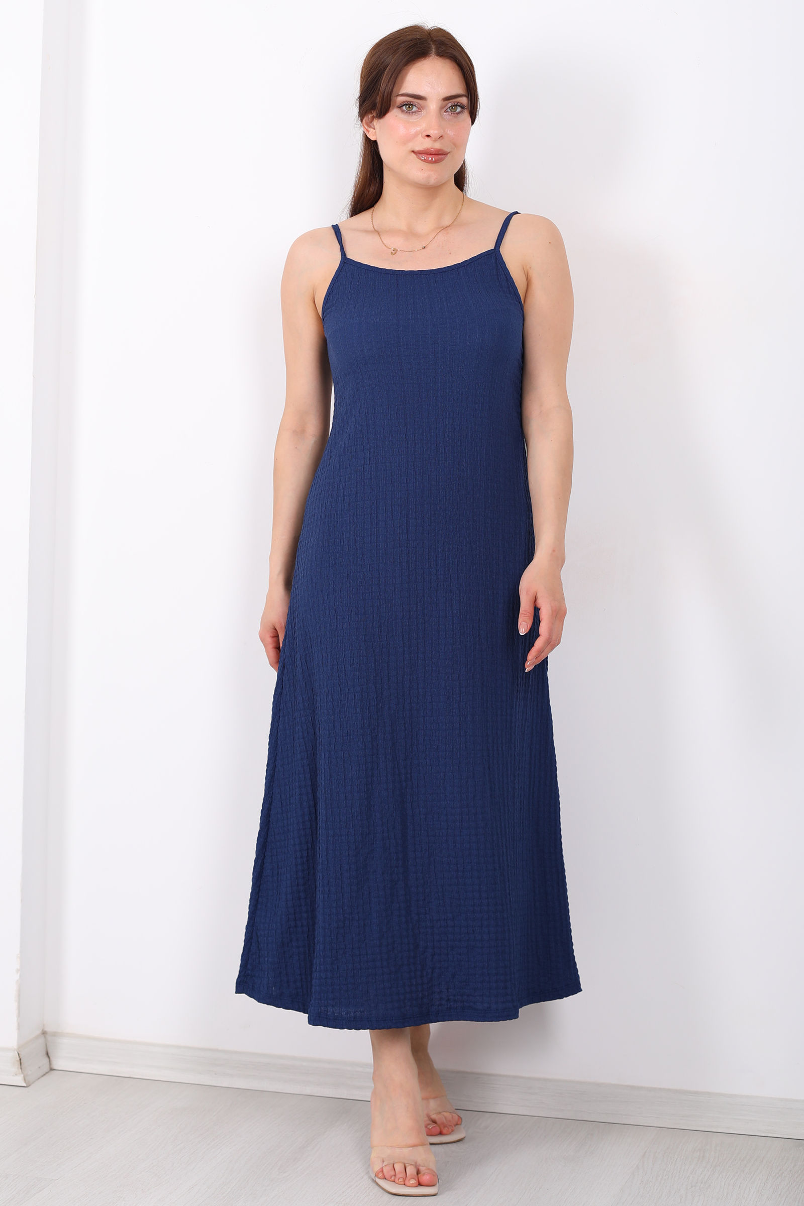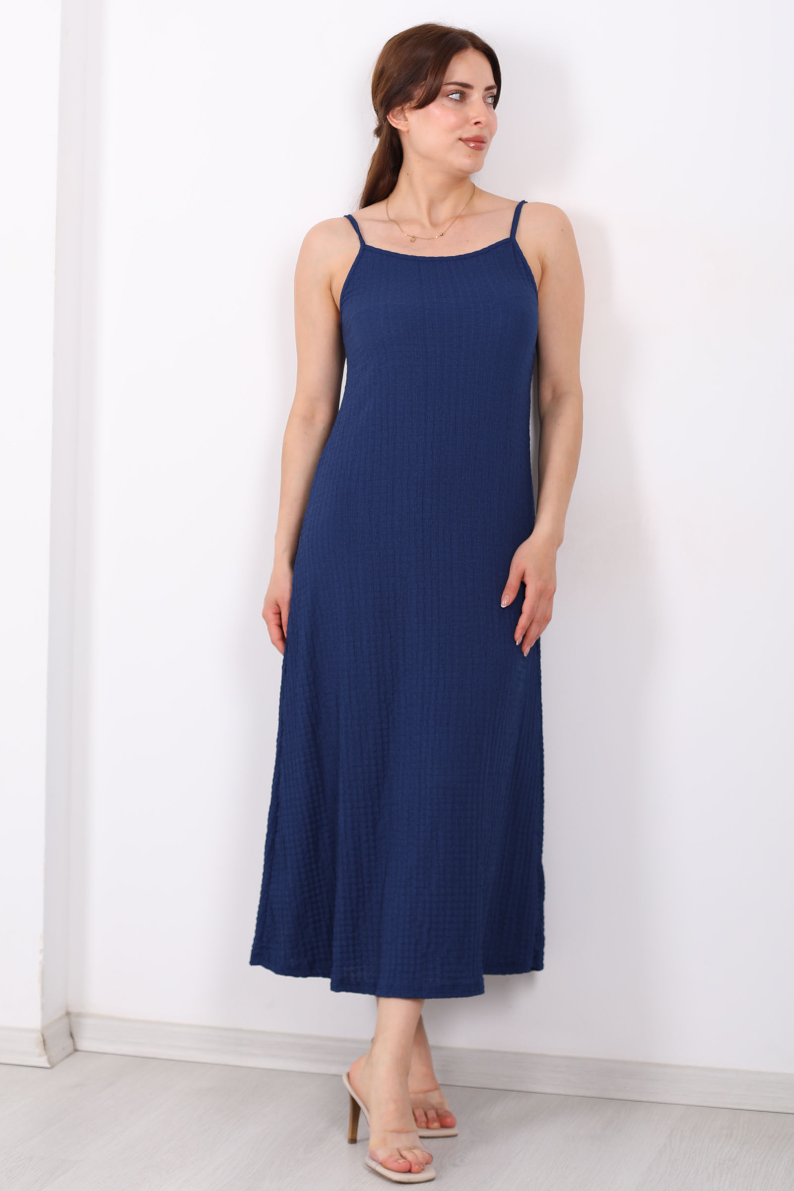 Askılı Bubble Kadın Lacivert Midi Elbise