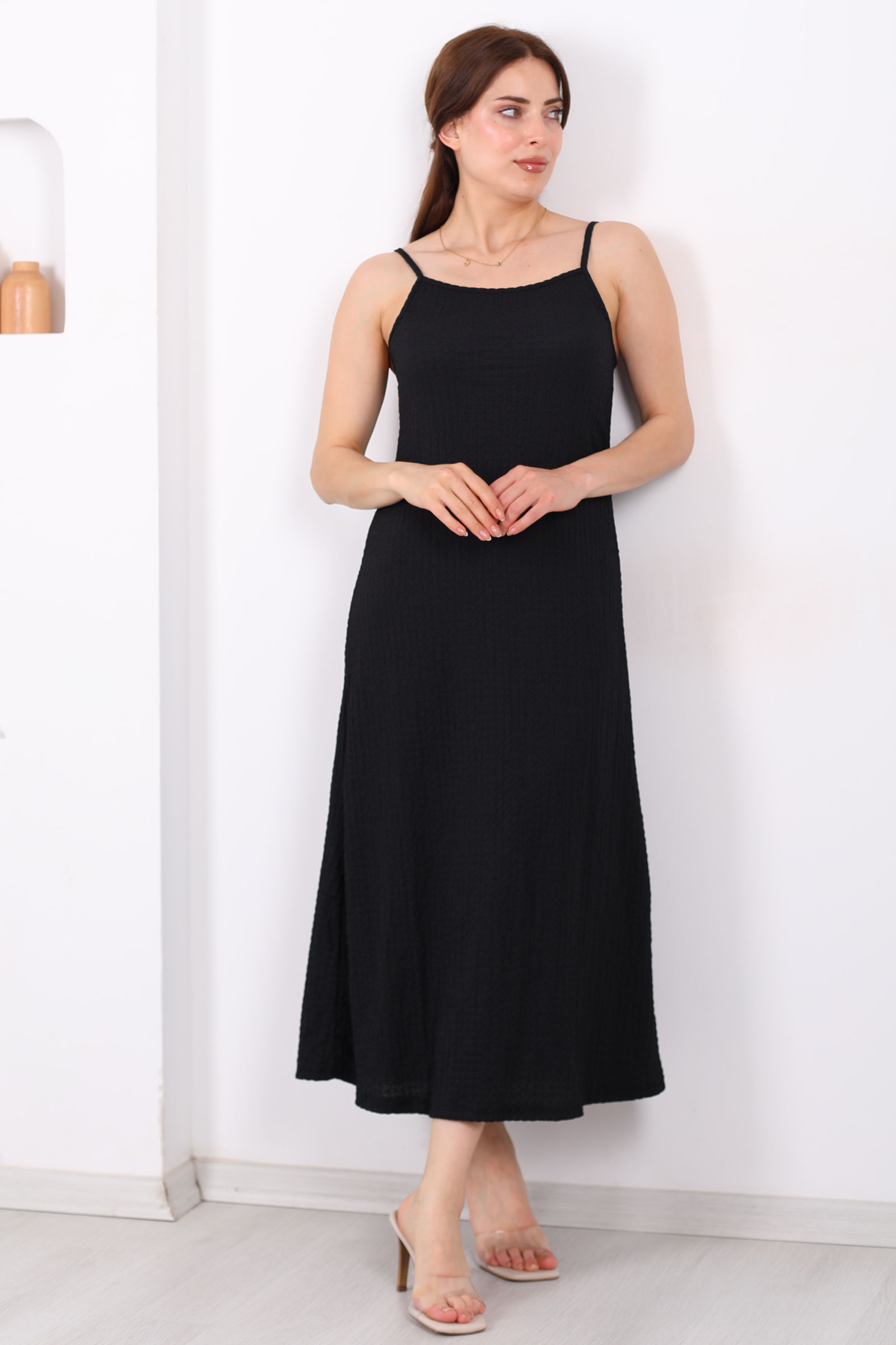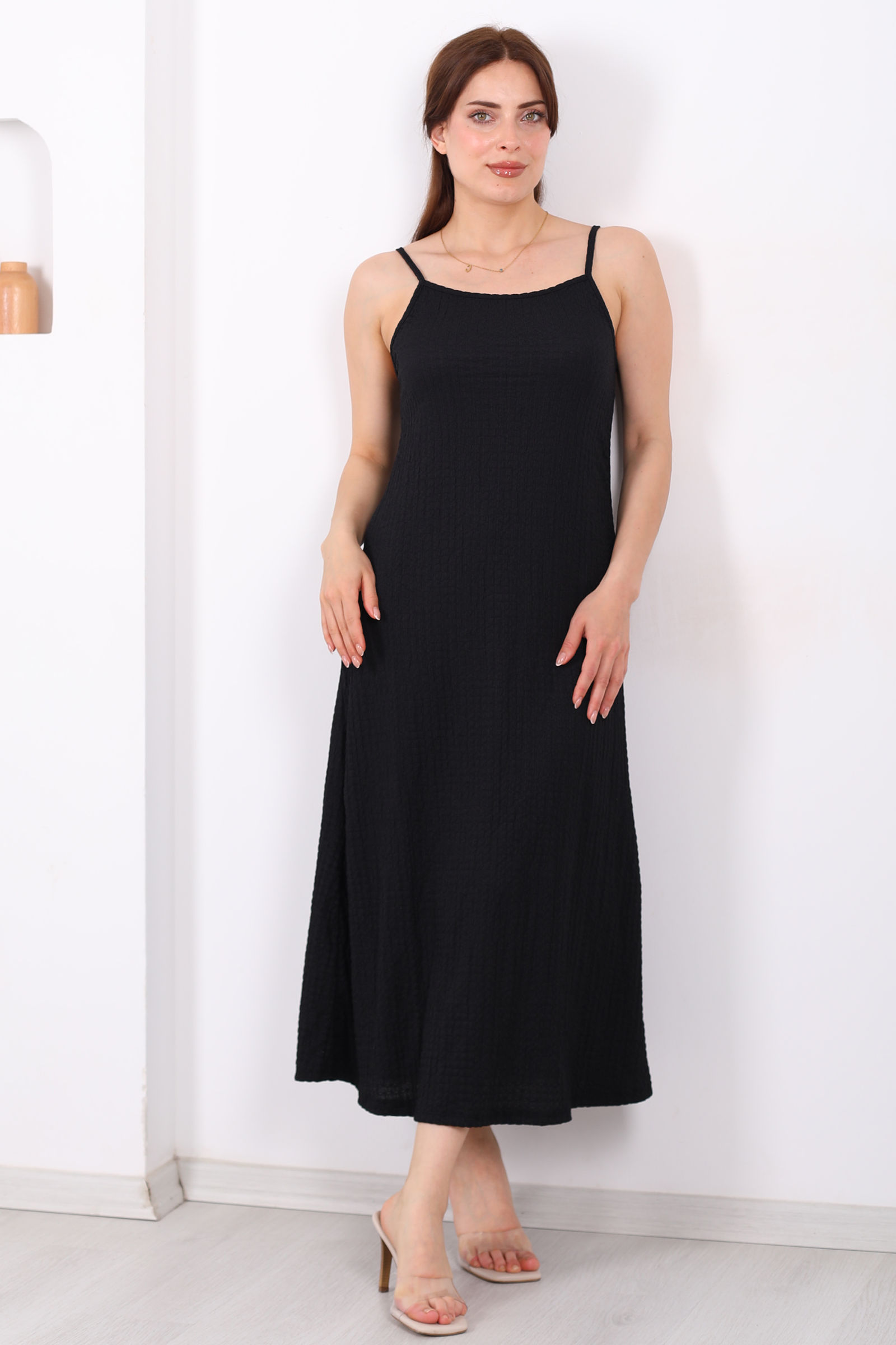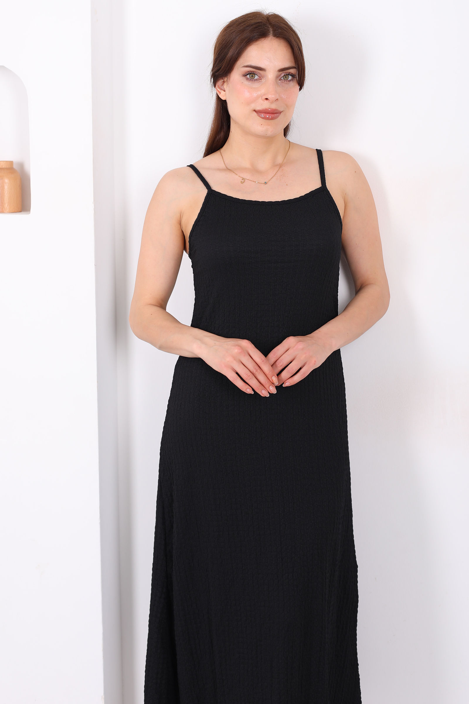 Askısı Taşlı Drape Detaylı Yırtmaçlı Siyah Kadın Uzun Balık Elbise