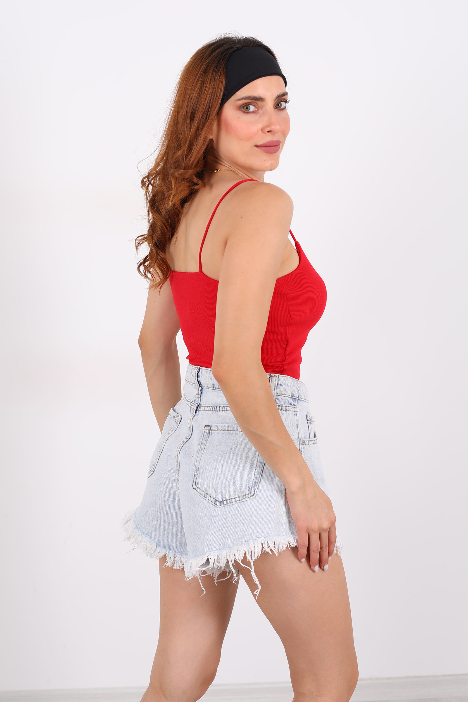 Kırmızı, tutkunun ve enerjinin rengidir. Bu askılı kaşkorse atlet, kırmızının cesur ve etkileyici tonunu, şıklık ve rahatlıkla birleştiriyor. Pamuklu ve elastan karışımı kumaşıyla gün boyu konfor sunarken, vücuda oturan kesimiyle modern bir görünüm sağlar. Hem tek başına hem de kat kat kombinlerde kullanabileceğiniz bu atlet, gardırobunuzun vazgeçilmez parçalarından biri olmaya aday.