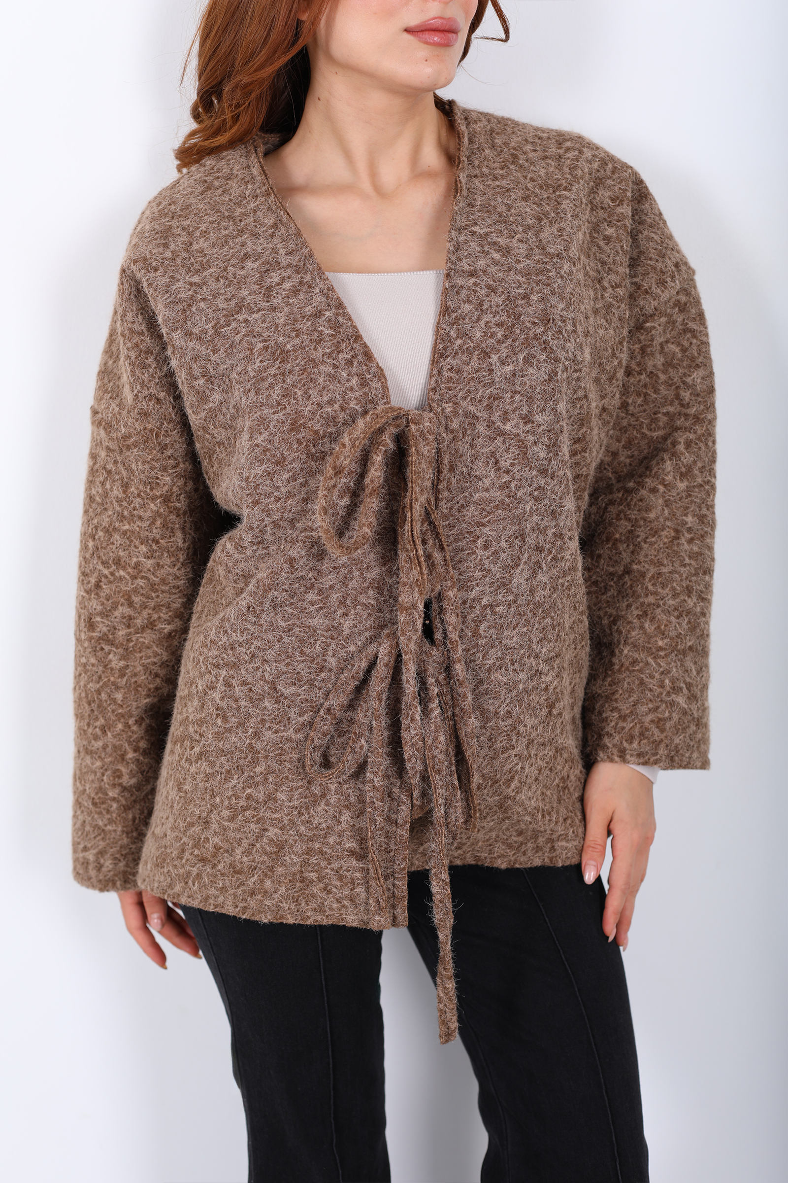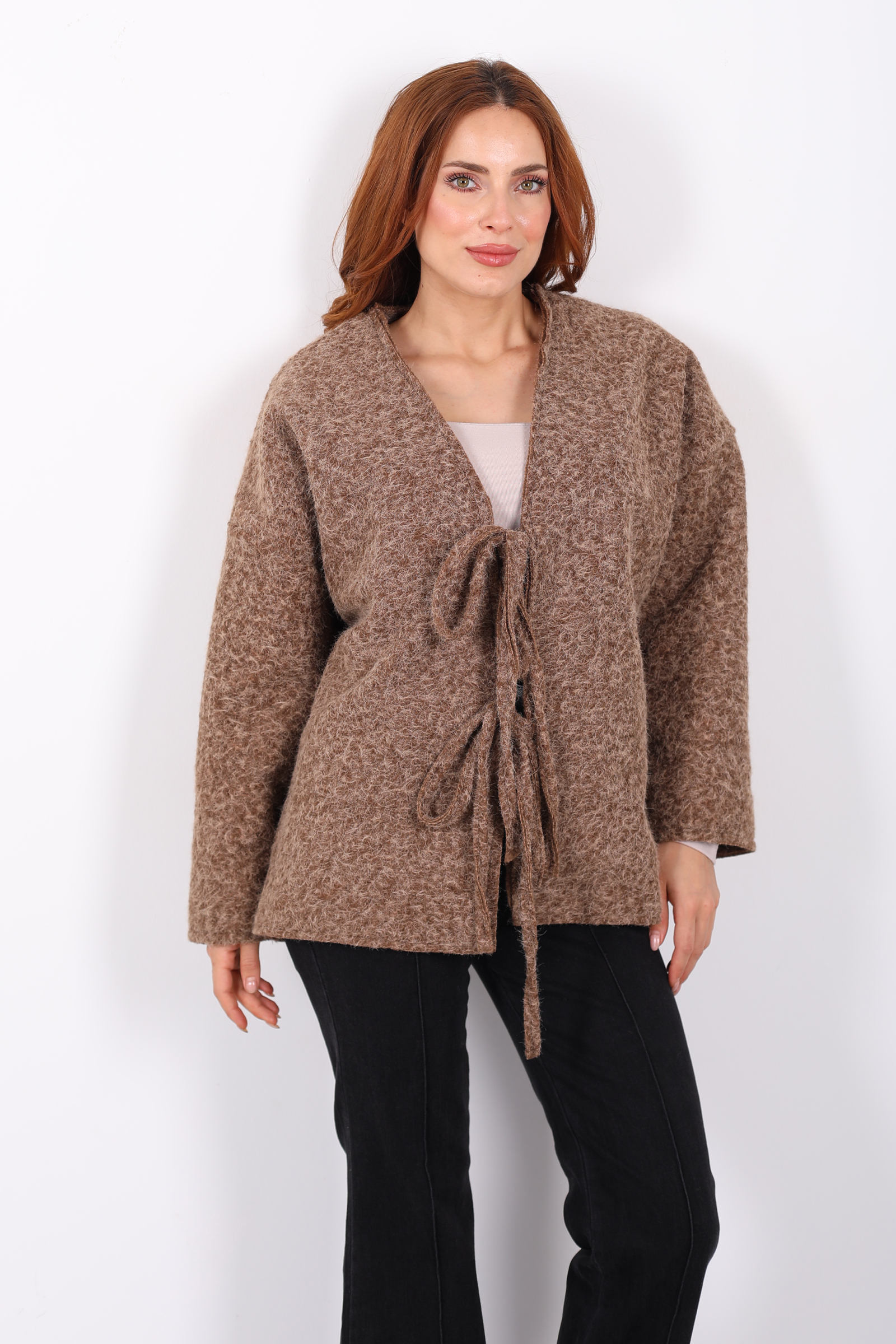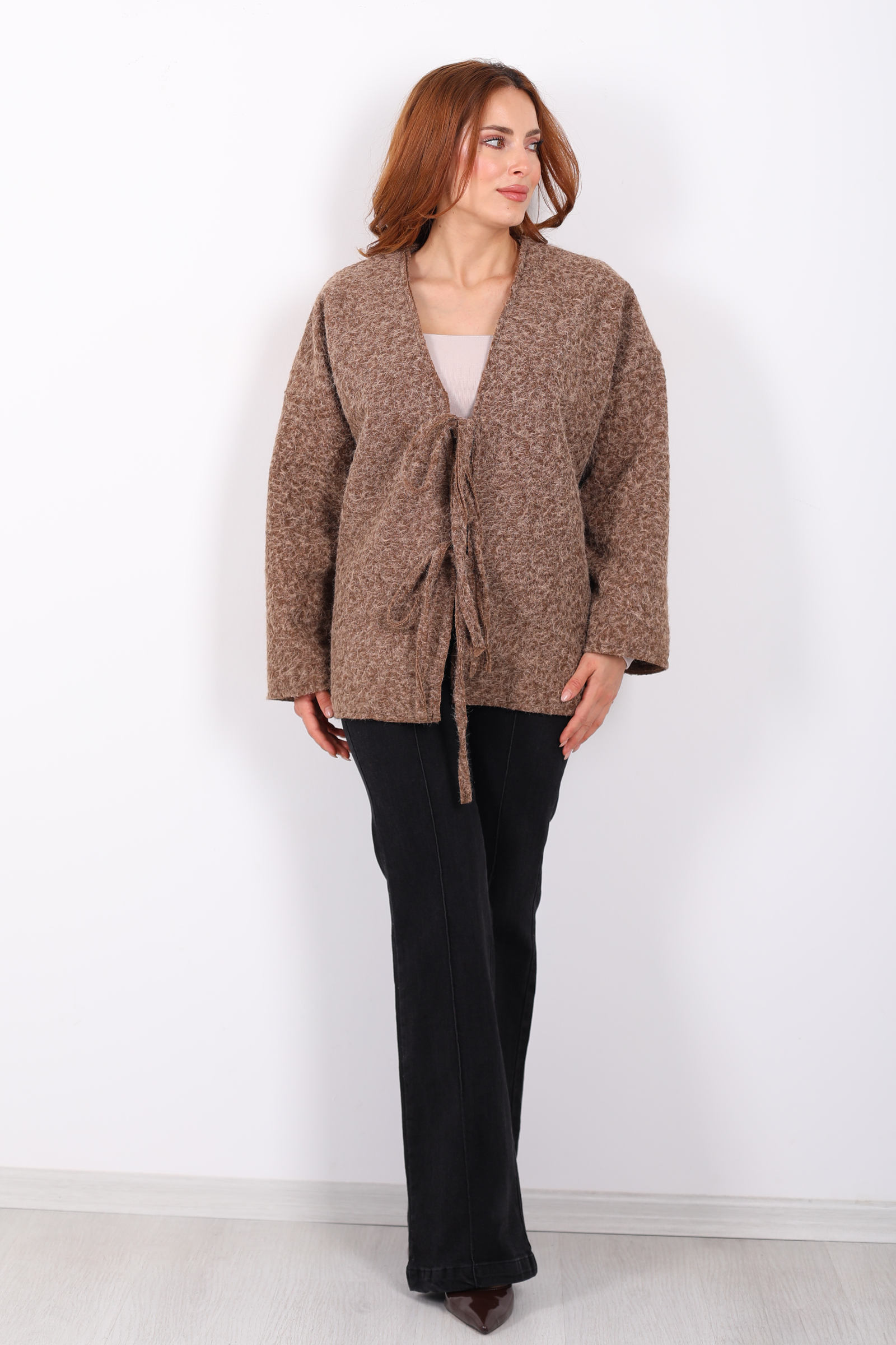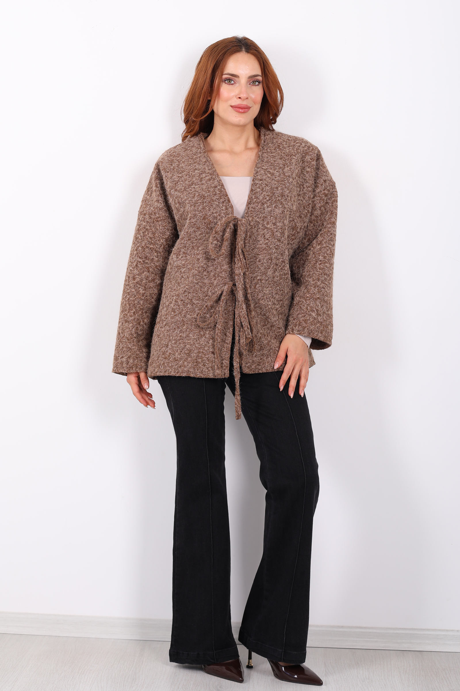 Bağlamalı Kahverengi Kadın Sakallı Oversize Ceket