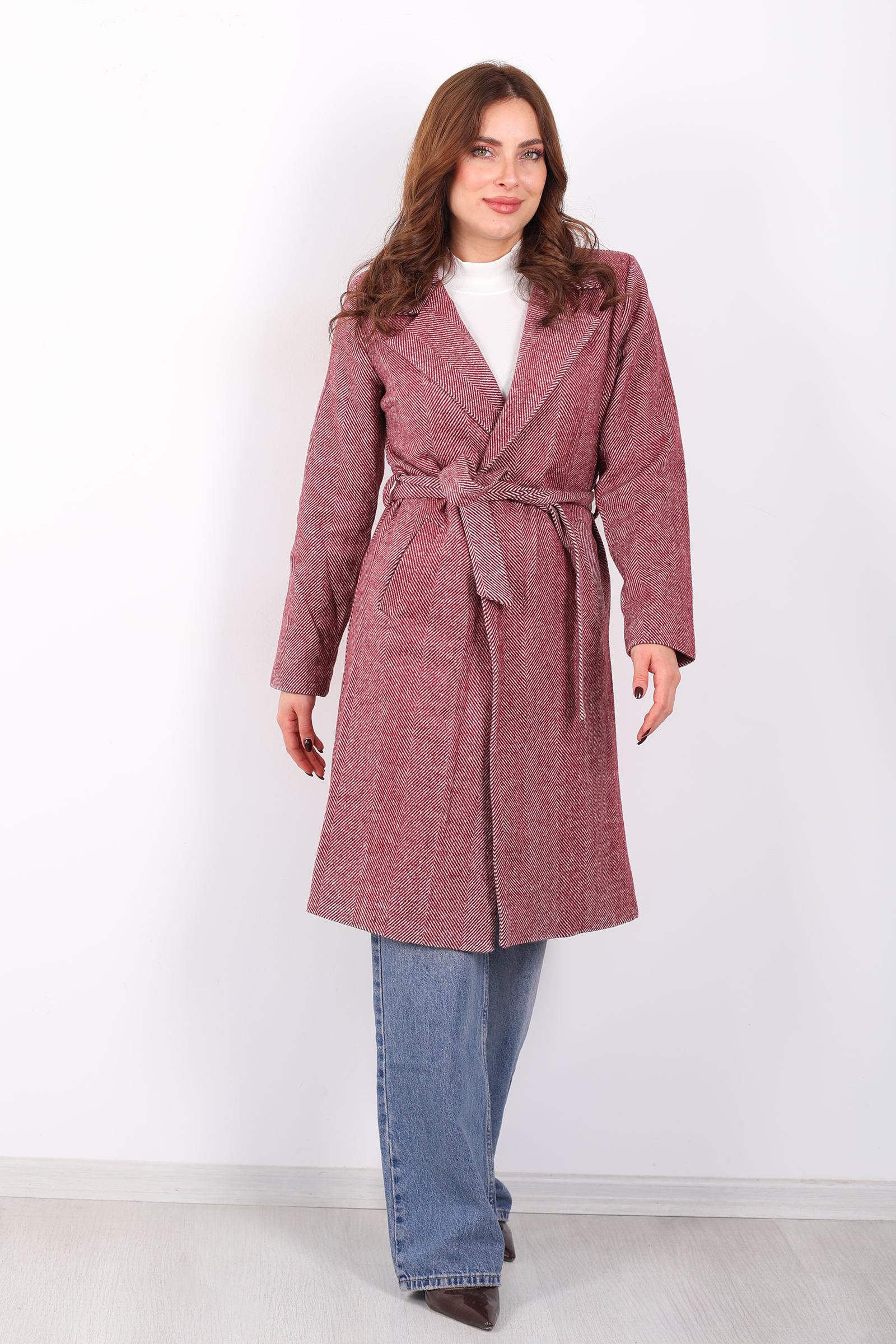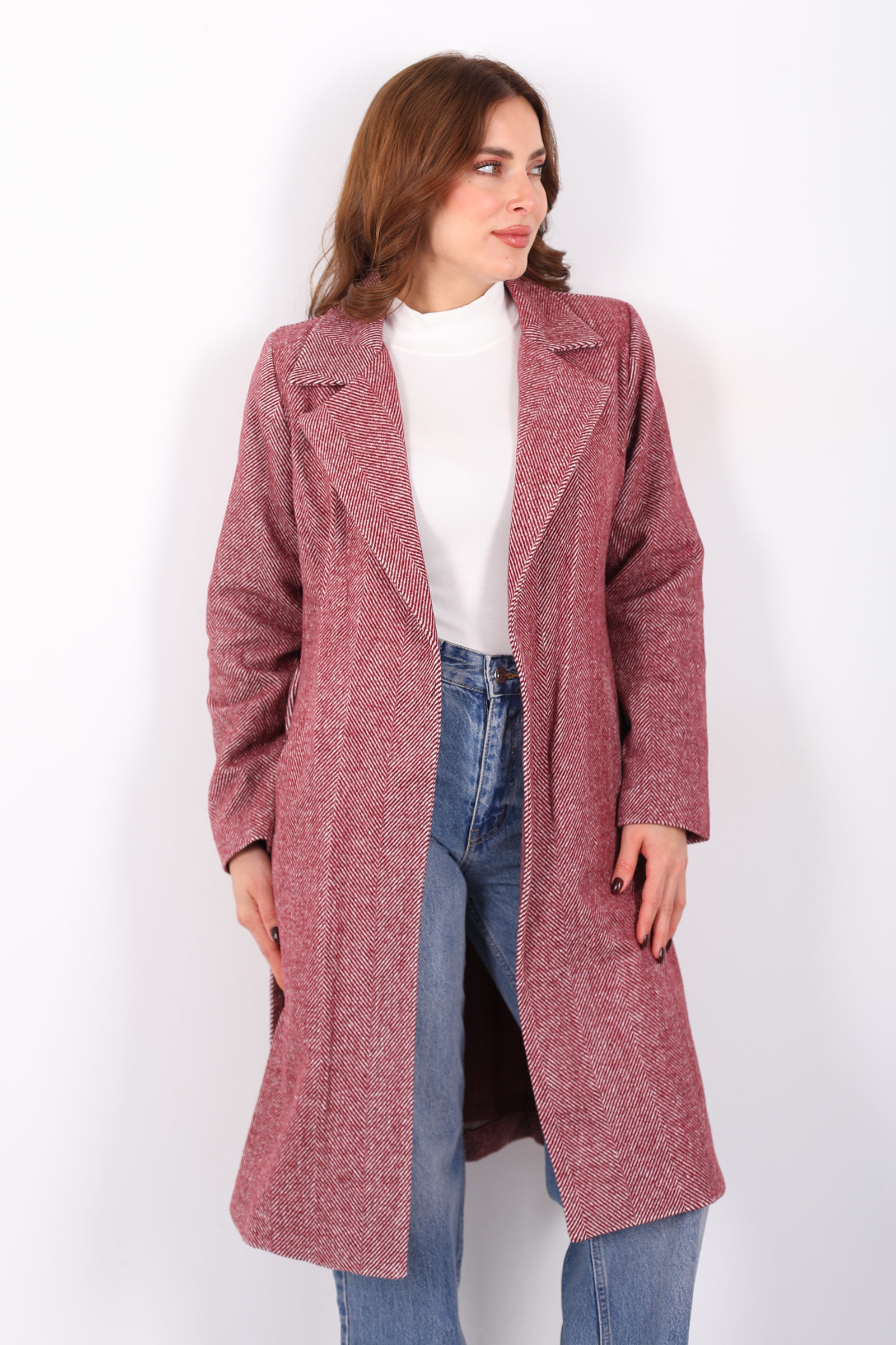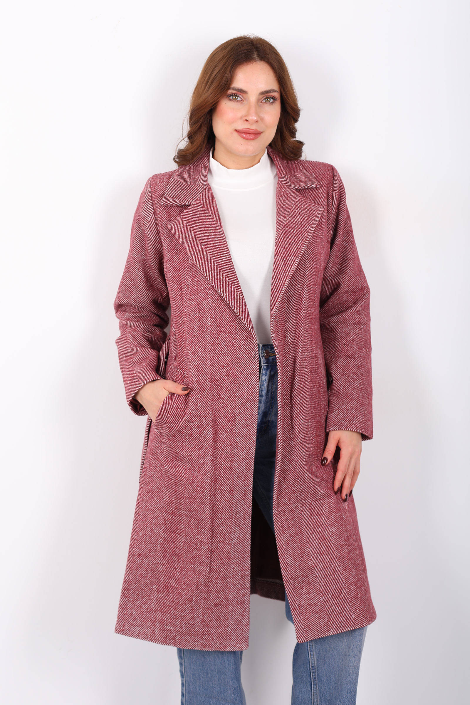 Balık Sırtı Bordo Kadın Kaşe Kaban