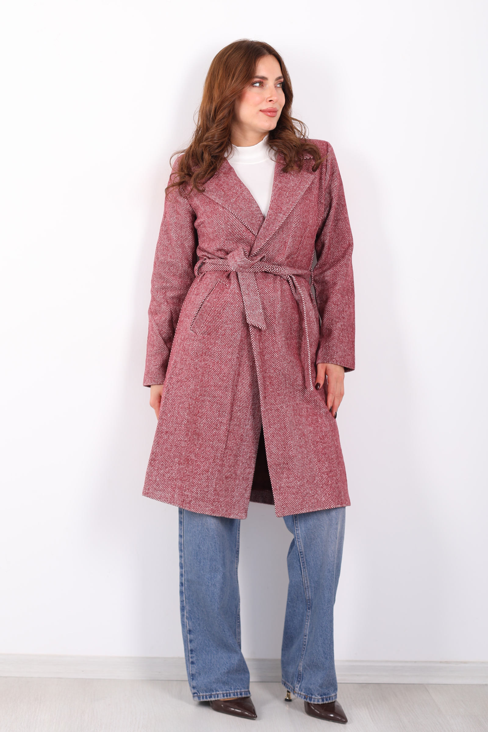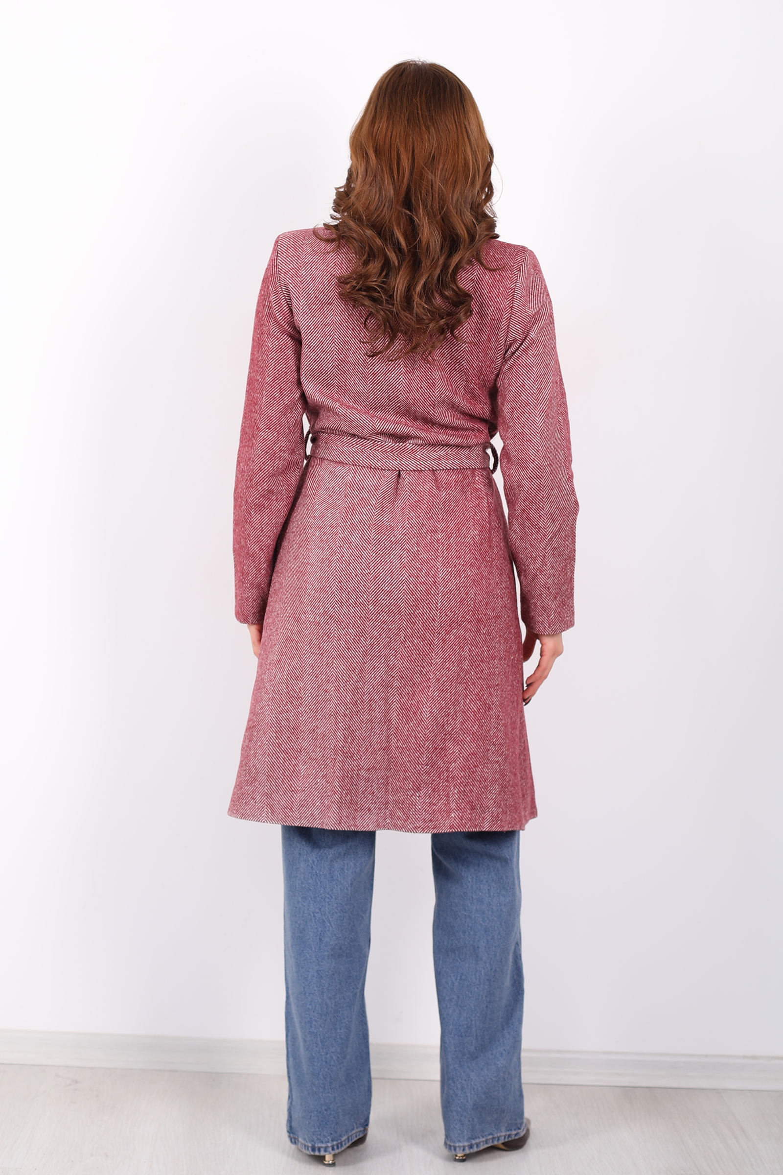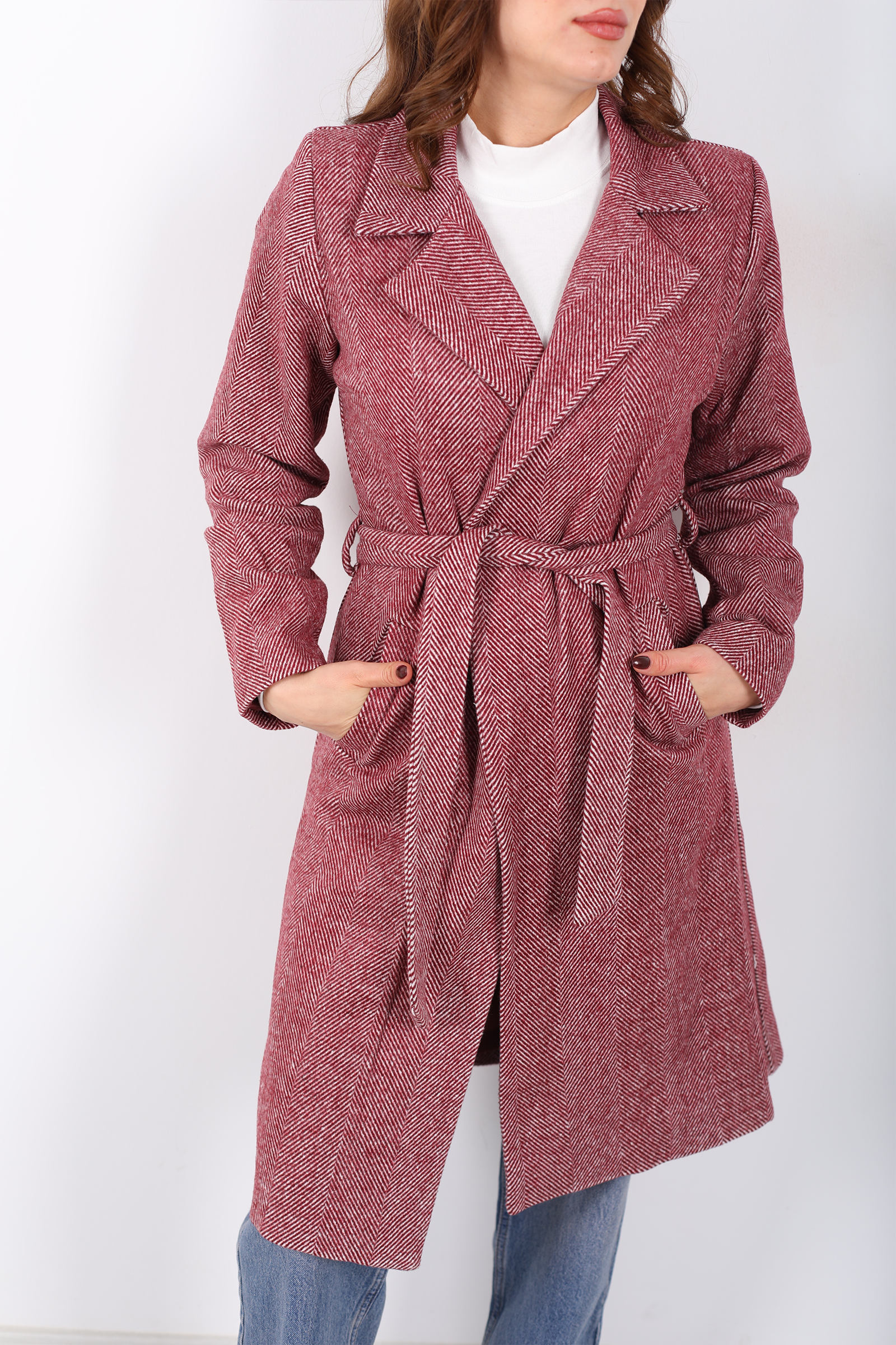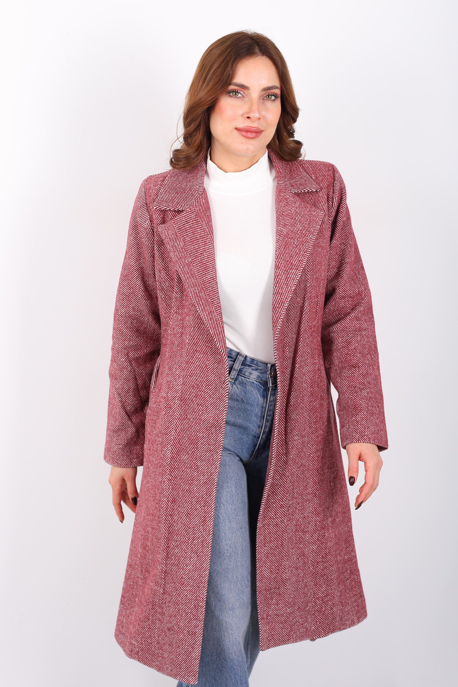 Balık Sırtı Bordo Kadın Kaşe Kaban