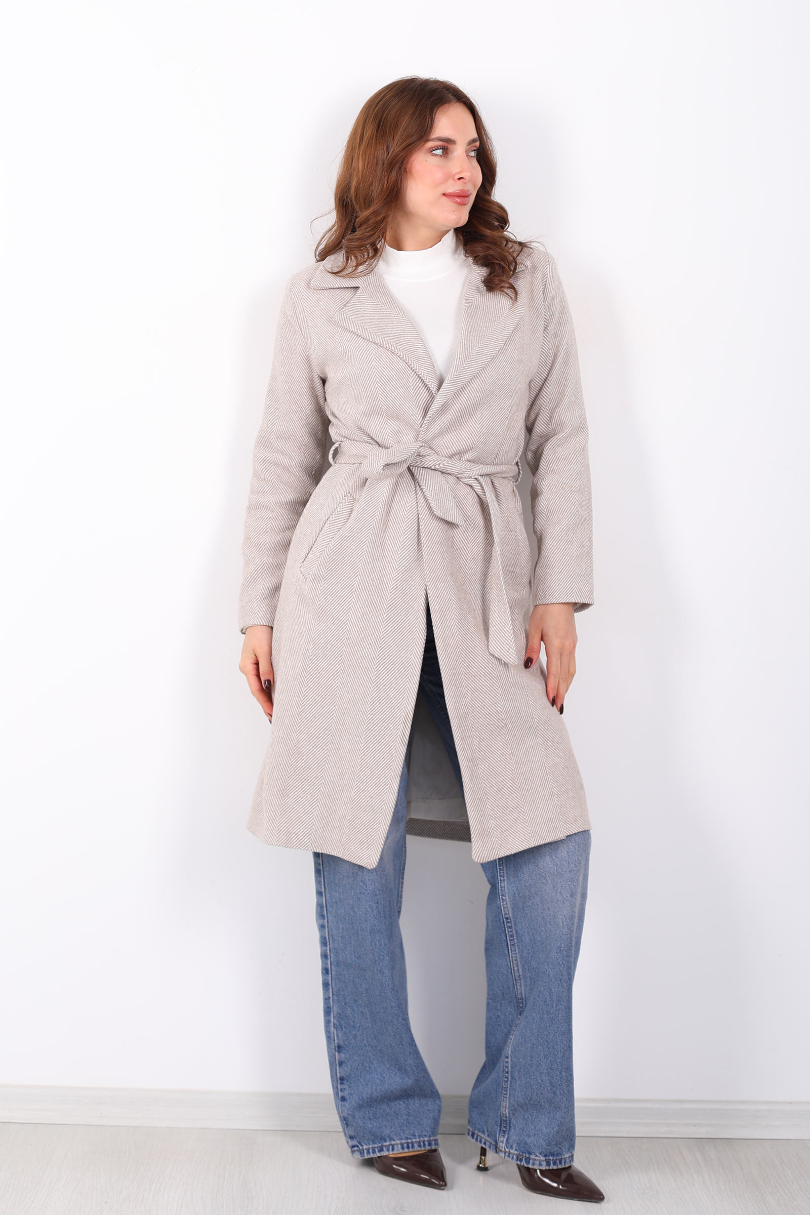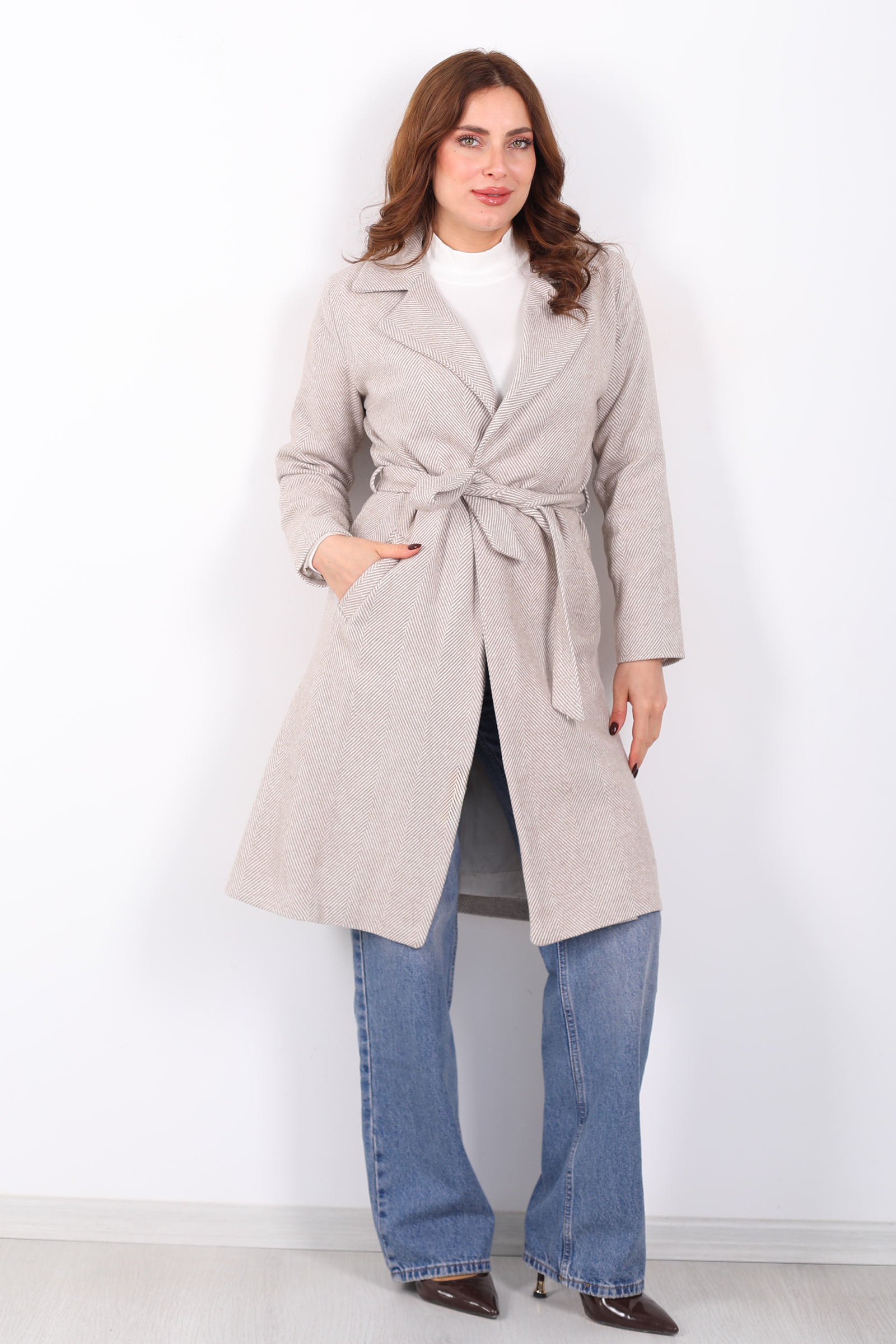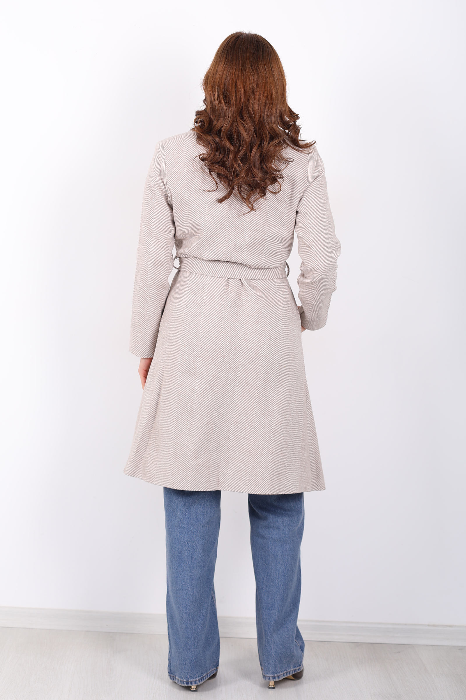 Balık Sırtı Vizon Kadın Kaşe Kaban