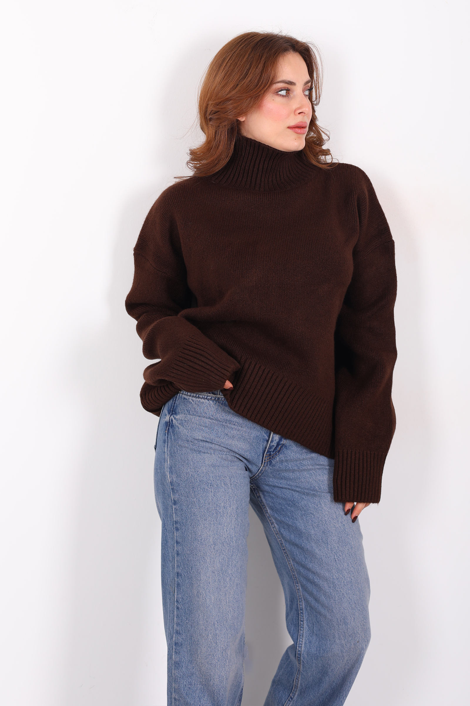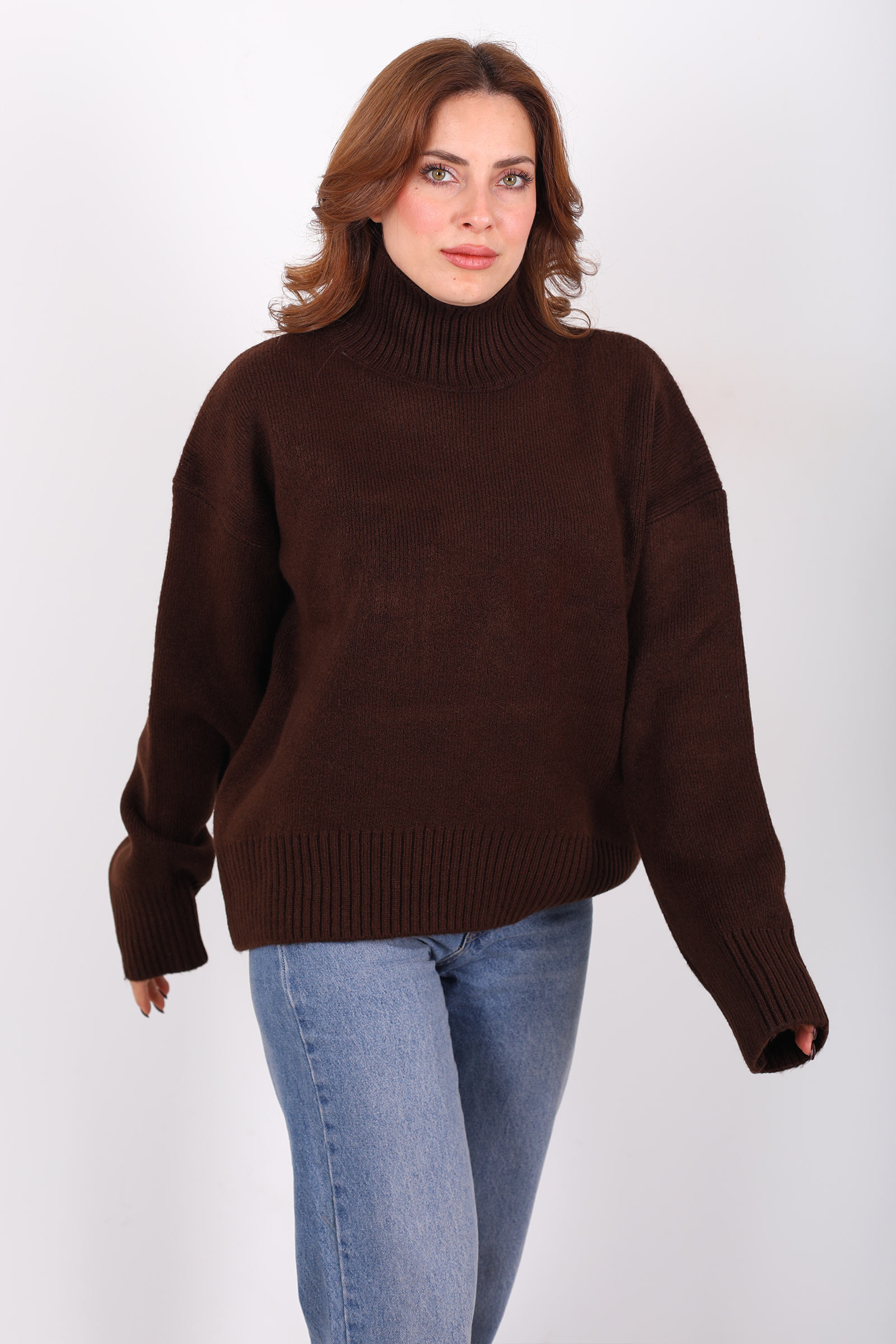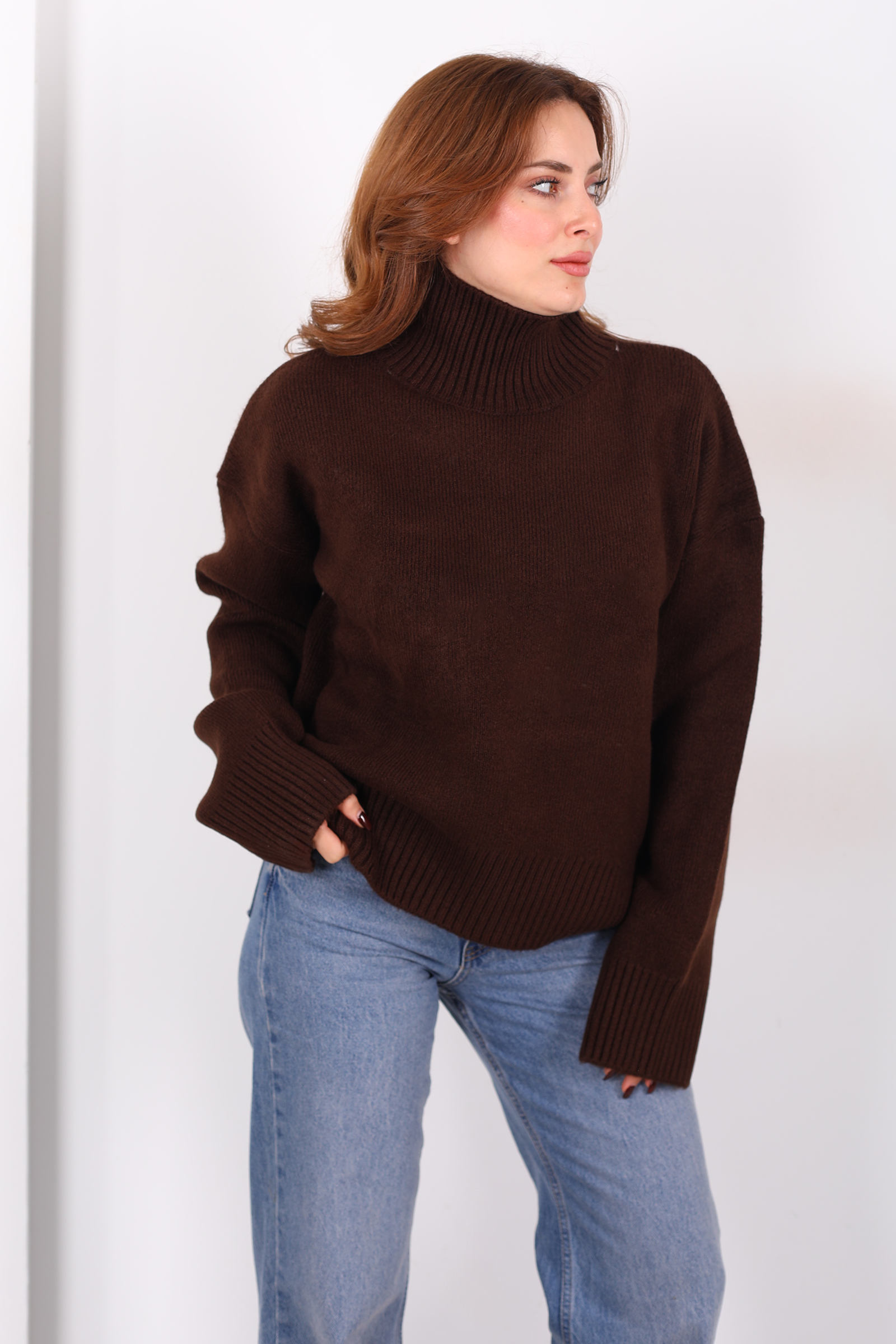 Kahverenginin toprak tonlarının sıcaklığını stilinizle buluşturan bu triko kazak; sıradanın dışına çıkan, karakterli ama sade bir dış görünüş isteyenler için tasarlandı. Balıkçı yaka, boyun hattını zarifçe çevrelerken aynı zamanda dış etkenlere karşı koruyan şık bir duruş sağlar bu kazak adeta sizi sarıp sarmalayan bir sonbahar hikâyesi gibi.