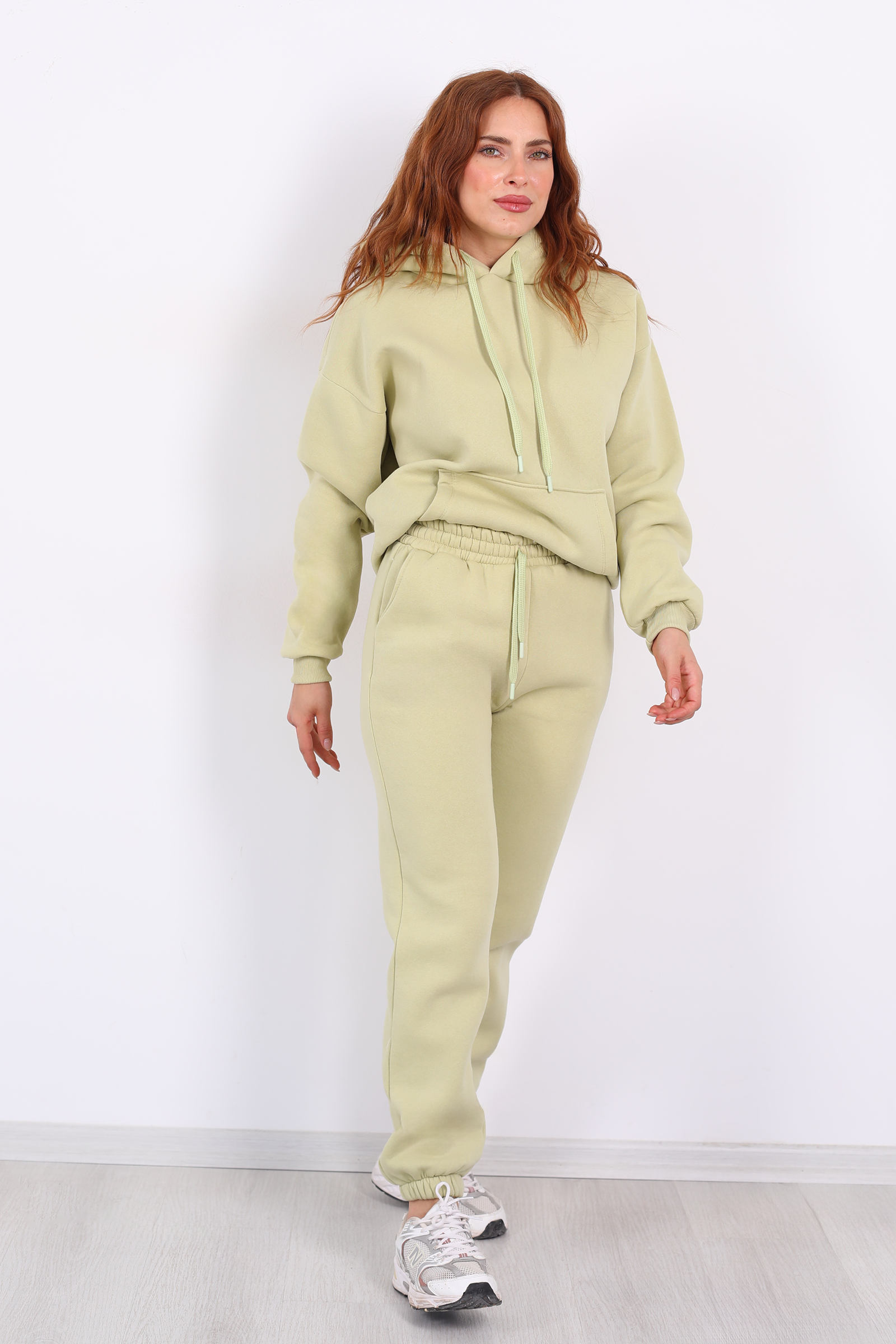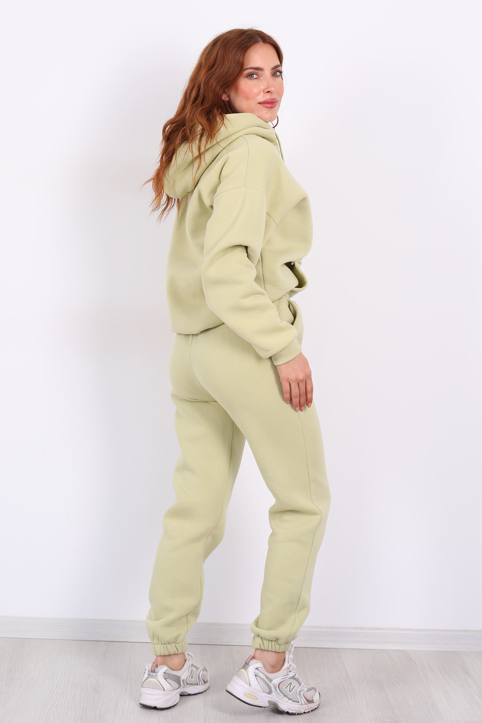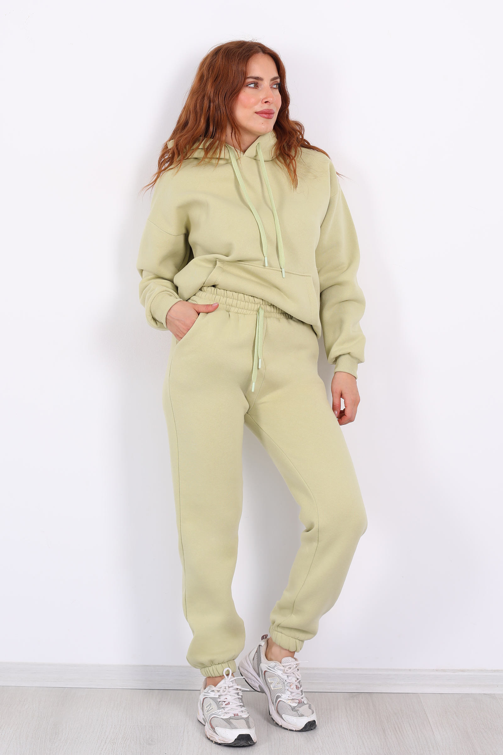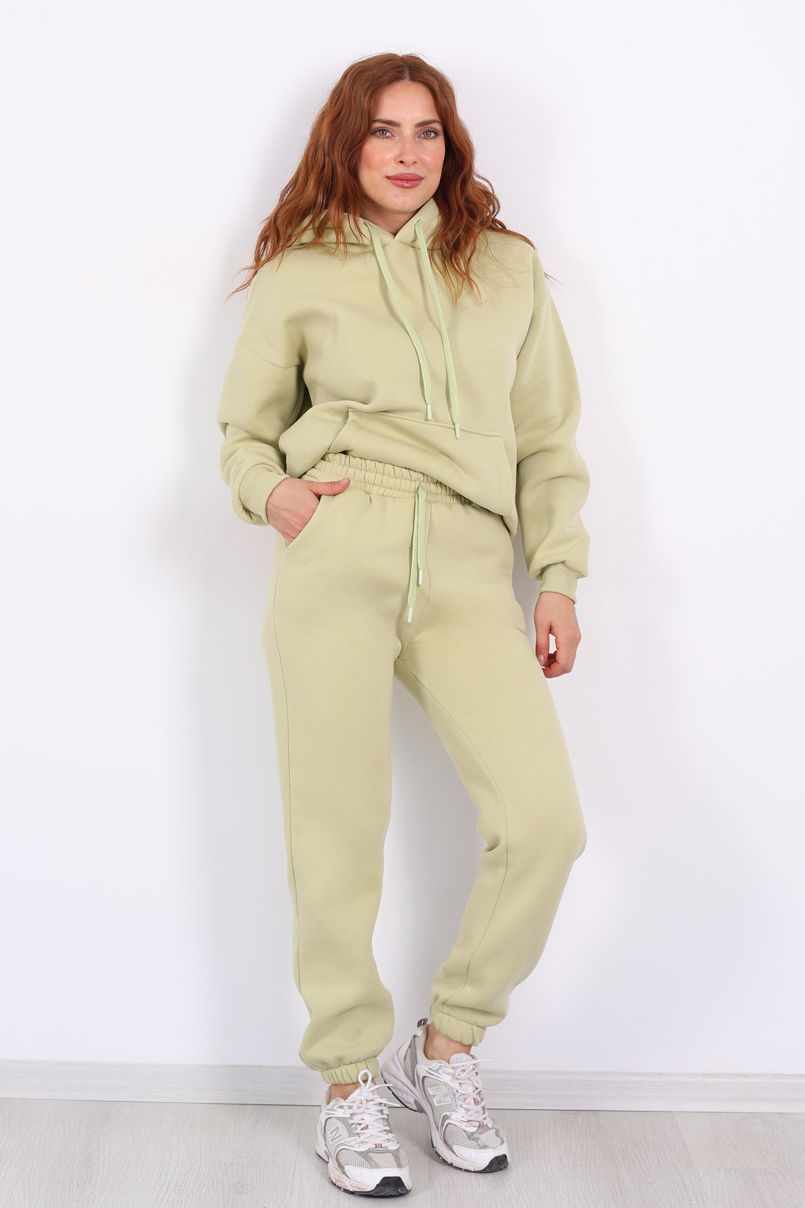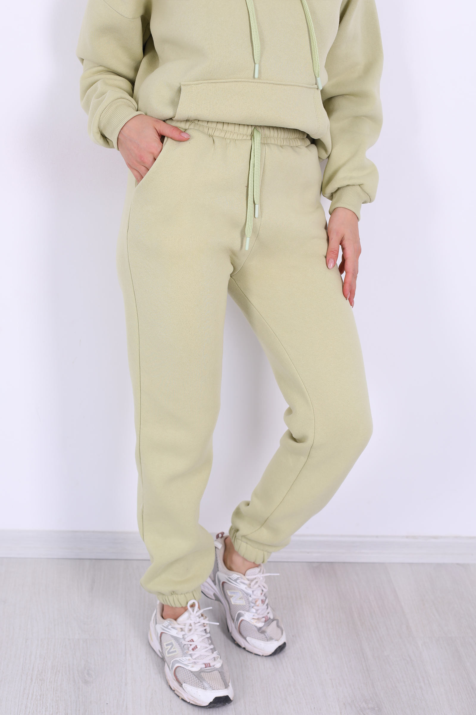 Ferahlık ve canlılığı bir arada sunan fıstık yeşili tonuyla öne çıkan bu eşofman altı, üç iplik kumaşı ve lastikli bel‑paça yapısıyla konforu şıklıkla birleştiriyor.Üç iplik örme kumaşı sayesinde hem sağlam hem tok bir yapı sunuyor; hareket ettiğinizde sizi kısıtlamadan uzun süre dayanıyor.Pastel tonları gardırobuna eklemek isteyen moda tutkunları için.