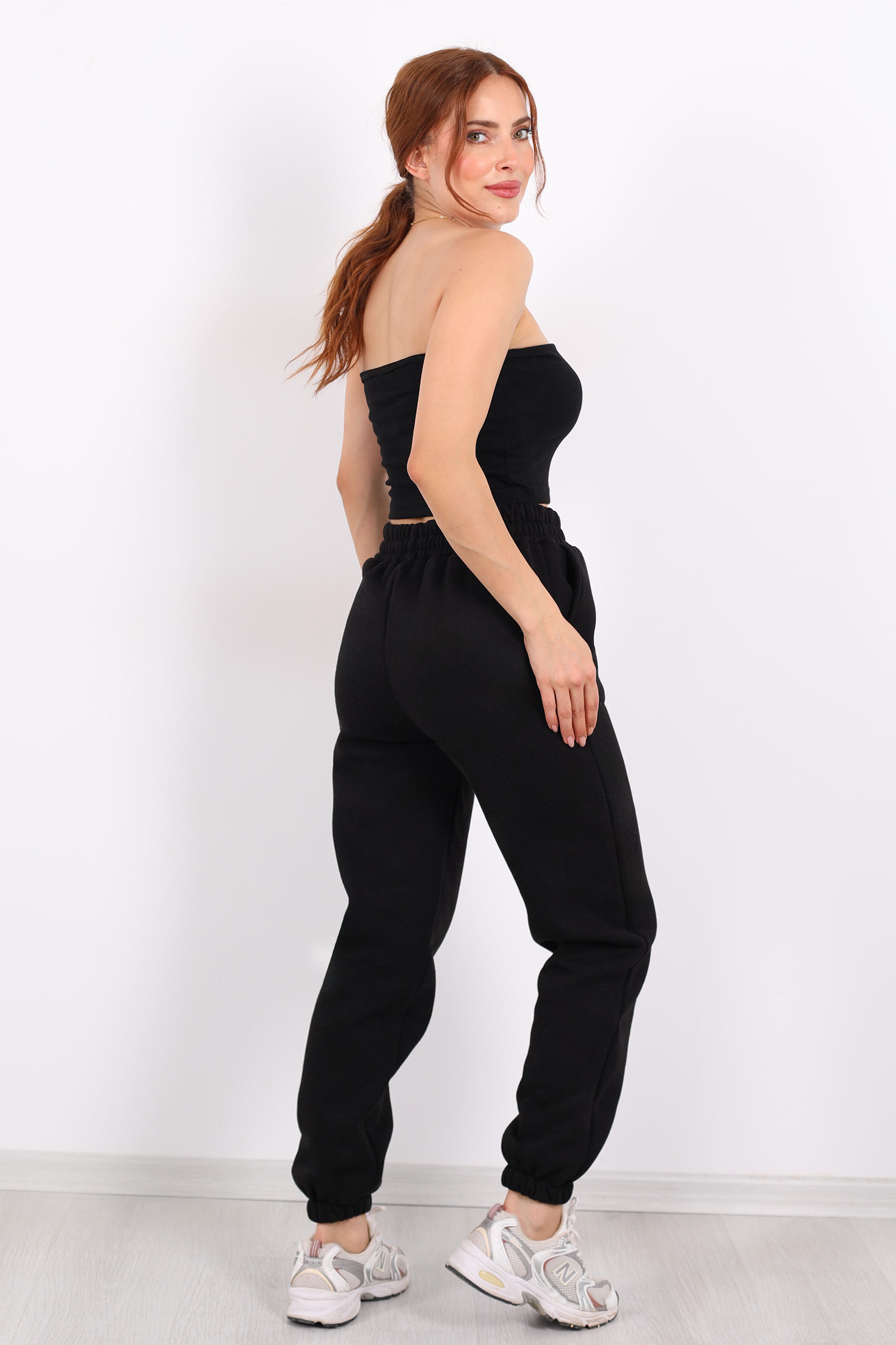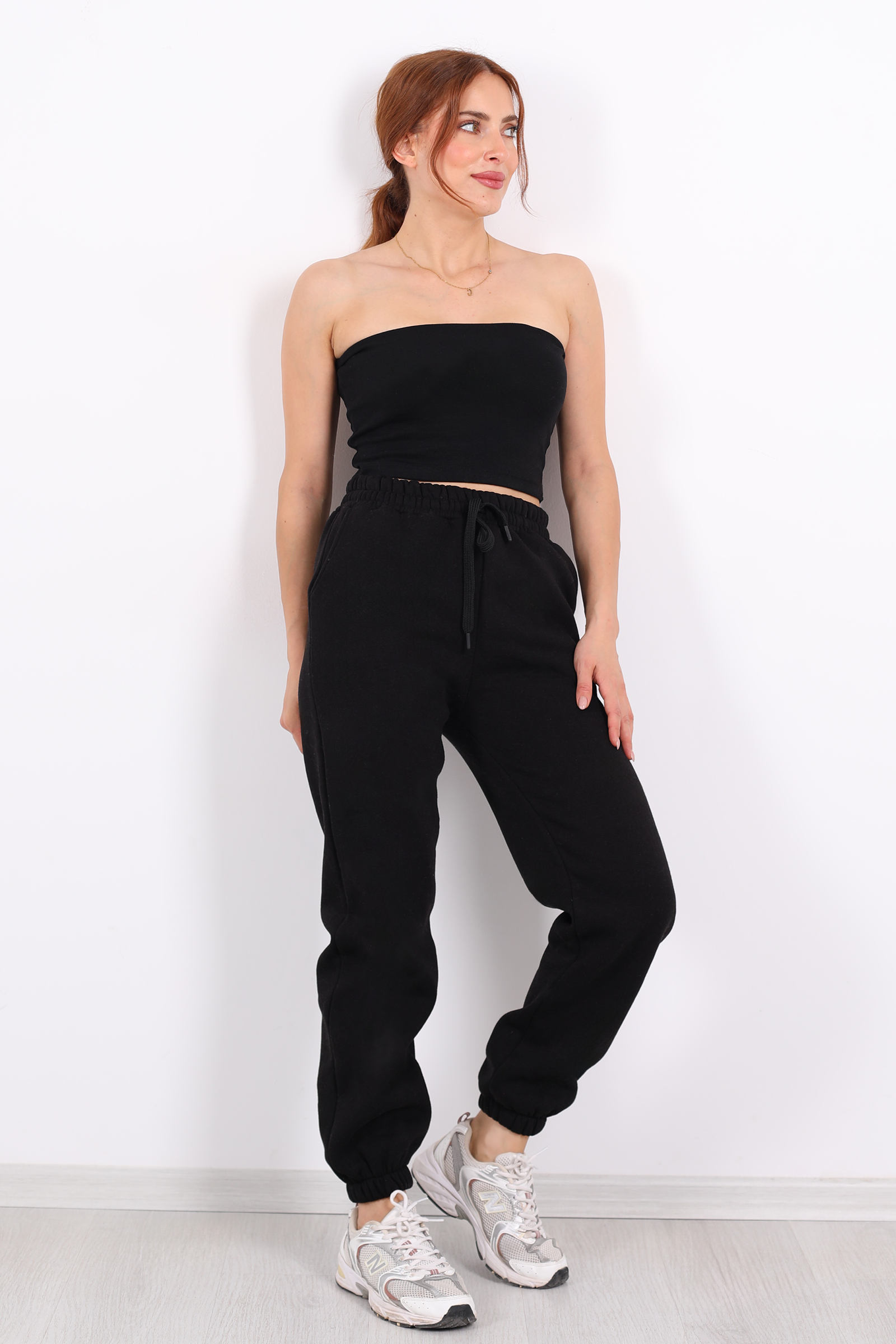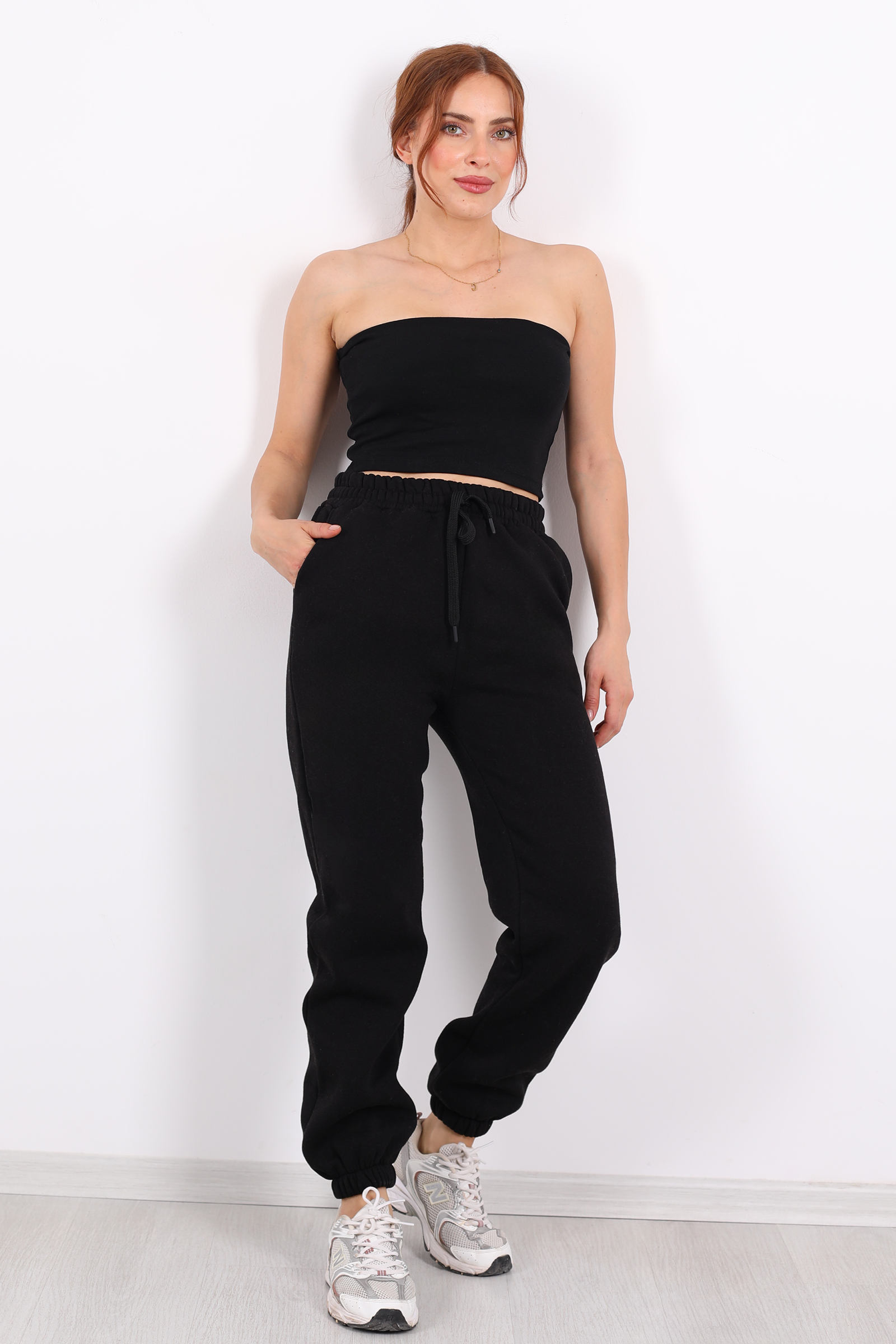 Sade siyah tonuyla konforu stil ile buluşturan bu eşofman altı, üç iplik kumaş yapısı ve lastikli bel‑paça tasarımıyla hem şık hem dayanıklı bir günlük parça sunuyor.Spor ve rahat giyimi birleştiren bir alt parça arayan kadınlar için.Hafif bir spor üst ve spor ayakkabılarla aktif günlerde rahatlık ve tarzı birlikte yaşayabilirsiniz.