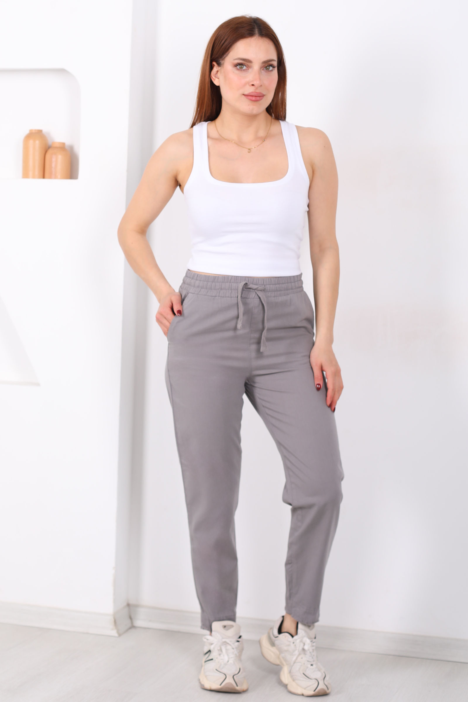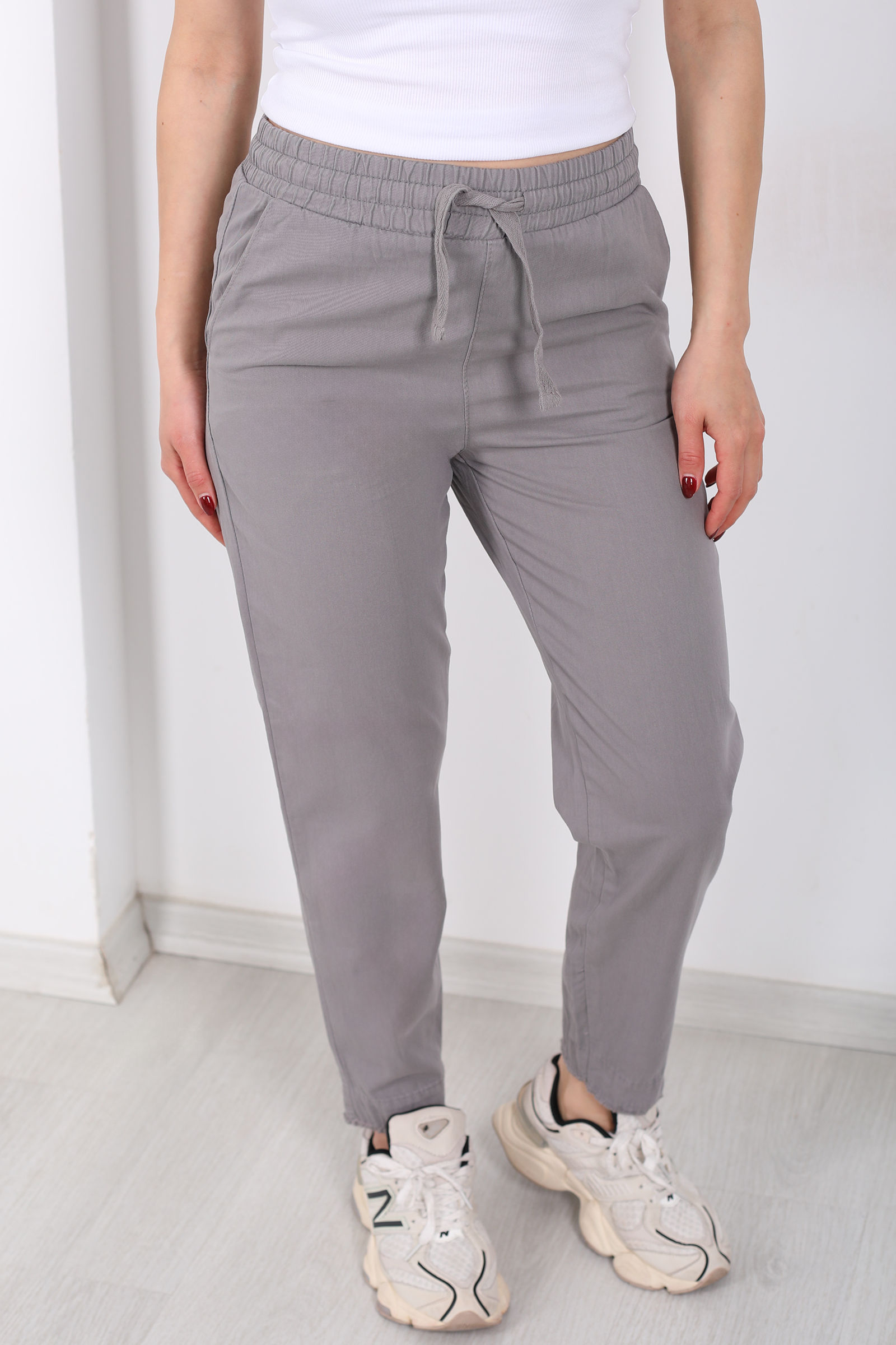 Antrasit tonunun duru ve sofistike havasını stilinize taşıyan bu havuç kesim pantolon, rahat kesimi ile günlük kullanımda konforu zirveye çıkarır. Keten kumaşın doğal ve hafif dokusu, sıcak havalarda bile serin kalmanızı sağlar. Paça uçlarındaki püsküller, her adımda zarif bir hareket yakalamanıza yardımcı olur ve pantolona daha dinamik bir hava katar.