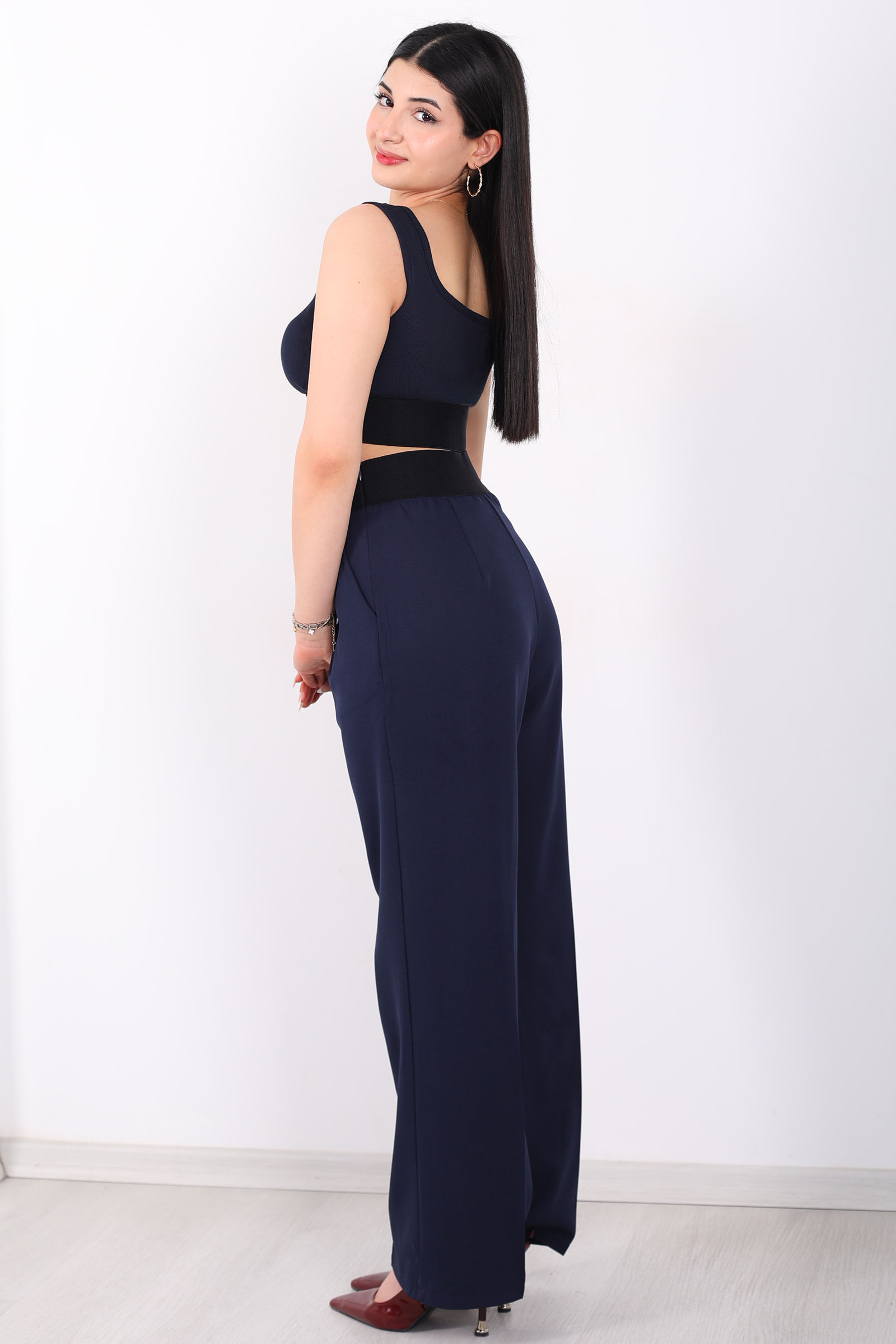 Beli Lastikli Yüksek Bel Lacivert Kadın Modal Pantolon