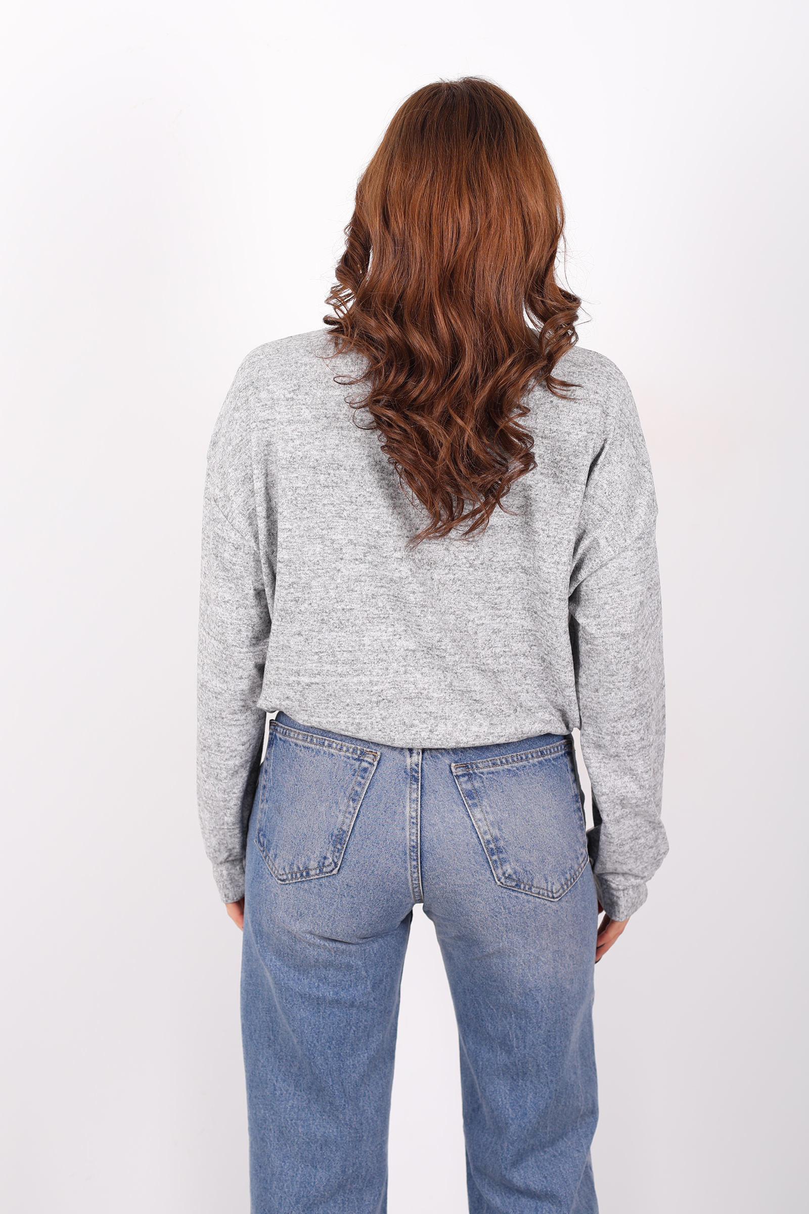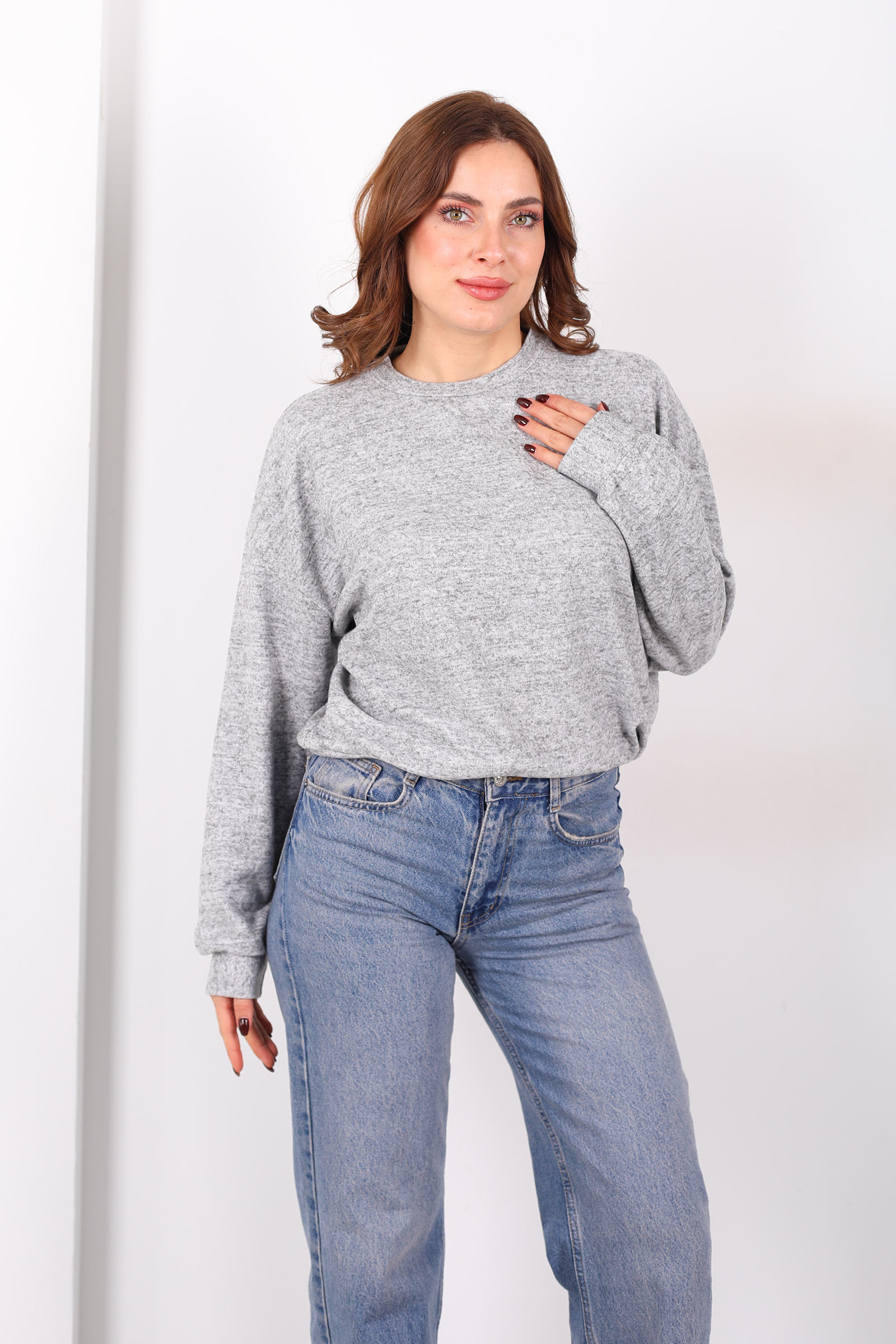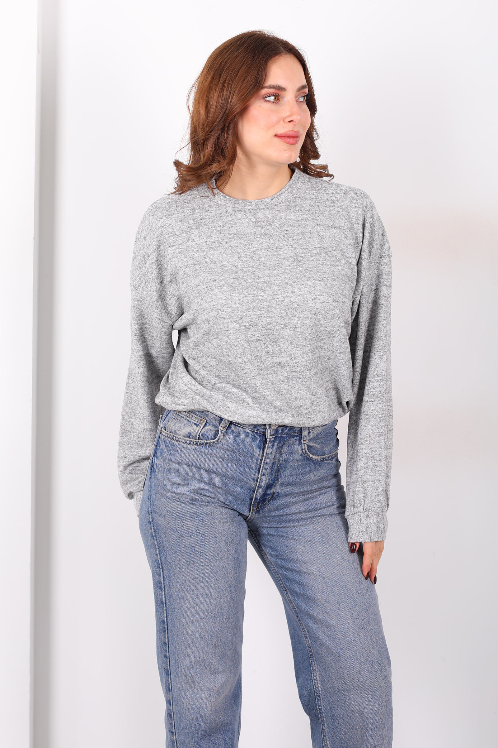Beli Lastikli Bisiklet Yaka Gri Kadın Bluz