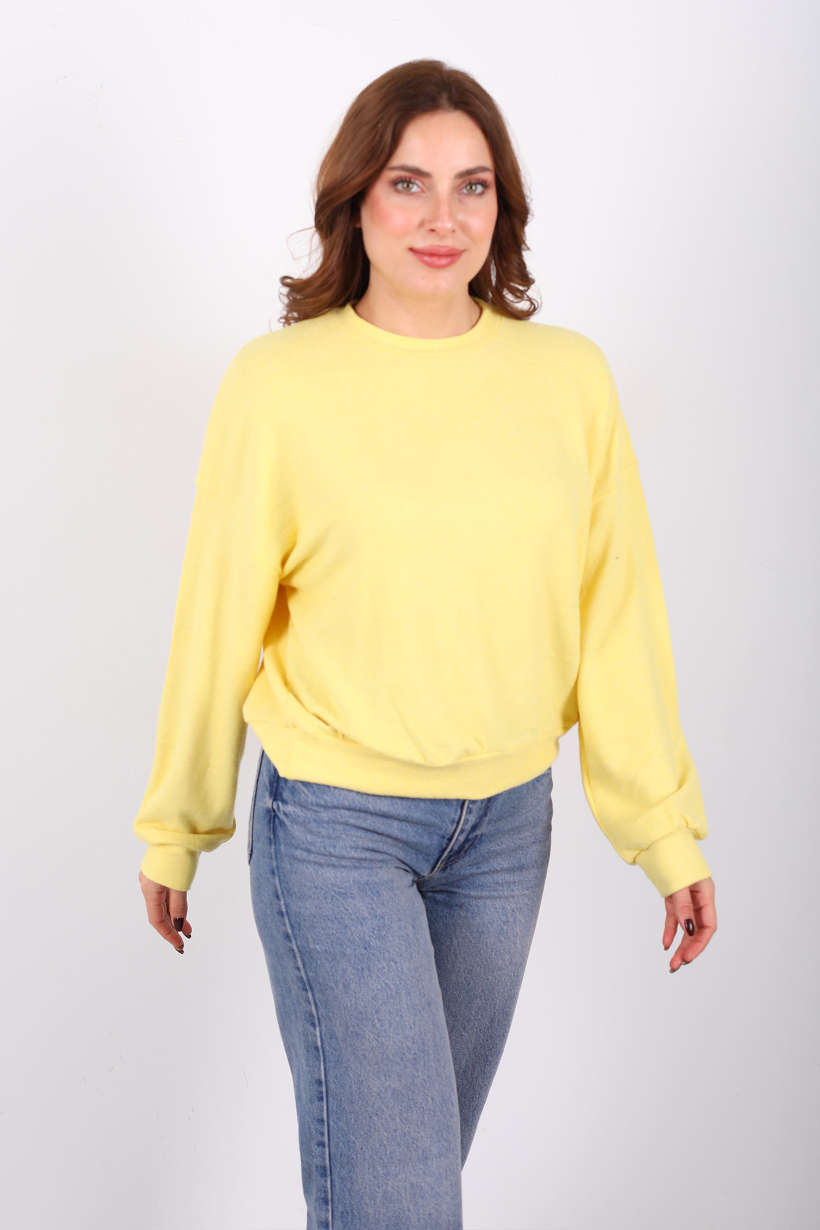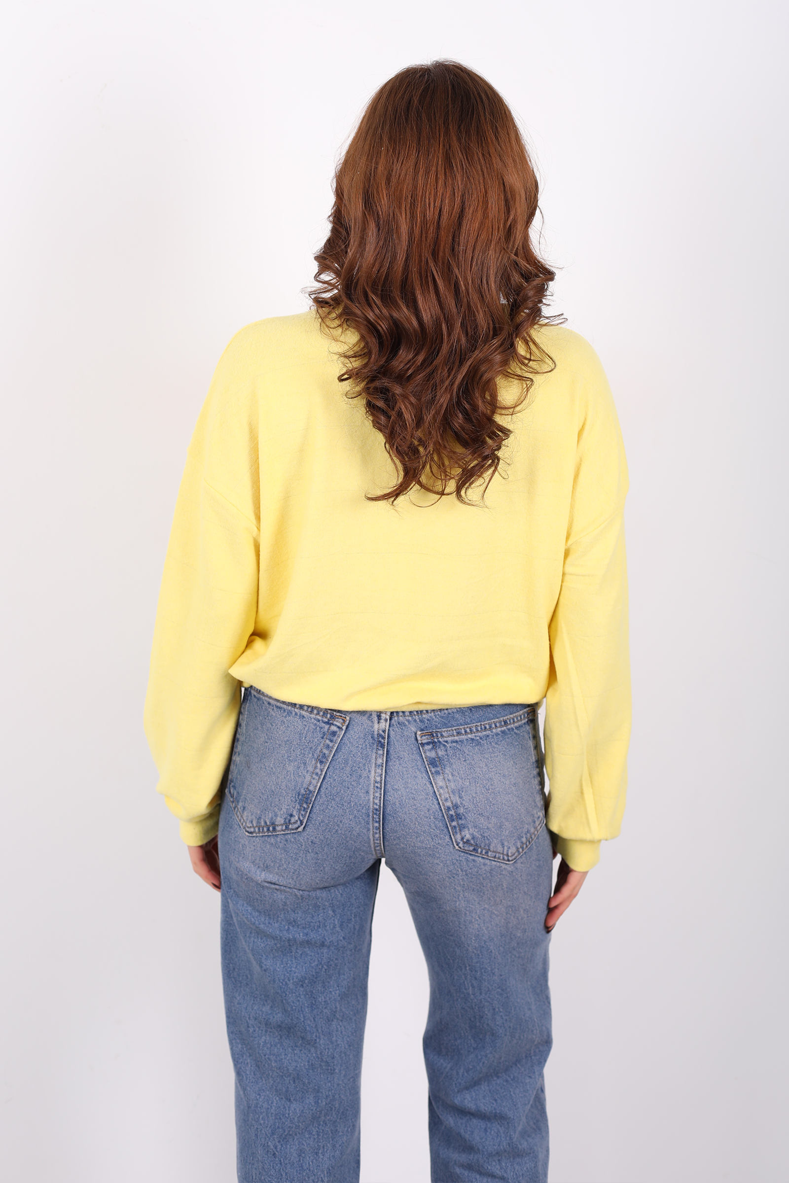 Beli Lastikli Bisiklet Yaka Sarı Kadın Bluz