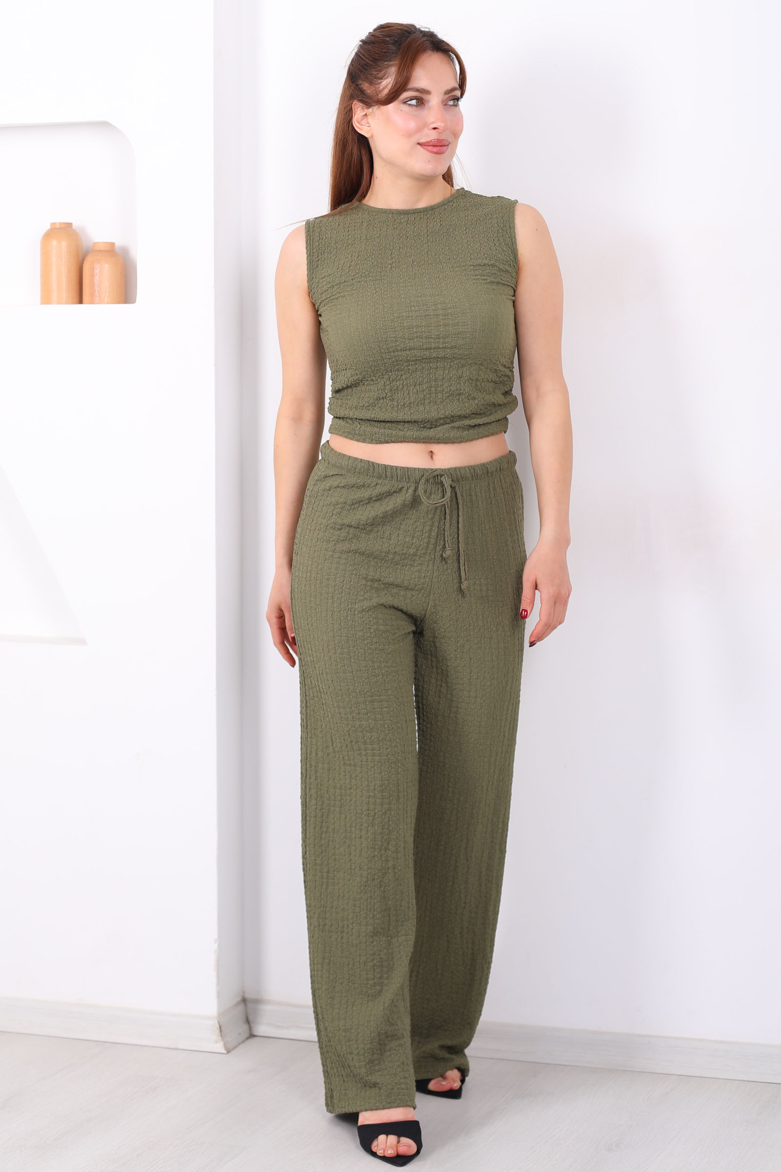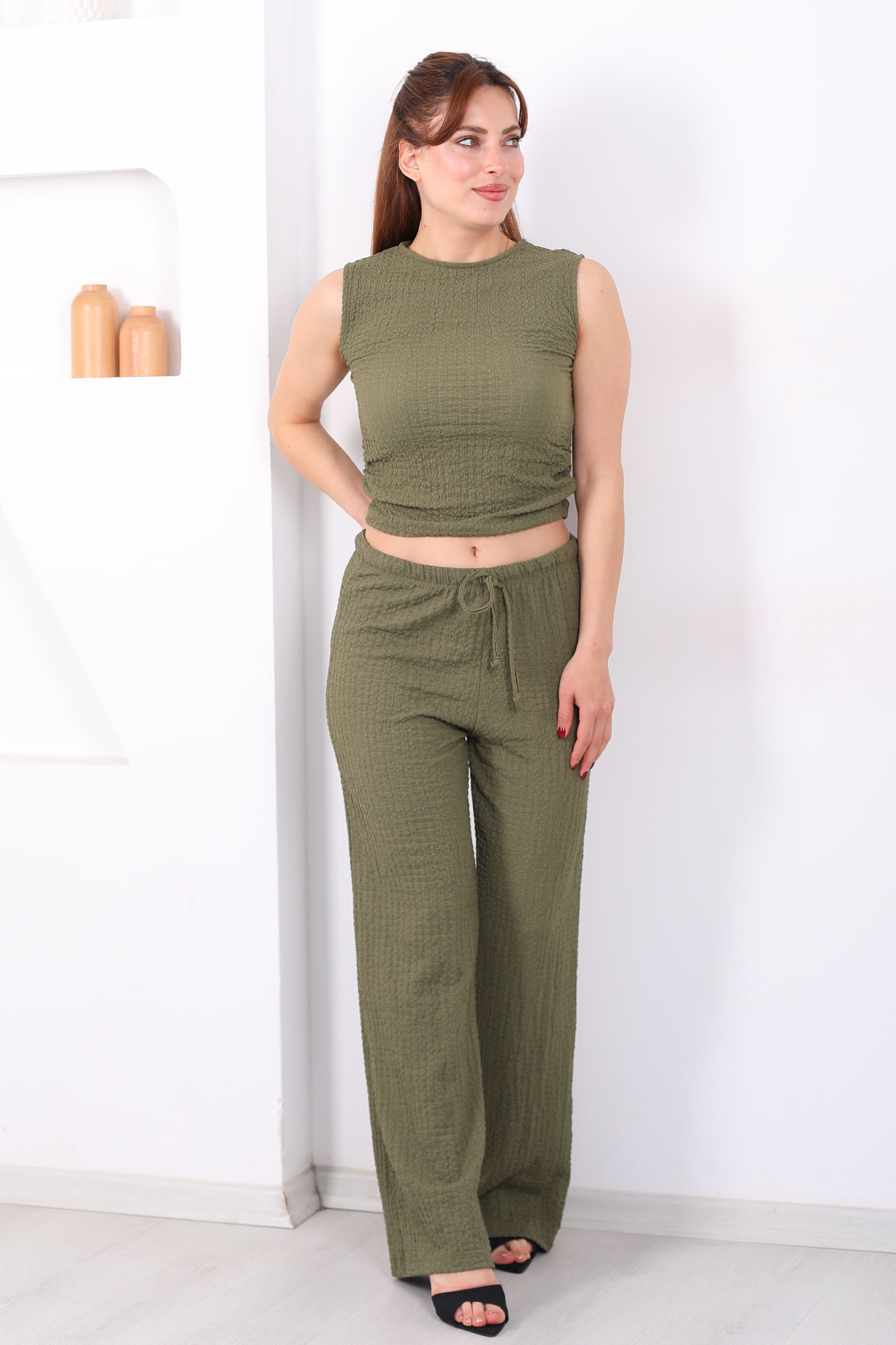 Beli Lastikli Bol Paça Kadın Haki Bubble Pantolon