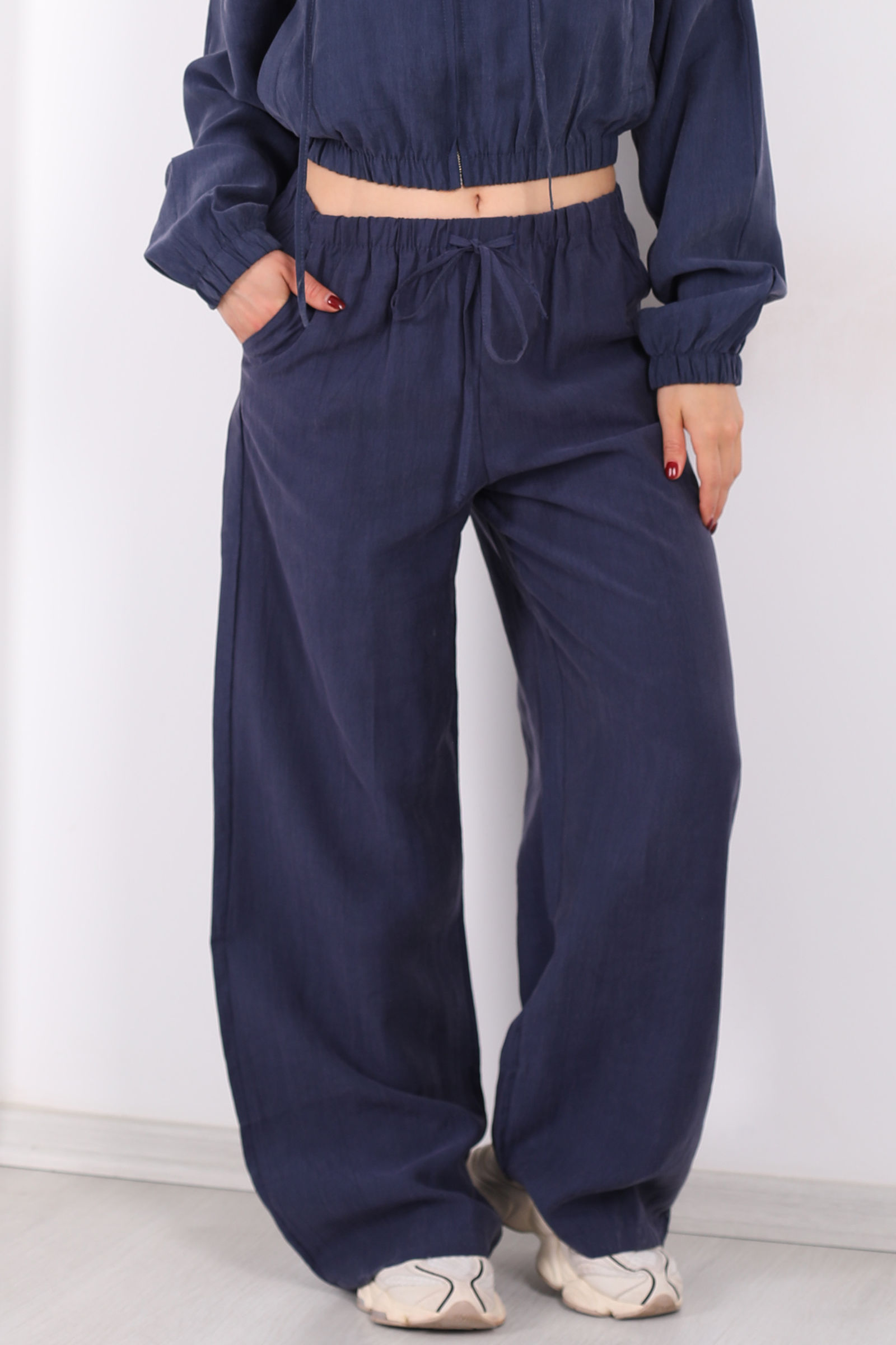 Beli Lastikli Bol Paça Marin Kadın Tencel Pantolon