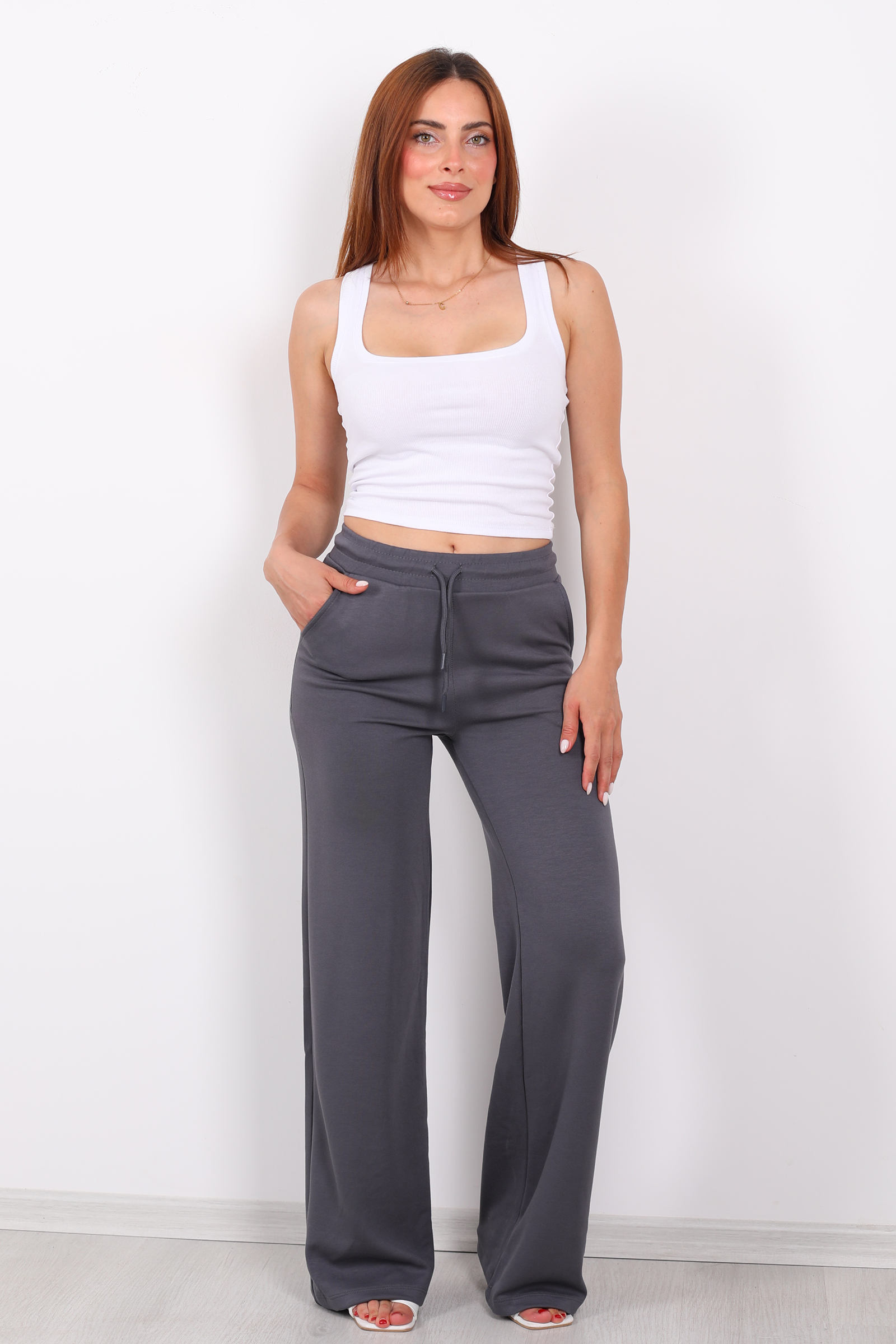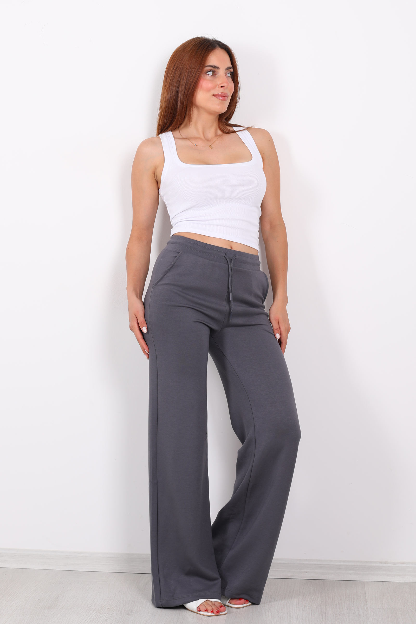 Sofistike antrasit tonu ile her ortamda sadelik ve zarafeti bir arada sunan bu pantolon, bol paça kesimi sayesinde hareketinize özgürlük katarken beli lastikli özelliğiyle konforu zirveye taşıyor. Modal kumaşın cilde dost yumuşak dokusu, gün boyu süren rahatlığı garanti eder. Hem modern şehir kombinlerinde hem de rahat ev günlerinde stilinizi tamamlayan bu parça, minimalist ama etkileyici bir duruş sergiler.