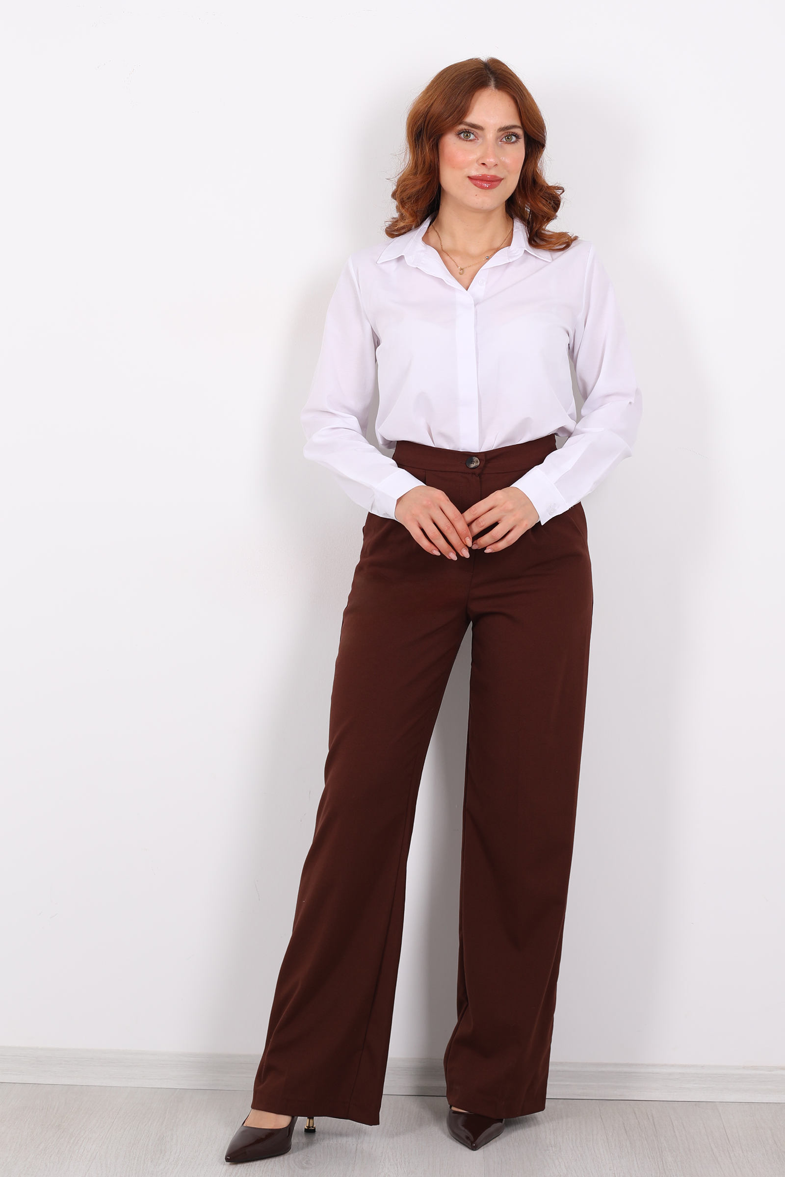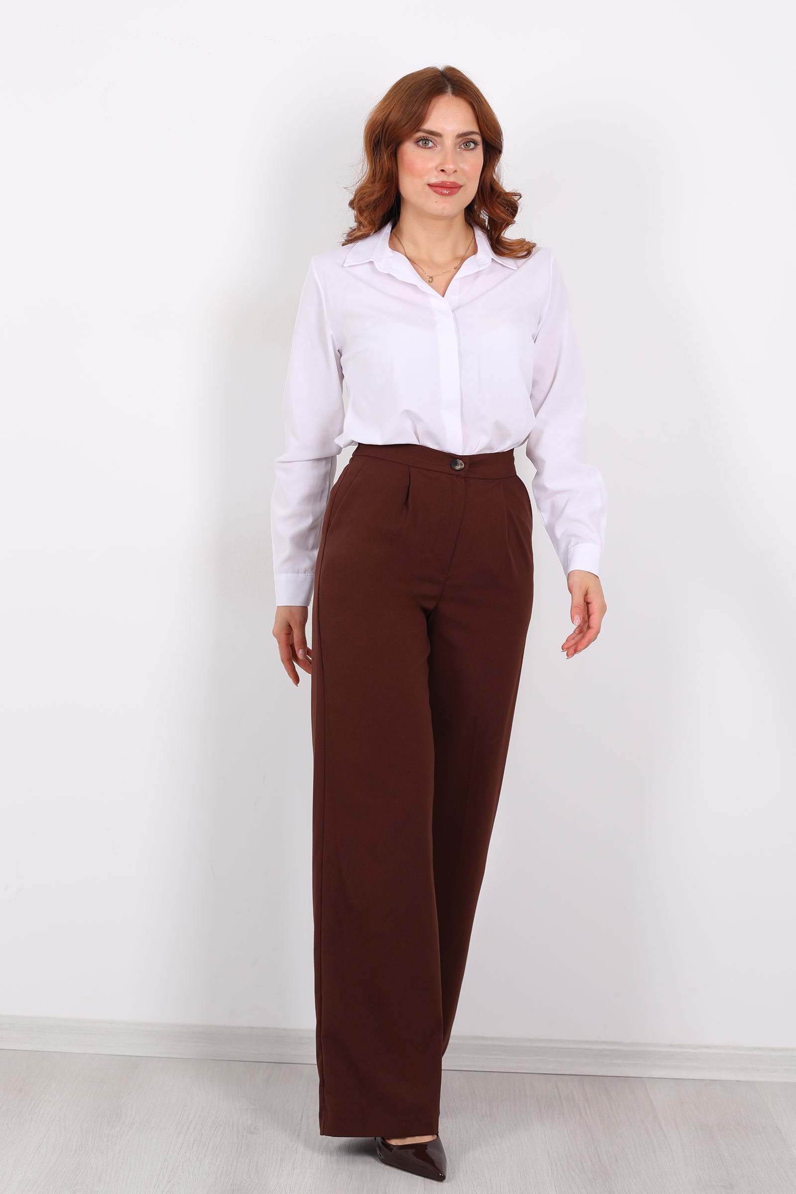 Kahverenginin sıcak derinliği ile zamansız bir kesimin birleştiği bu pantolon, lastikli bel detayı sayesinde hem tarz hem de konfor sunuyor. Hem iş günlerinde hem hafta sonu kombinlerinizde rahatlıkla tercih edebileceğiniz sofistike bir parça.Kahverengi kumaş pantolonlar, moda uzmanlarına göre bej, krem, lacivert gibi renklerle çok yönlü bir stil yaratmak için ideal.Pantolon, kaliteli kumaş pantolon dokusuna sahip; dokusu yumuşak ve akıcıdır, vücudu sıkmadan hoş bir oturuş sağlar.