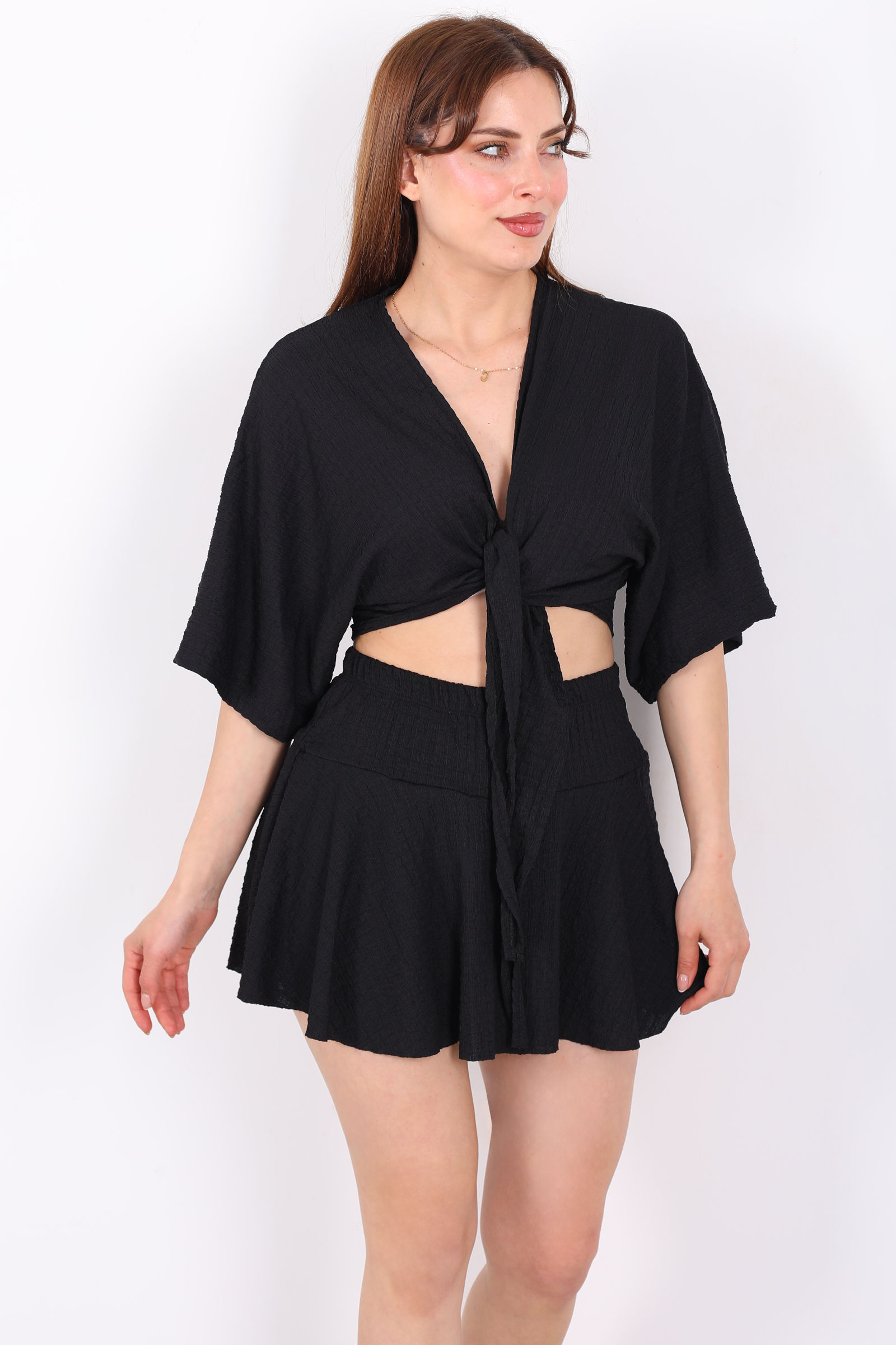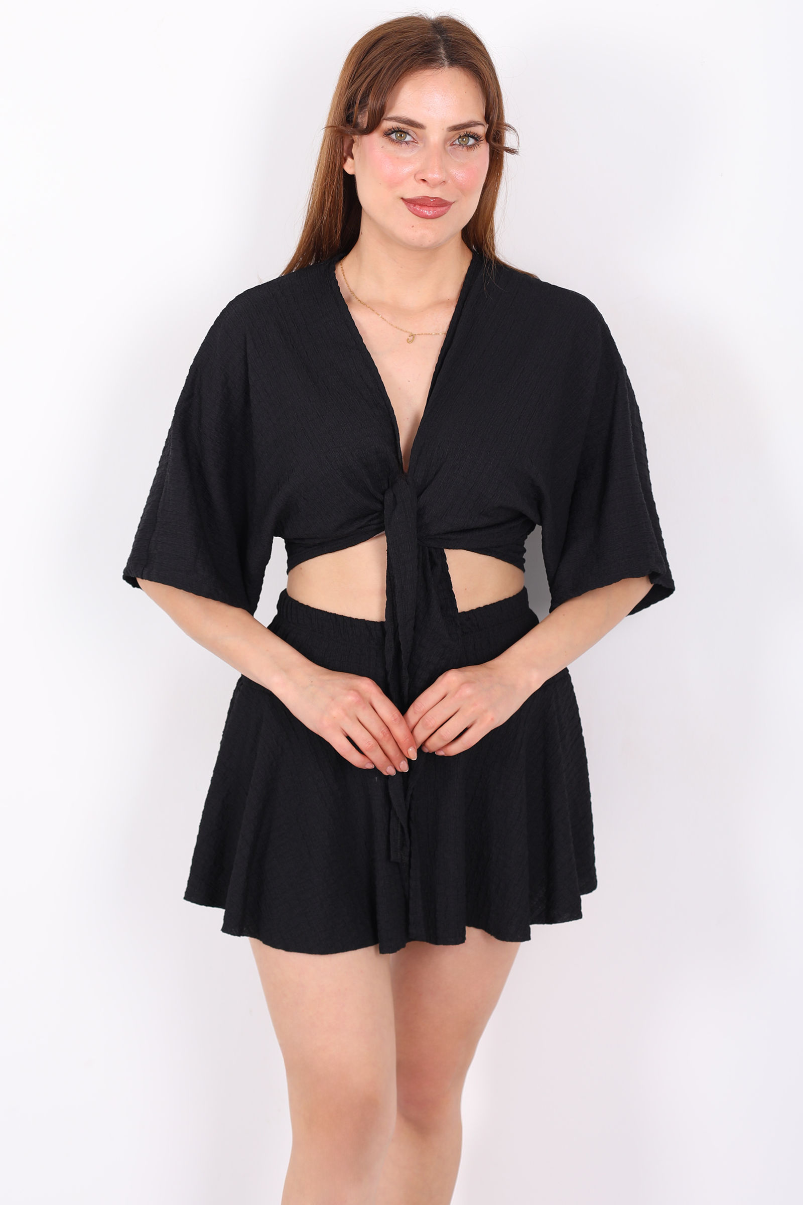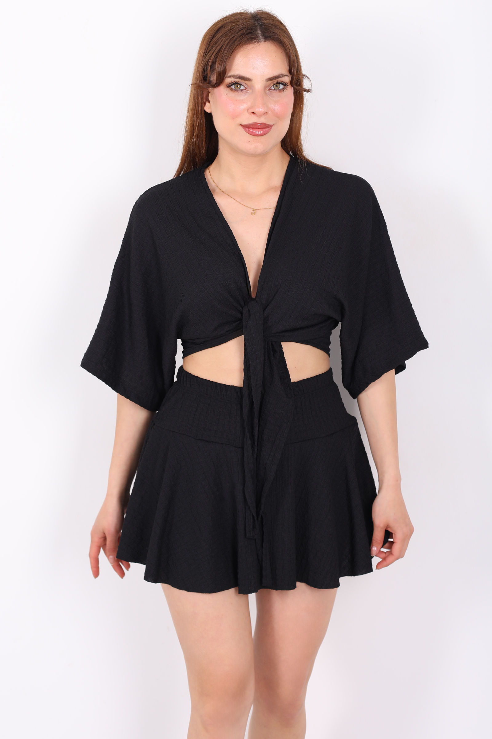 Beli Lastikli Bubble Siyah Kadın Mini Şort Etek