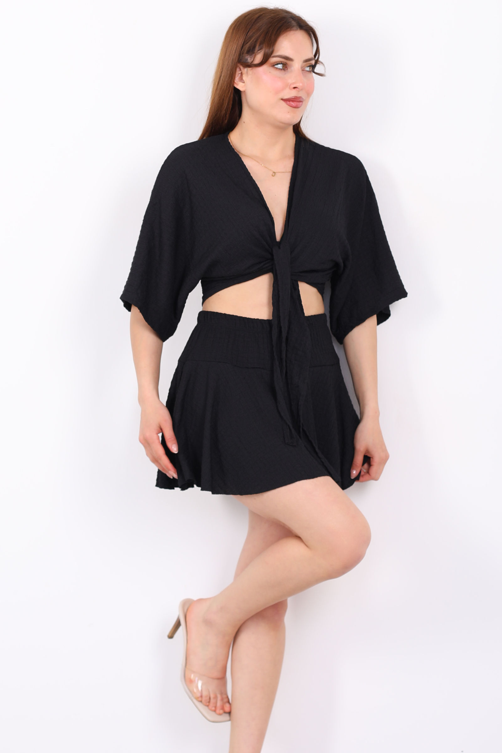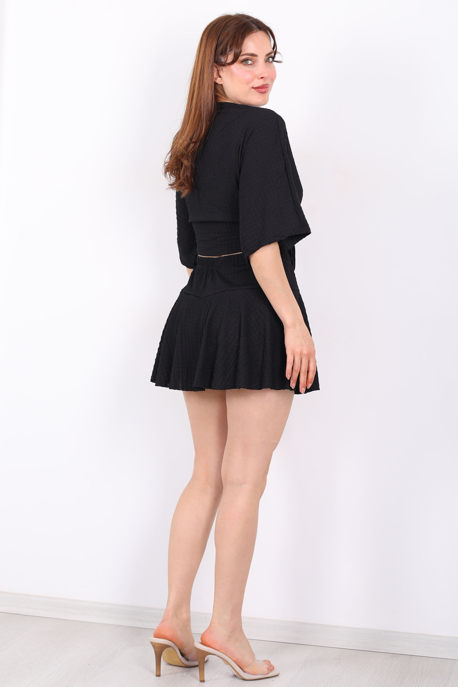 Kırma Piliseli Kemerli Siyah Mini Etek