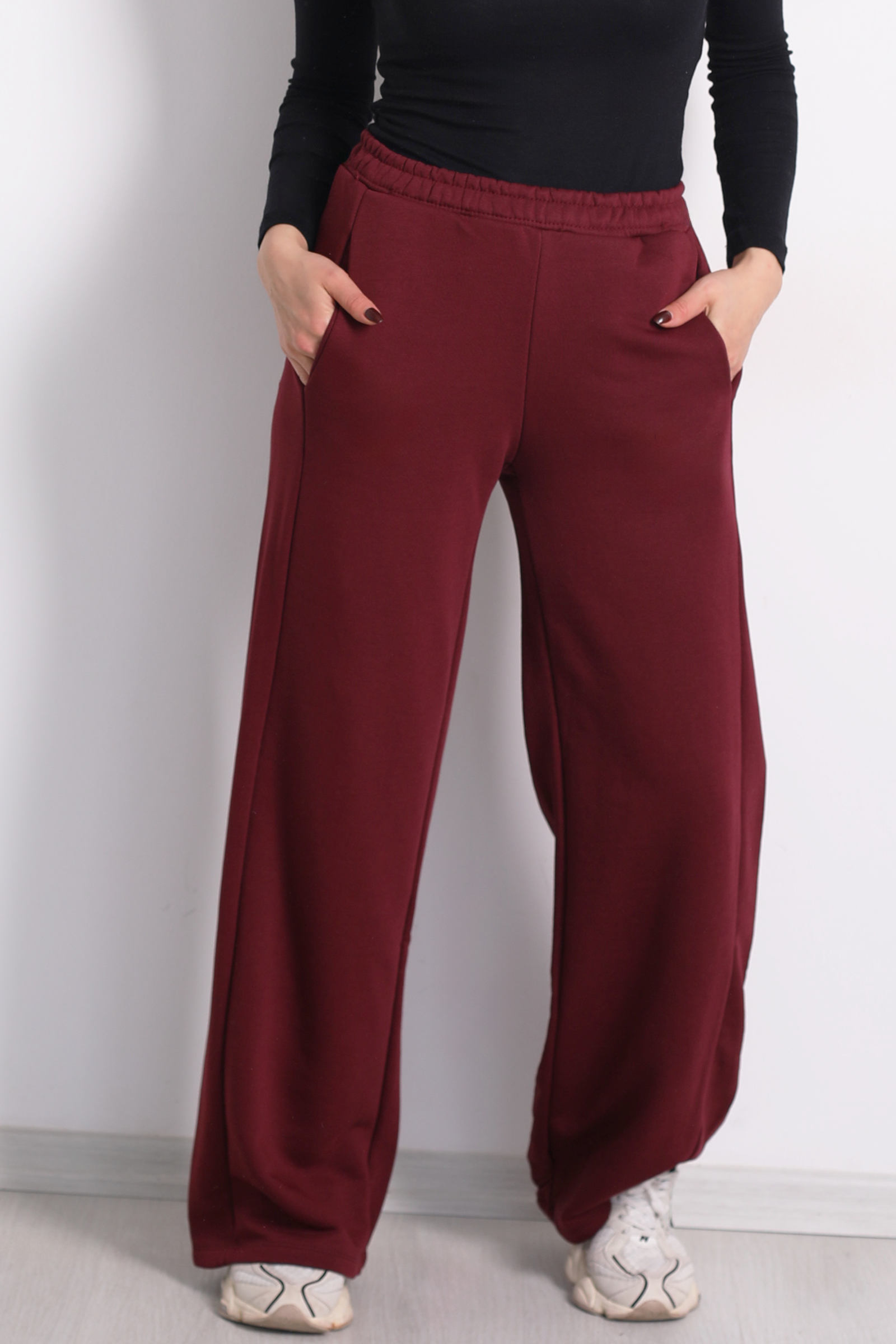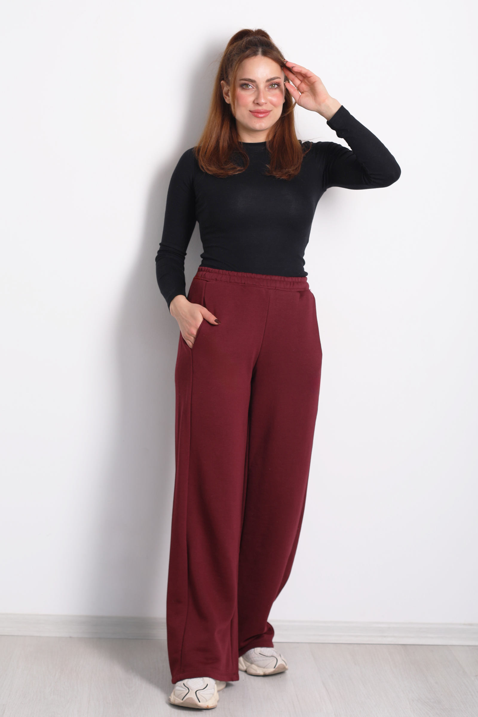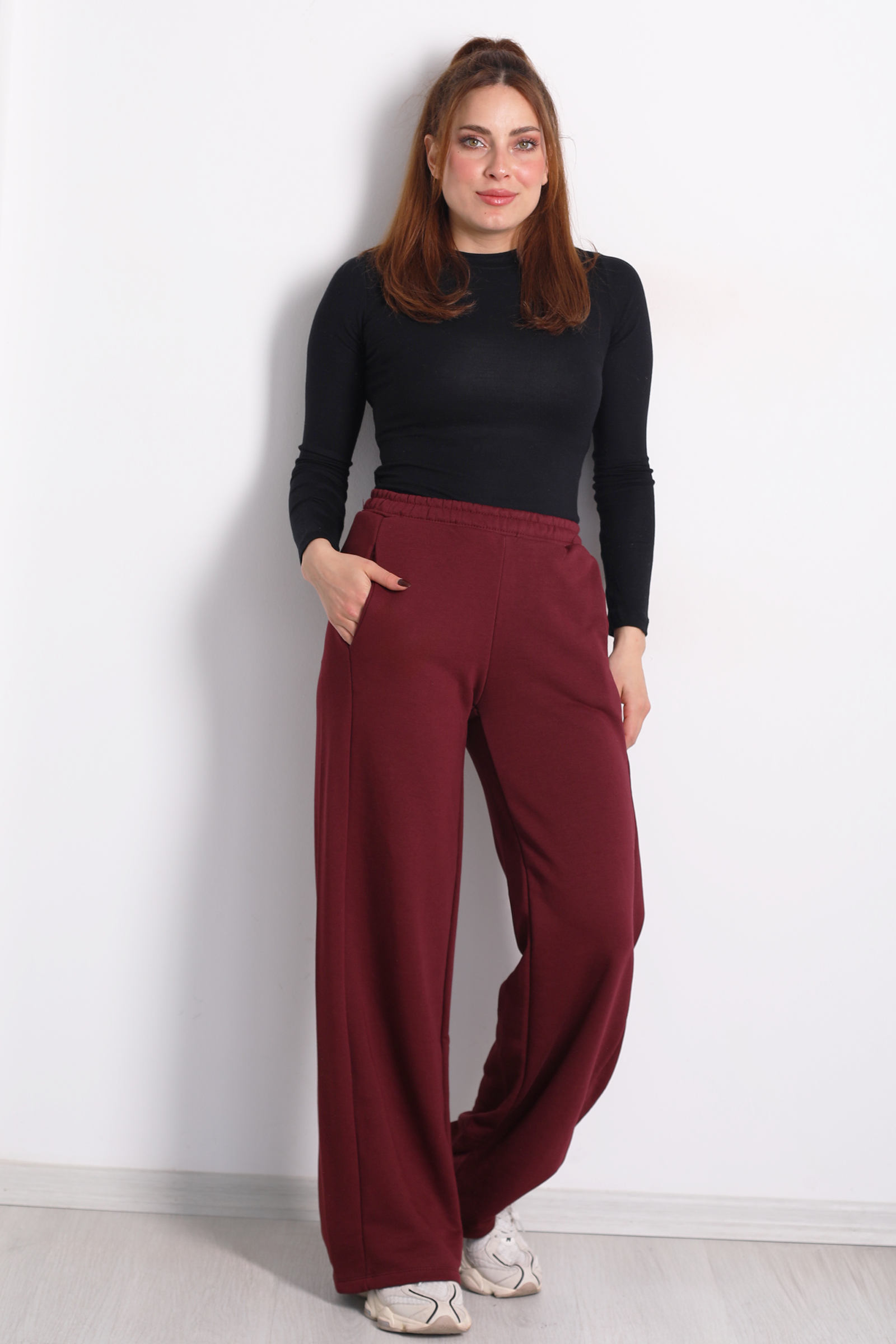 Bordo tonunun derinliğiyle dikkat çeken bu geniş paça eşofman altı, bel ve paça lastiği sayesinde konforu ön planda tutuyor. Yan cepler, gündelik hareketlerinizde pratik bir kullanım sunarken minimalist detaylarla takımı dengeliyor. Kumaşın yumuşak yapısı adımlarınıza akıcı bir his vererek sabah rutinlerinden akşam dinlenmesine kadar gün boyu rahatlık sağlar. Bu eşofman altı, sade veya sportif üstlerle birlikte modern bir athleisure çizgisini yakalamanıza yardımcı olur.