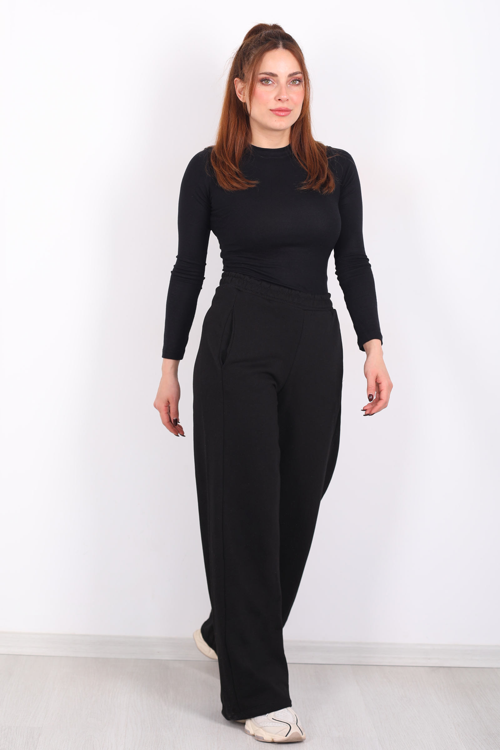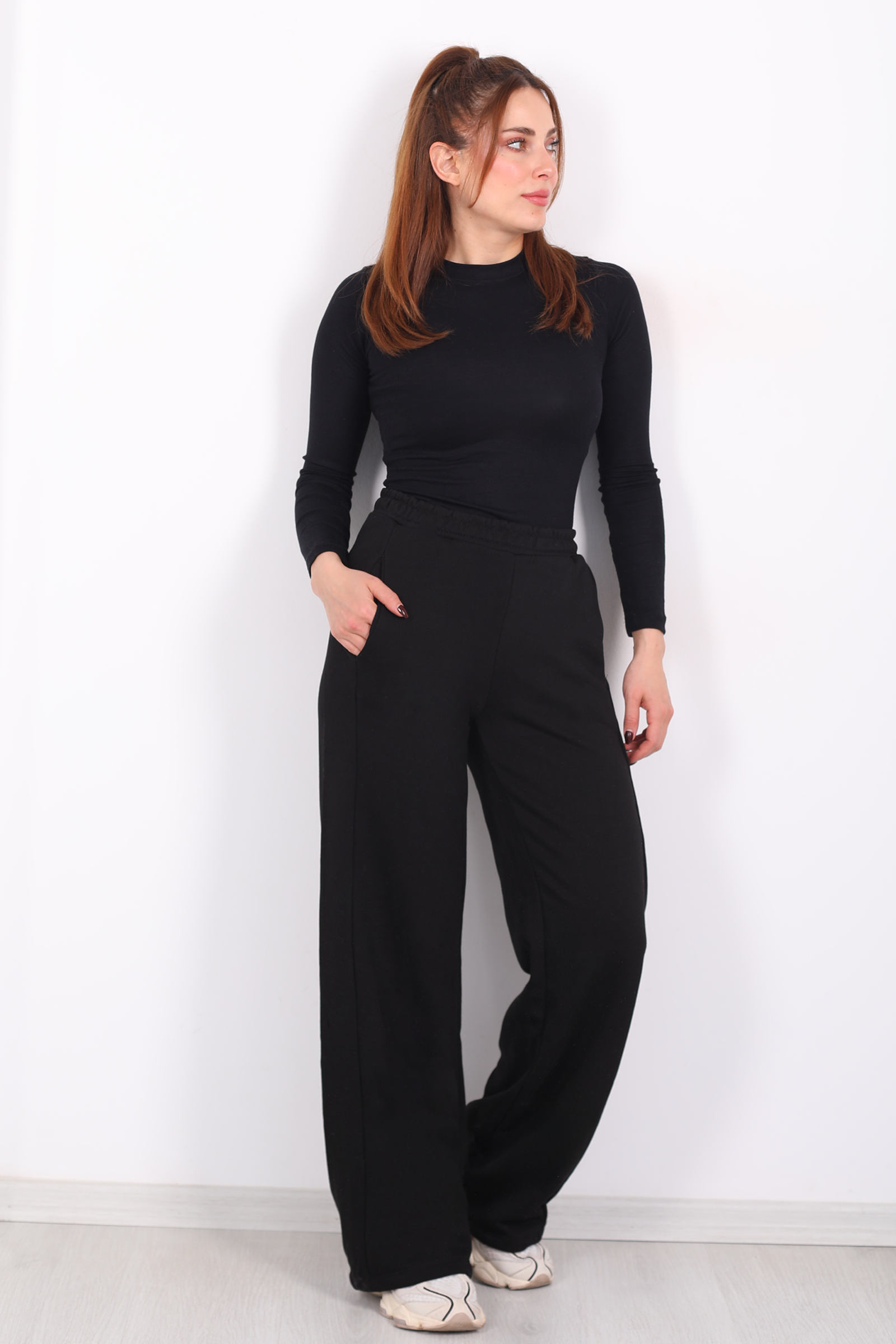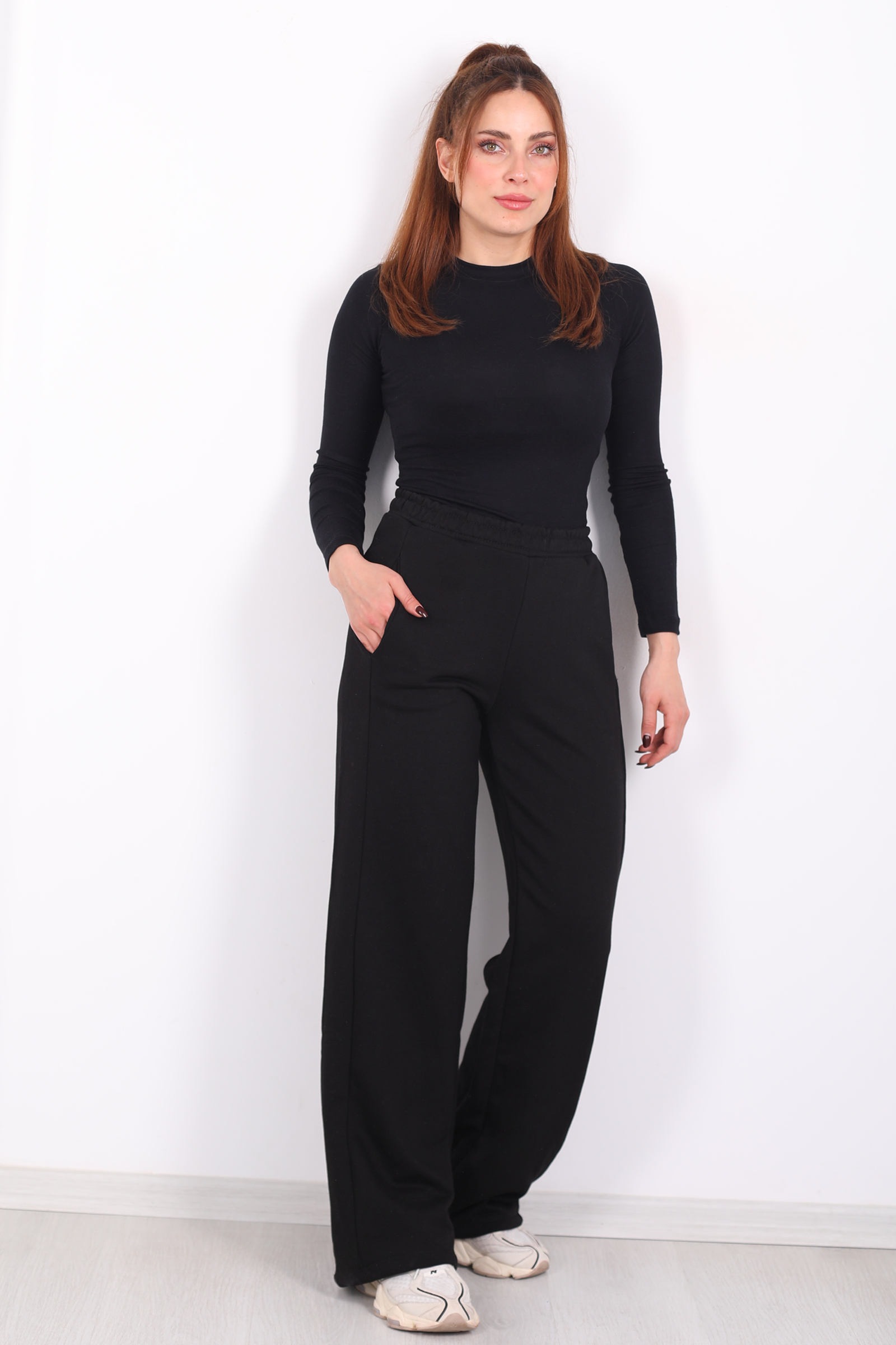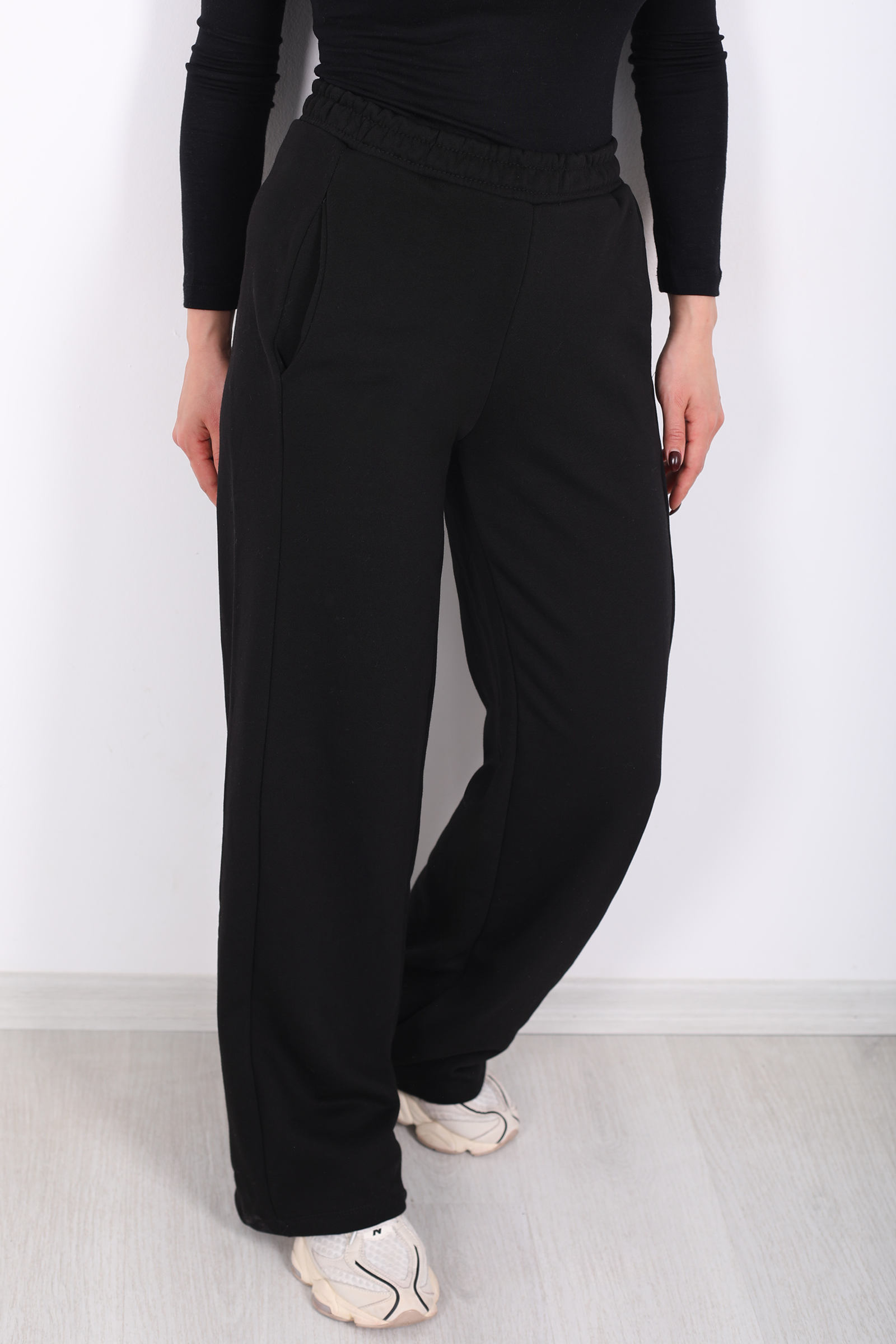 Siyahın zamansız enerjisini taşıyan bu geniş paça eşofman altı, bel ve paça lastiğinin dengeli kavramasıyla rahatlığı bir üst seviyeye taşıyor. Yan cepler, tasarıma fonksiyonel bir hareketlilik katarak gündelik ritminizde küçük ama önemli bir pratiklik sağlar. Üç iplik kumaş, gün boyu yumuşak bir his bırakırken sportif tarzı casual çizgiyle harmanlar. Sade ama karakterli duruşuyla dikkat çeken bu model, minimalist parçalarla birleştiğinde cool bir ahenk yaratır.