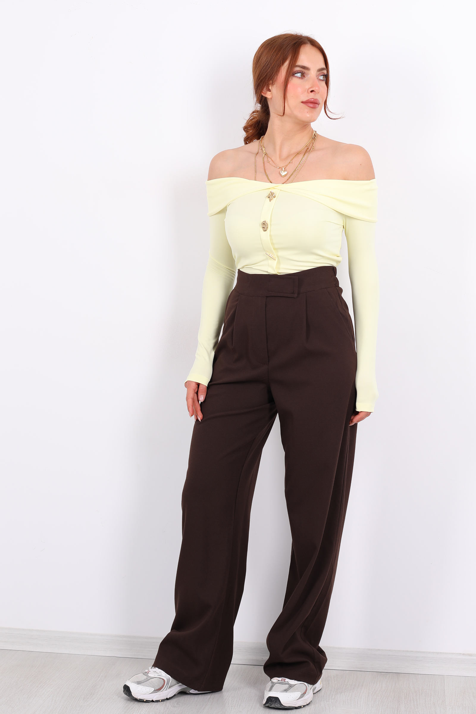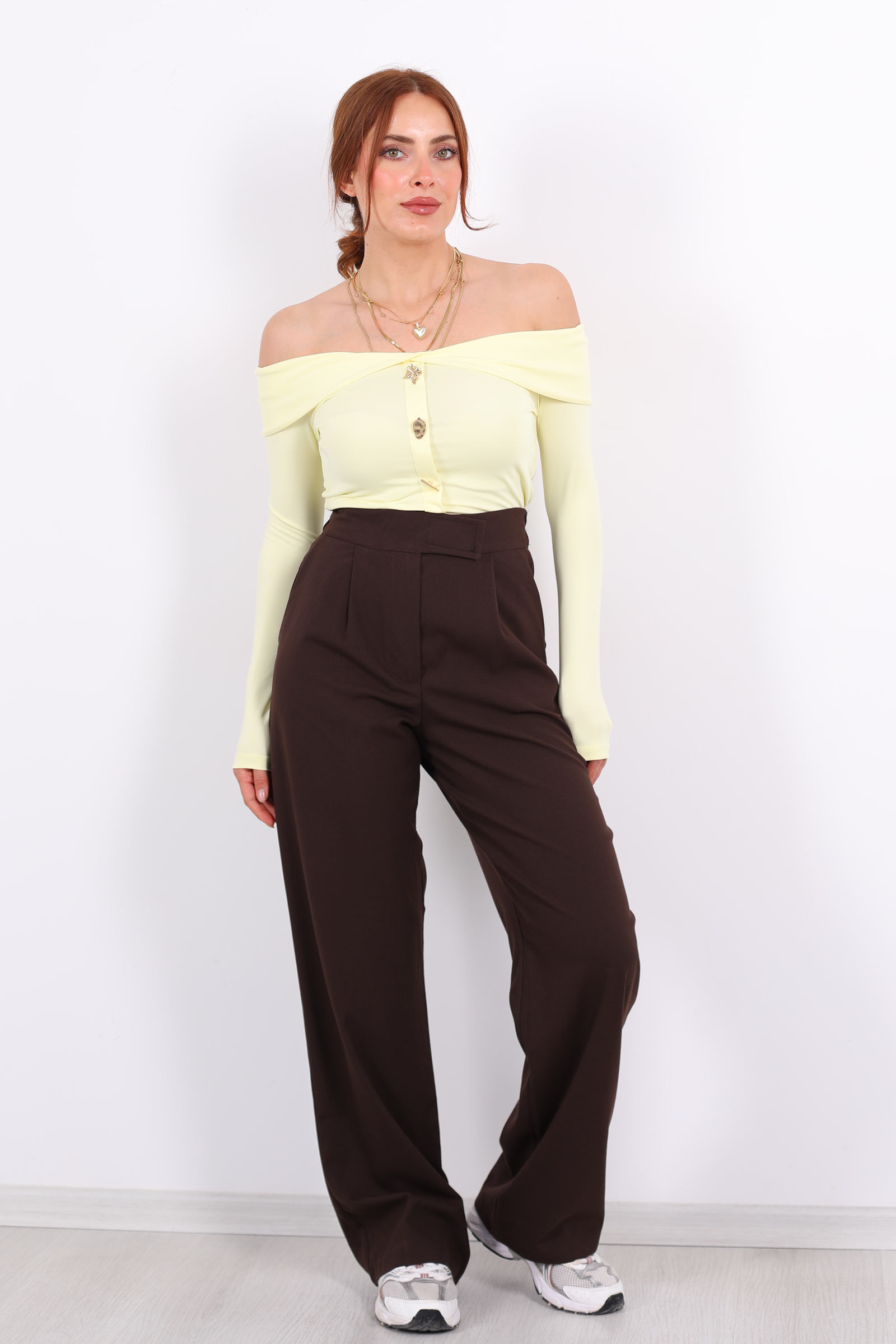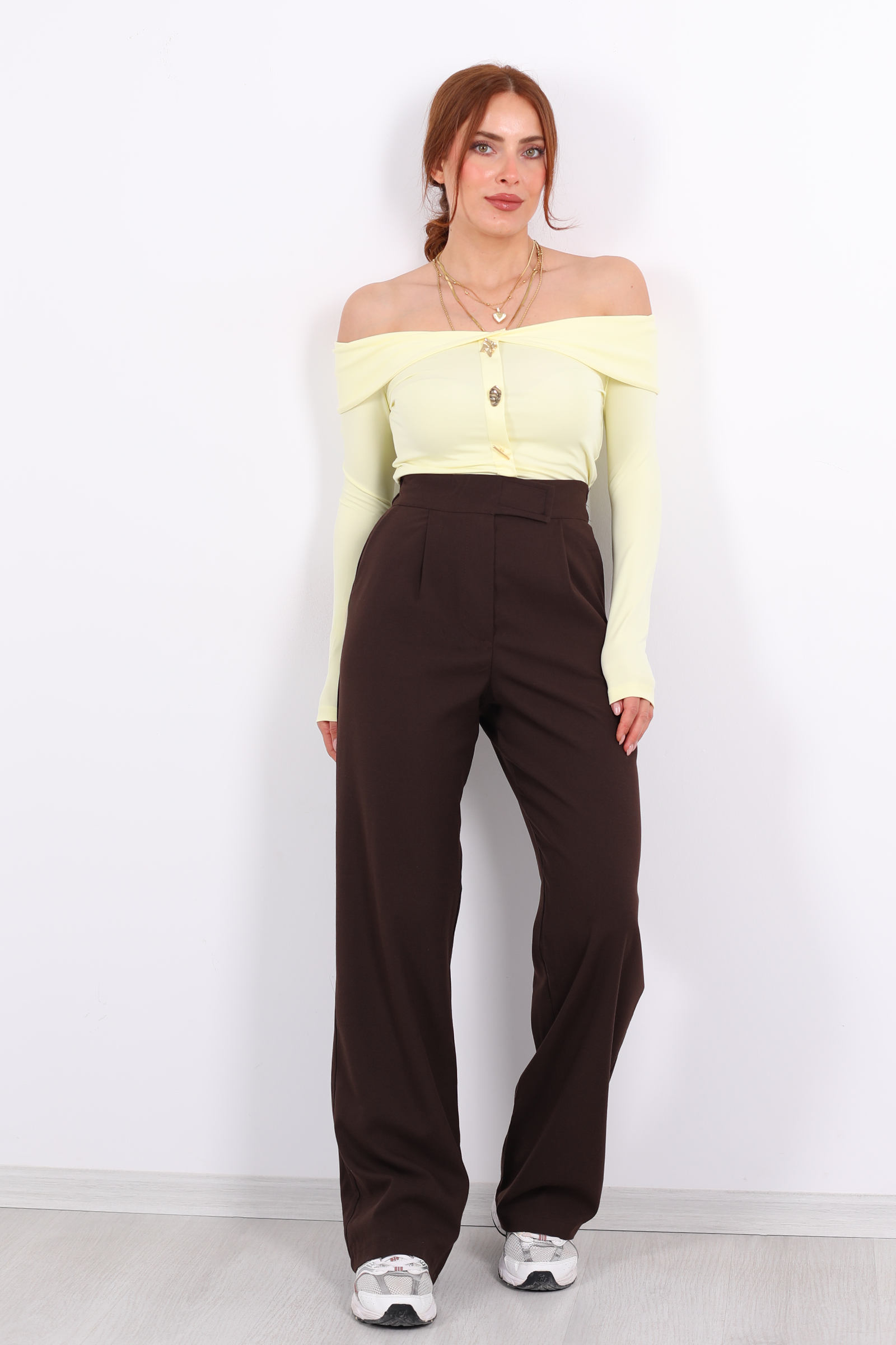 Modern kadının gardırobuna zarif bir dokunuş katan bu pantolon; acı kahve tonunun sıcaklığı ile konforu bir araya getiriyor. Elastik bel bandı ve cırtlı kapanma detayı sayesinde hem rahat hem de pratik bir kullanım sağlar. Yumuşak dokulu kumaşı sayesinde gün boyu özgürce hareket ederken, şık kesimiyle hem günlük kombinlerde hem de daha resmi alternatiflerde stilinizi tamamlar.