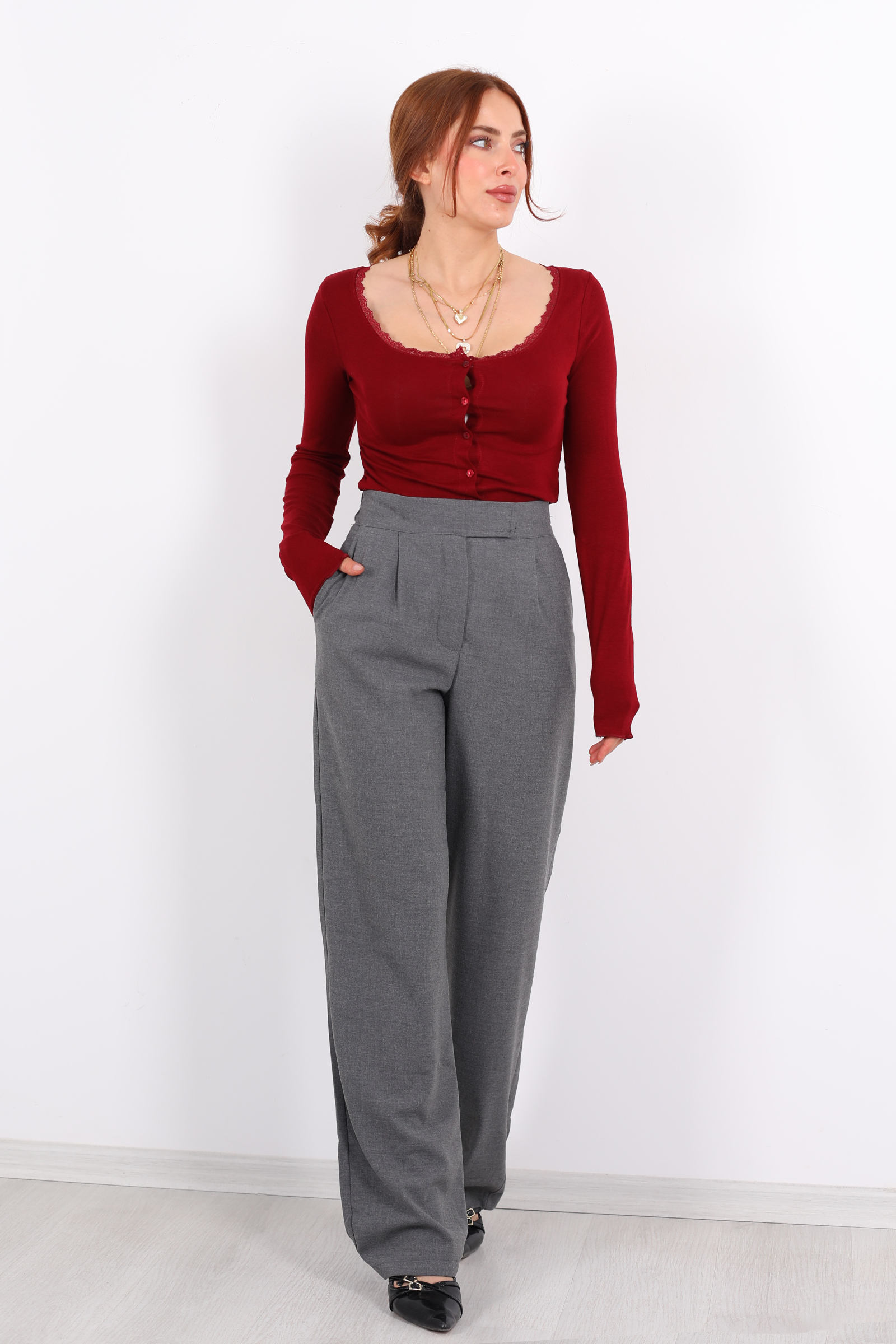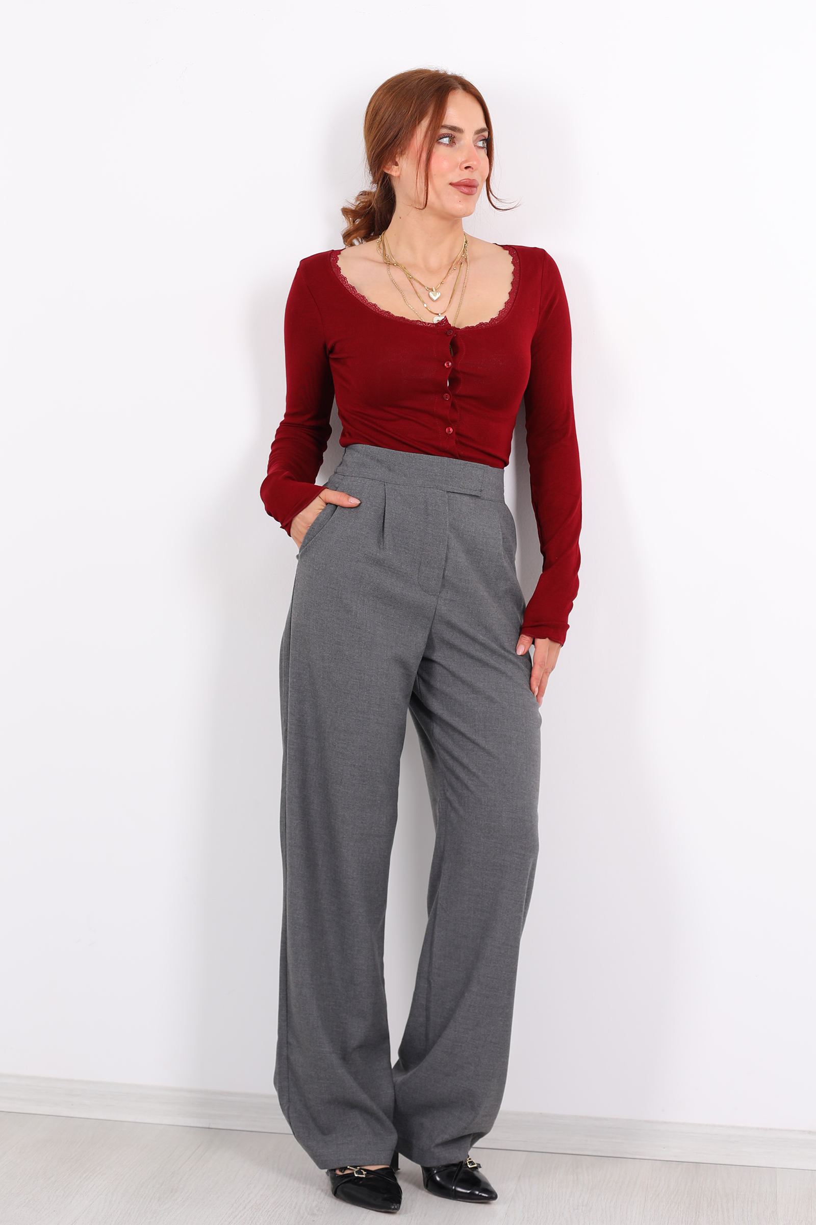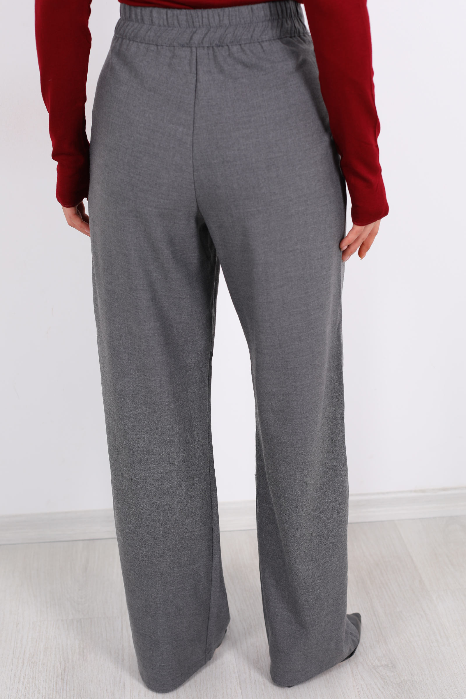 Gölgelerin zarafetiyle şekillenmiş bir pantolon: Füme tonunun sakin ve derin ruhunu taşıyan bu parça, stilinizde hem dinginlik hem güçlü bir duruş sağlar. Lastikli beli ve cırtlı kapanma detayı ile ayarlaması kolay, kullanımı pratik ve konforu yüksek. Bu pantolon, klasik ile modernin buluştuğu bir köprü gibi hem resmi kombinlerde hem de rahat gündelik stilinizde yer alabilir.