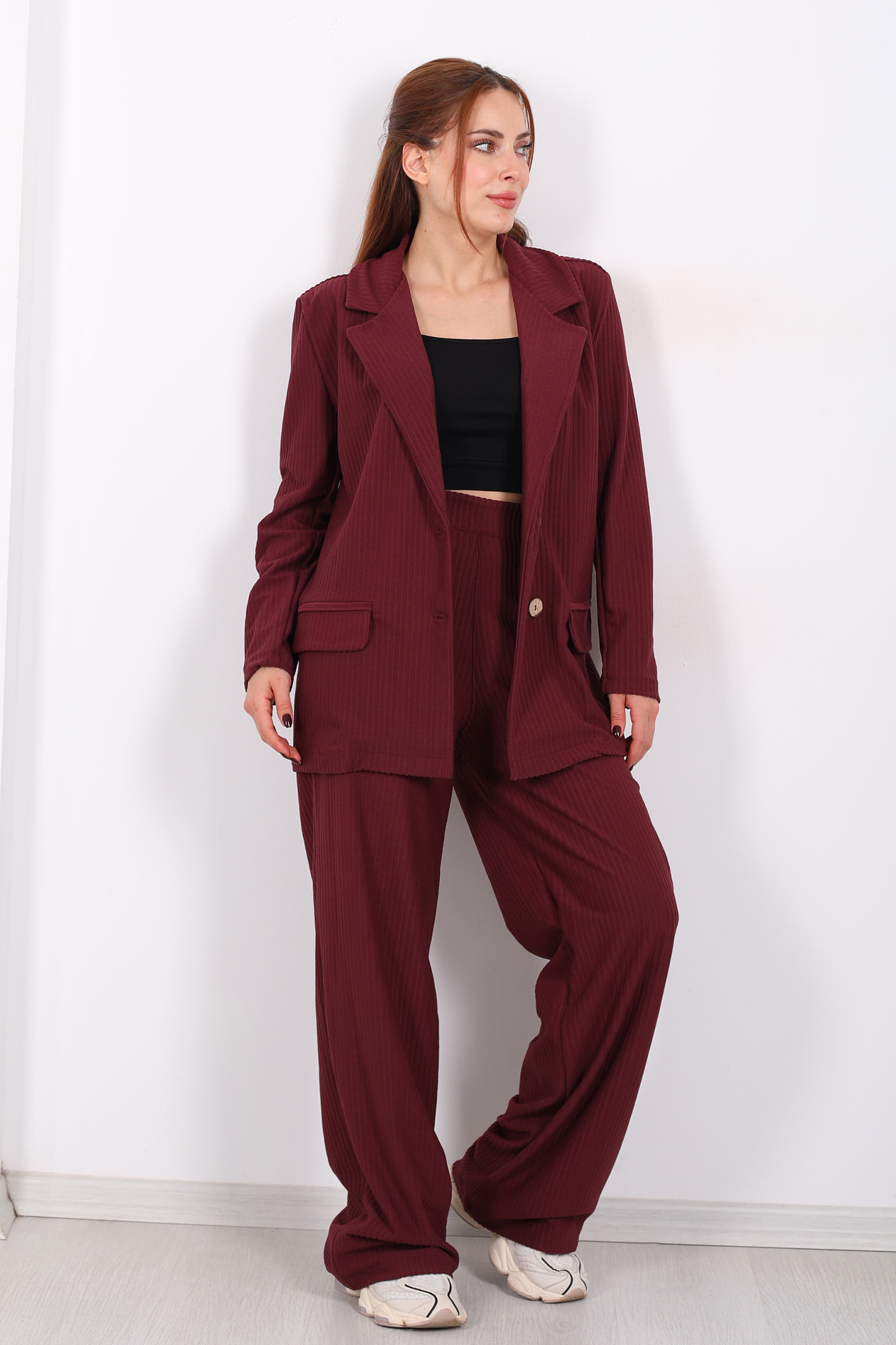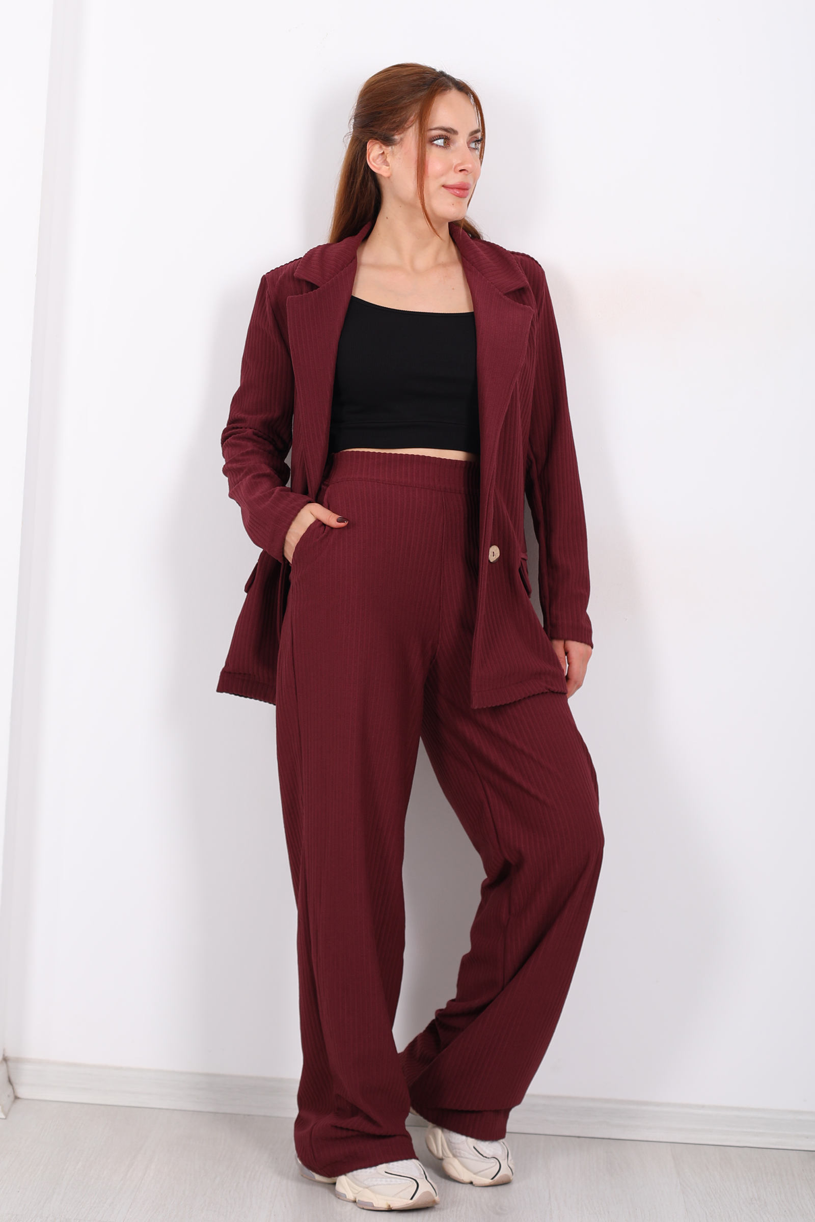 Beli Lastikli Dokuma Bordo Kadın Palazzo Pantolon