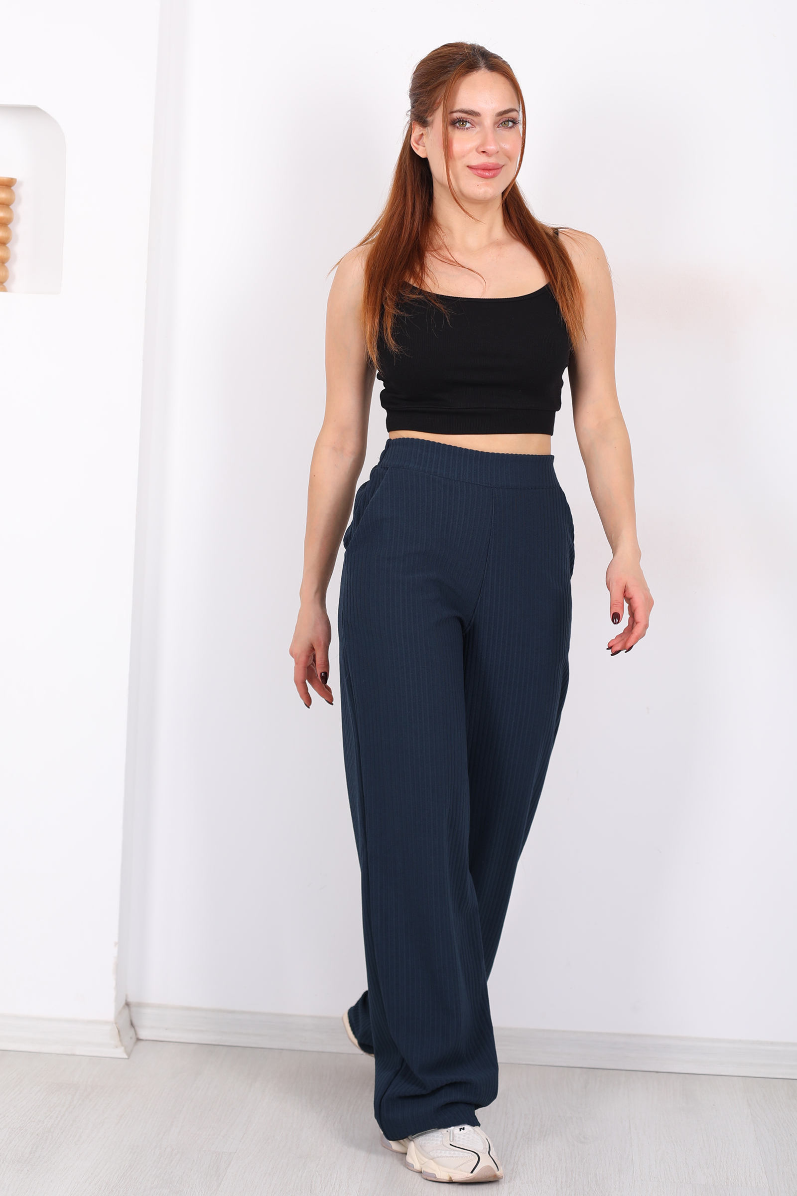 Beli Lastikli Yüksek Bel Lacivert Kadın Modal Pantolon