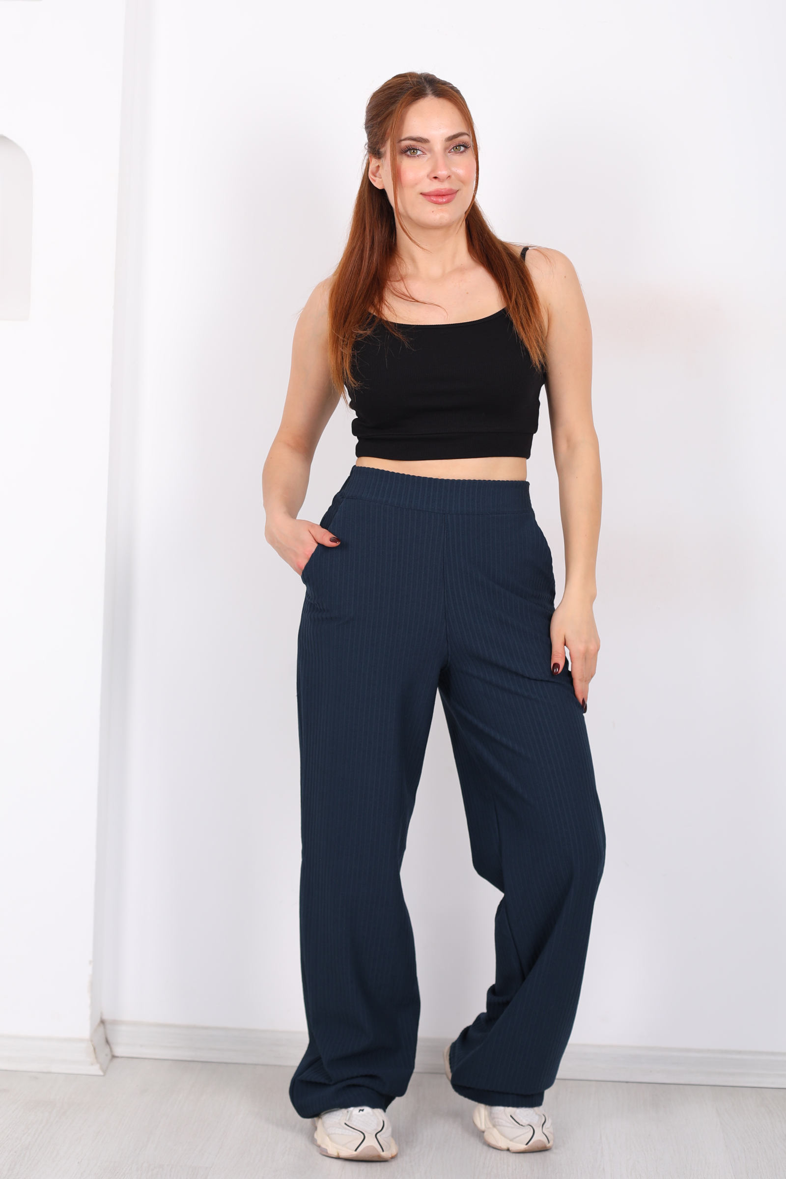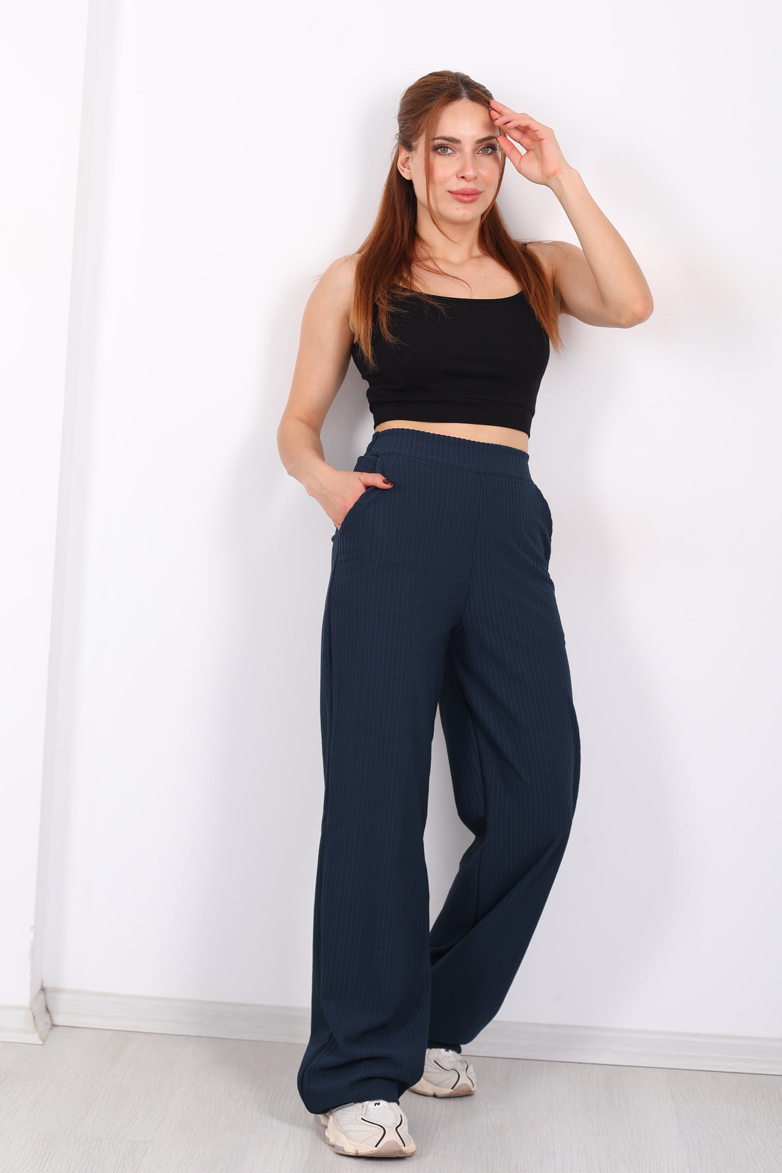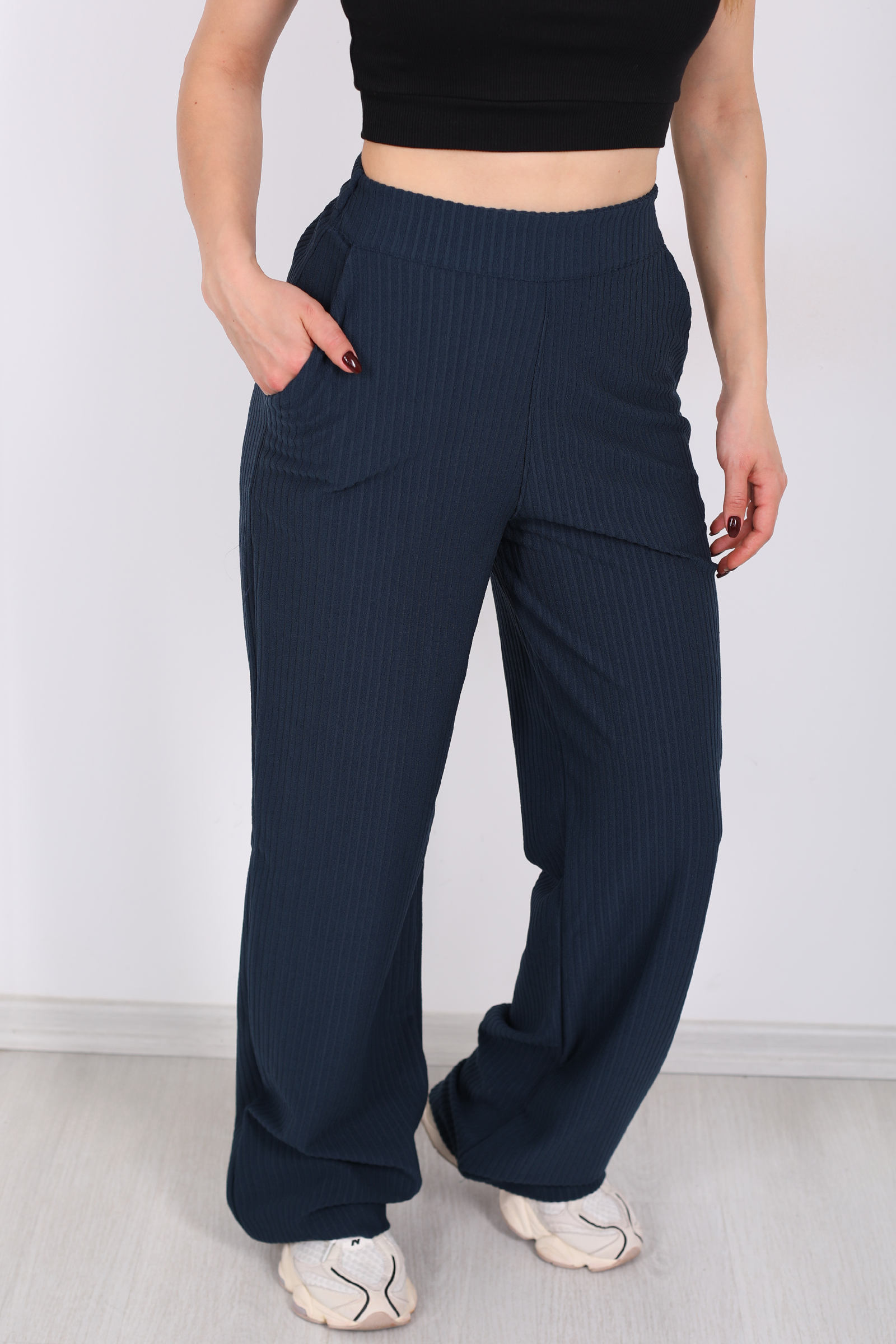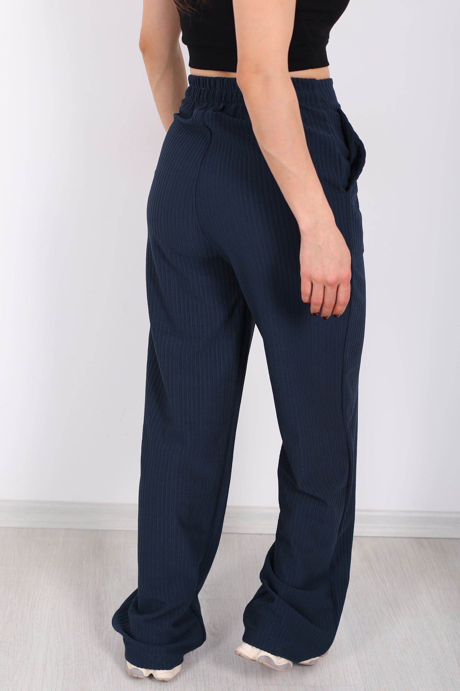 Beli Lastikli Dokuma Marin Kadın Palazzo Pantolon