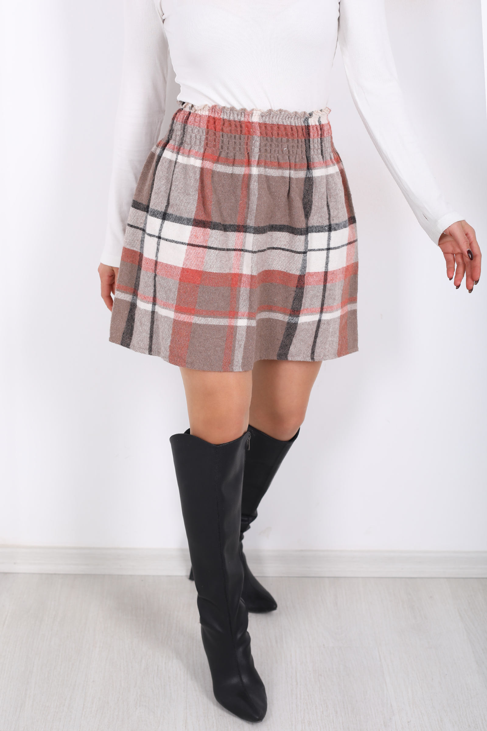 Bu vizon tonlardaki kareli ekose desenli mini etek, klasik ve feminen stilin modern yansıması. Yumuşak dokulu kaşe kumaştan üretilmiş, günlük giyimde şık & konforu birleştiriyor. Zarif pile detayları, eteğe hacim kazandırırken zarafet duygusunu da artırıyor. Beli lastikli tasarım, gün boyu rahat hareket özgürlüğü sunuyor. Orta kalınlıkta kumaş yapısı ile dört mevsim kullanım için ideal.