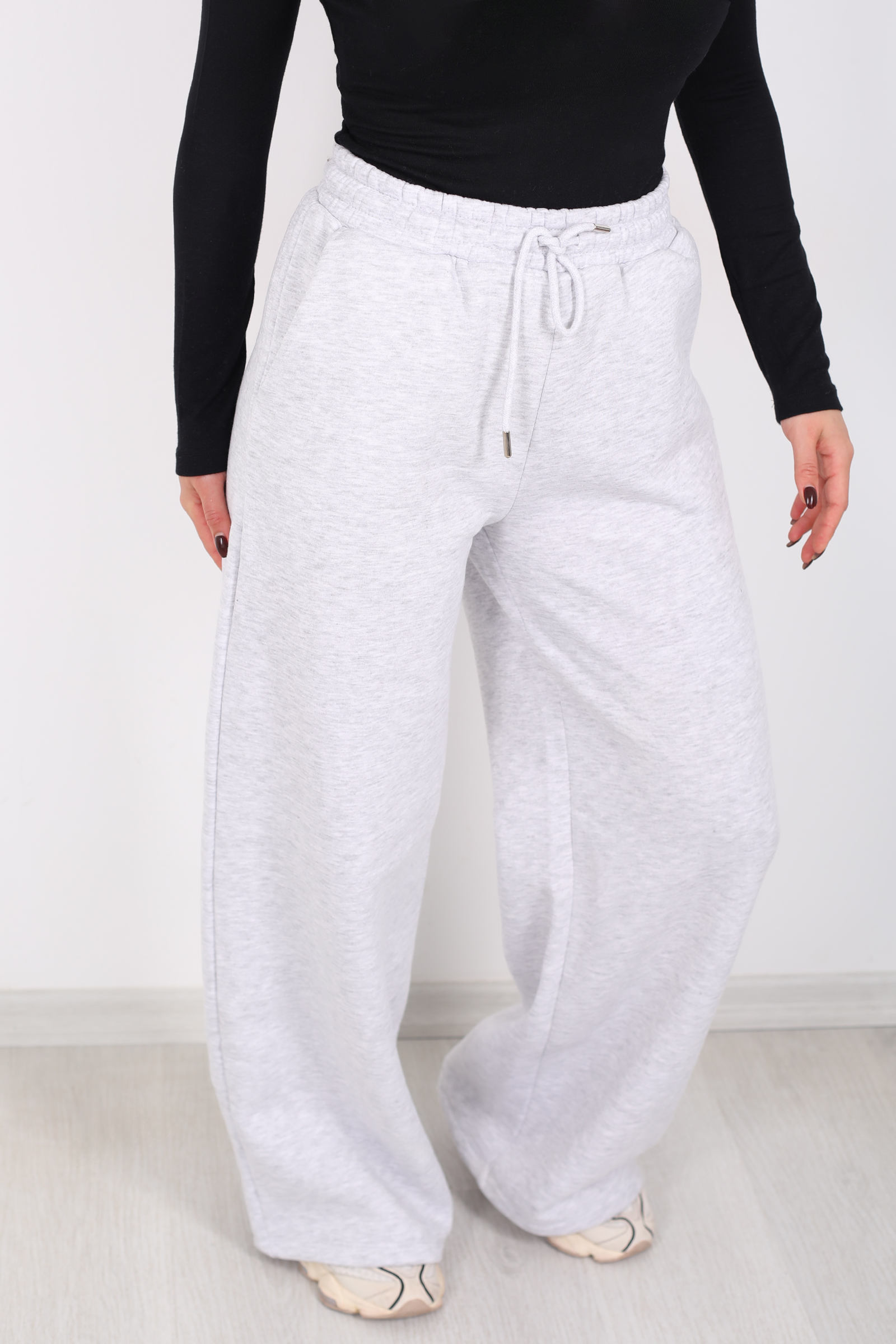 Gri tonunun dingin ifadesiyle tasarlanan bu geniş paça eşofman altı, beli lastikli yapısıyla konforu kolayca yakalıyor. Üç iplik kumaşın yumuşaklığı, gün içinde hareketlerinizi kısıtlamadan akıcı bir his sunar; geniş paça kesimi ise sportif tarzı modern bir siluetle buluşturur. Minimal detaylar, sade üstlerle birleştiğinde stilinize yalın ama dengeli bir hava verir. Günlük aktivite ve ev rahatlığını bir arada yaşamak isteyenler için ideal bir seçim.