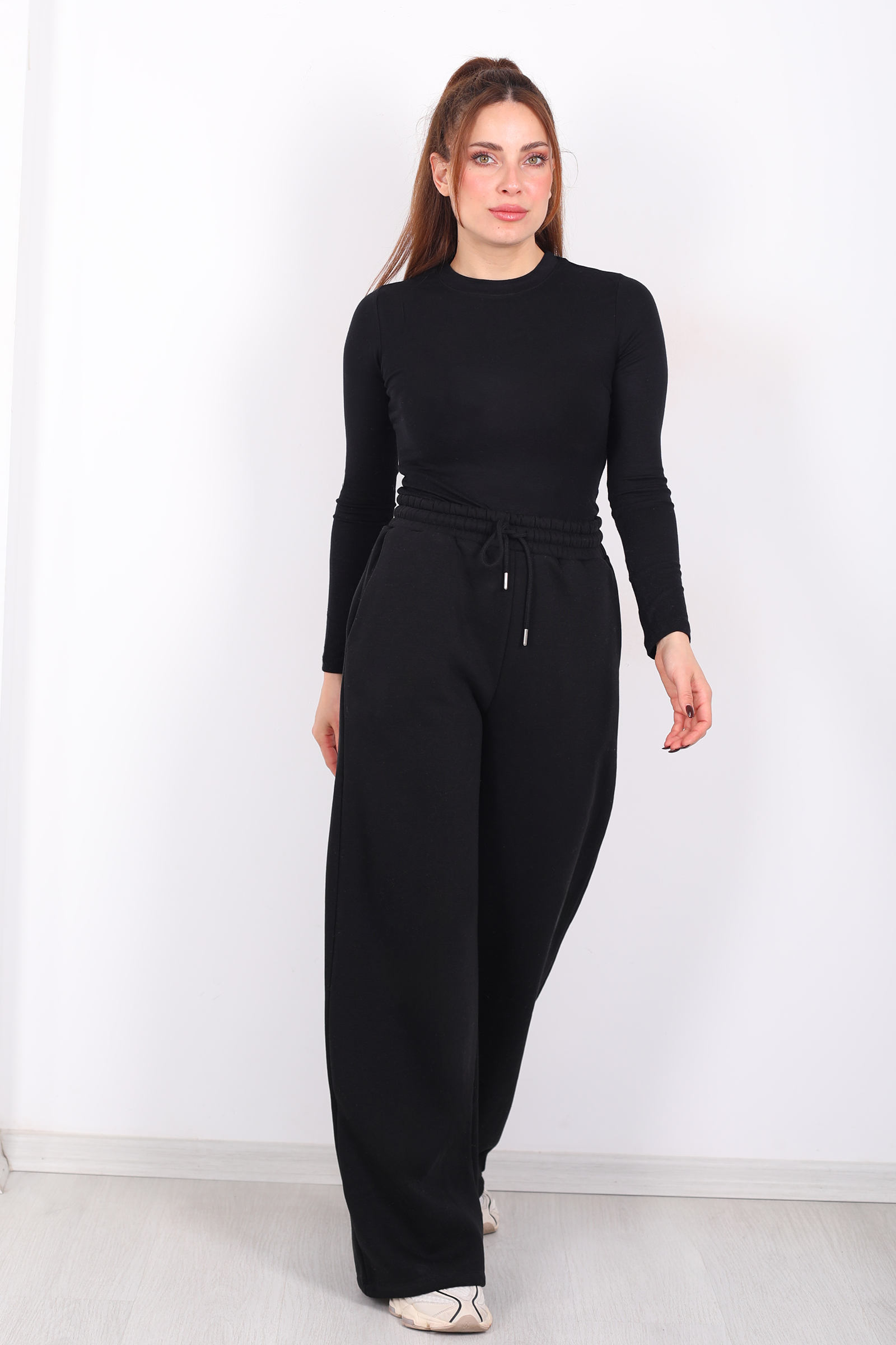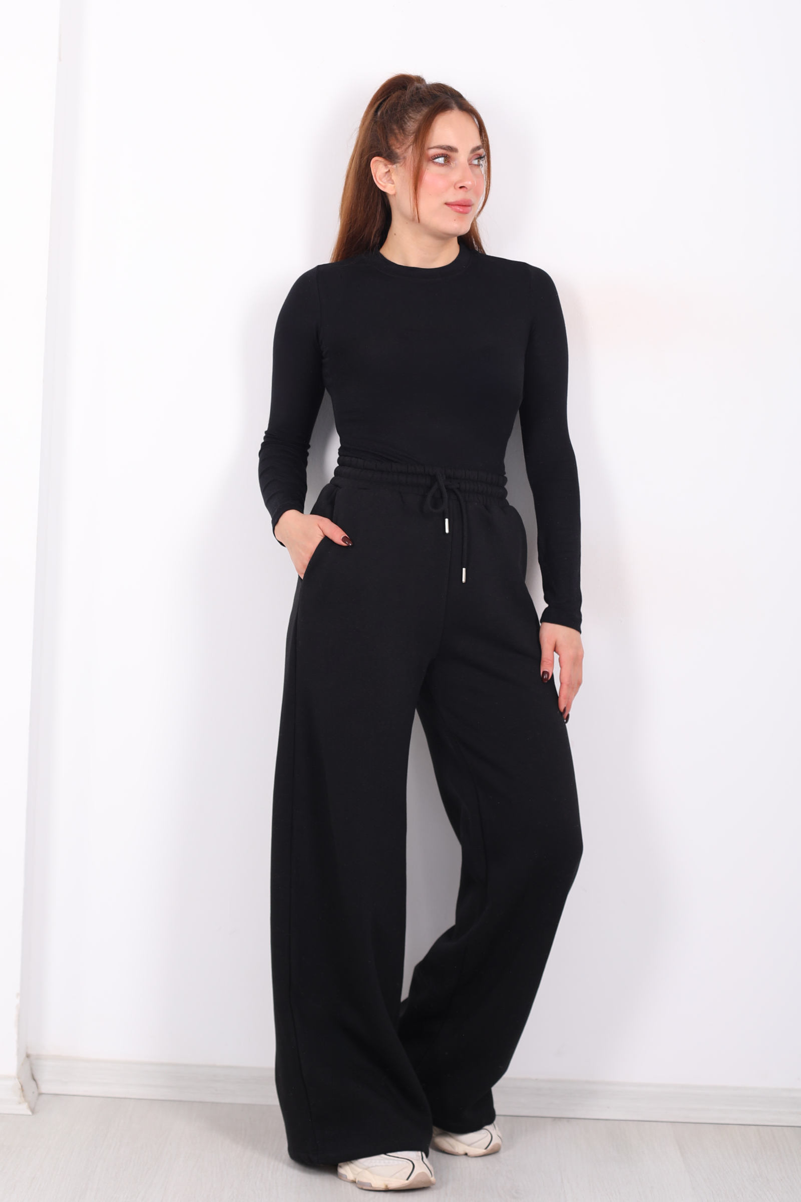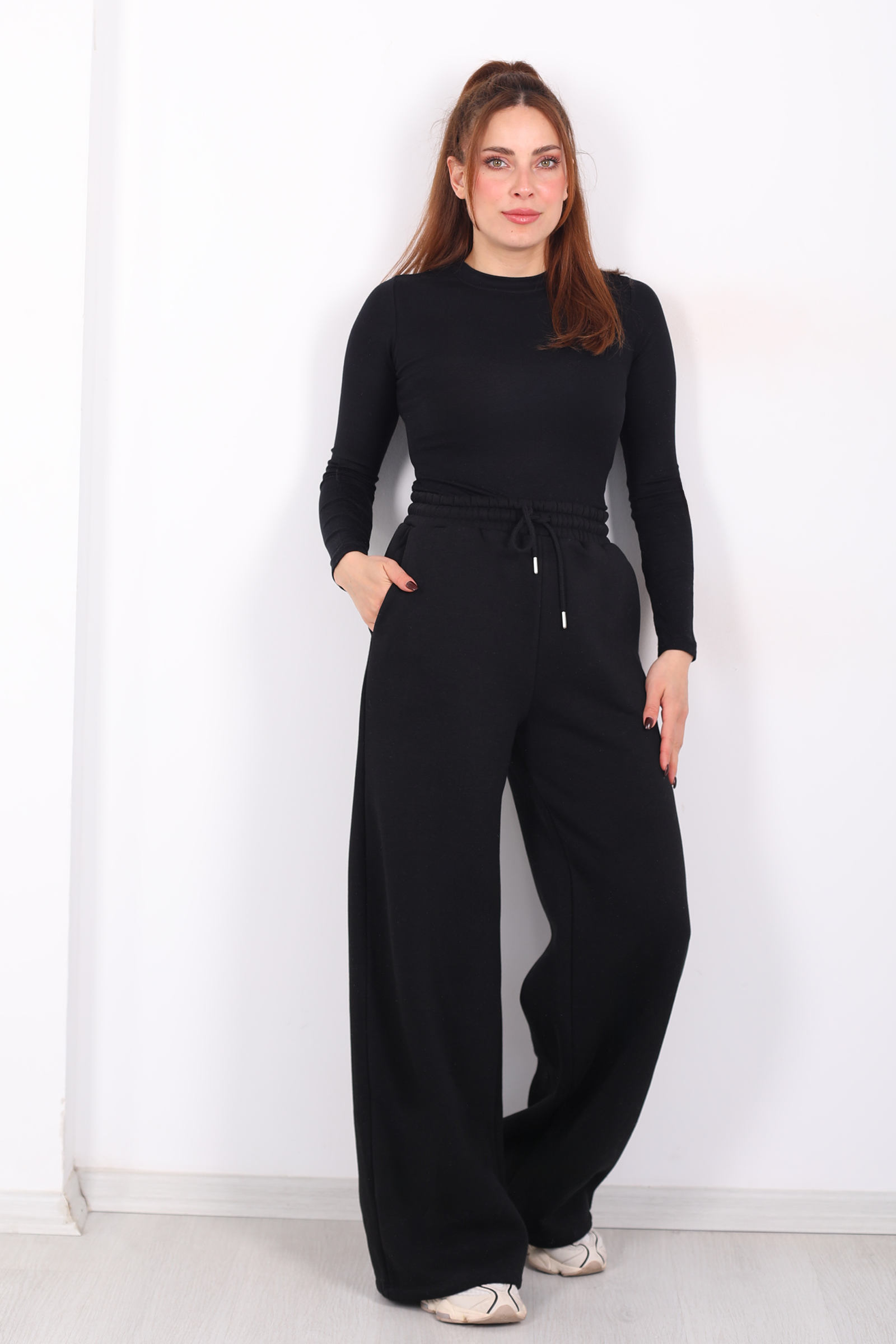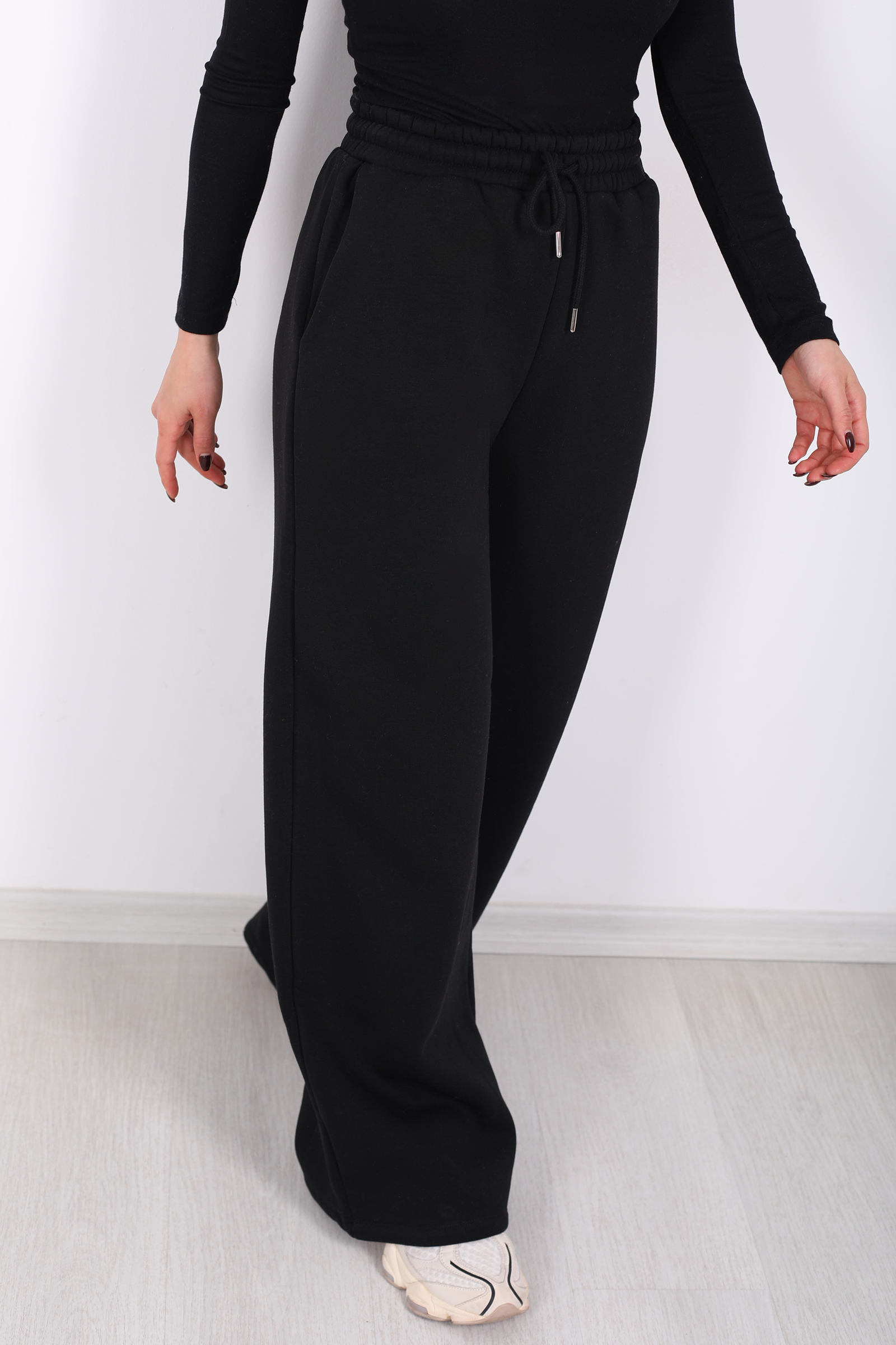 Siyahın sade ama güçlü duruşunu üç iplik kumaşla buluşturan bu eşofman altı, geniş paça formuyla sportif tarzı elevasyonlu bir çizgiye taşır. Bel lastiği, ideal uyum sağlayarak hareket ederken özgür hissetmenize yardımcı olur; kumaşın yumuşak yüzeyi her adımda rahatlıkla sarar. Yan cepler ise sadece fonksiyonel değil, stilinize küçük bir karakter vurgusu ekler. Gün içinde hareketli planlar ya da hafta sonu ritüelleri için tercih ettiğinizde sade bir parça olmaktan çıkarak duruşunuzu tamamlayan bir ifade kazanır.