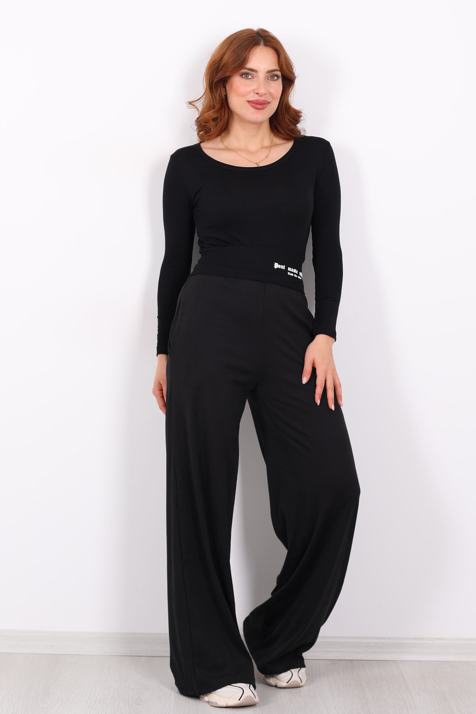 Siyah kadifenin lüks dokusu ve bol paçanın özgür formuyla buluşan bu pantolon, hem zarif hem rahat bir stil ifadesi sunuyor. Günlük kullanımdan akşam buluşmalarına kadar çok yönlü bir parça olarak gardırobunuzun yıldızı olmaya aday.iyah kadife, hemen her üst ile mükemmel bir uyum sağlar: basic beyaz tişörtten zarif bluzlara kadar.