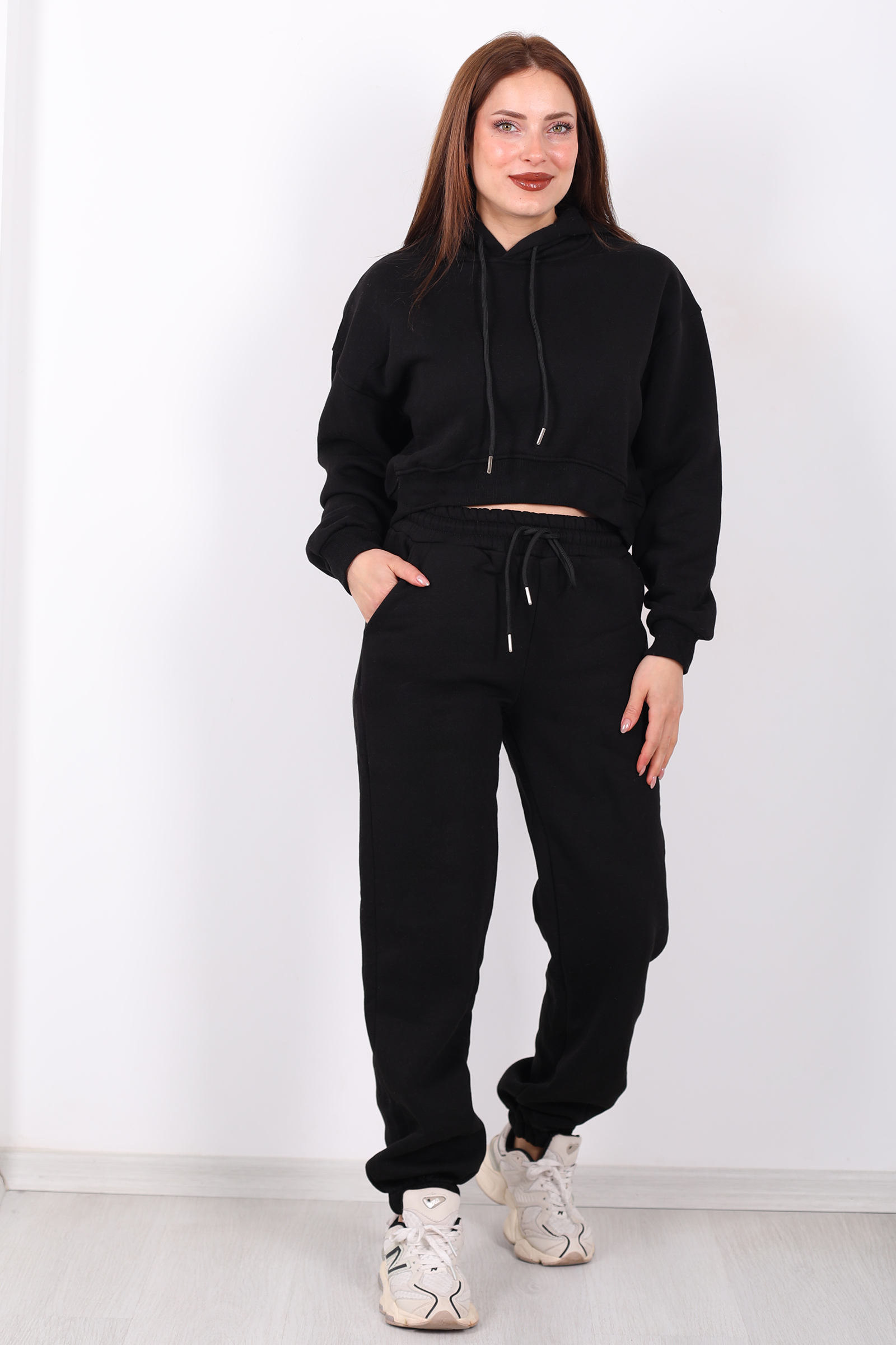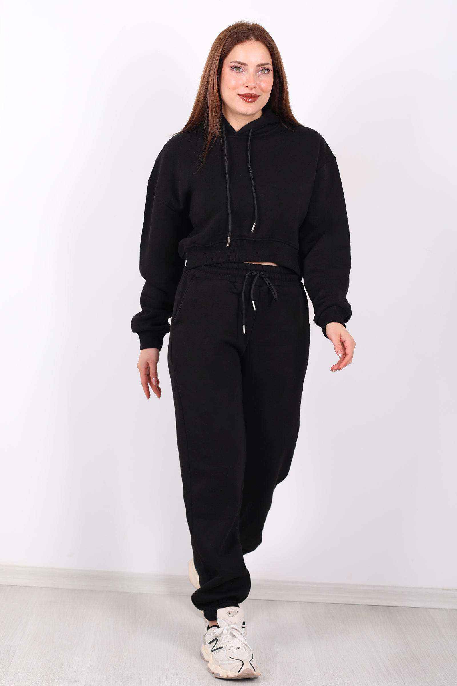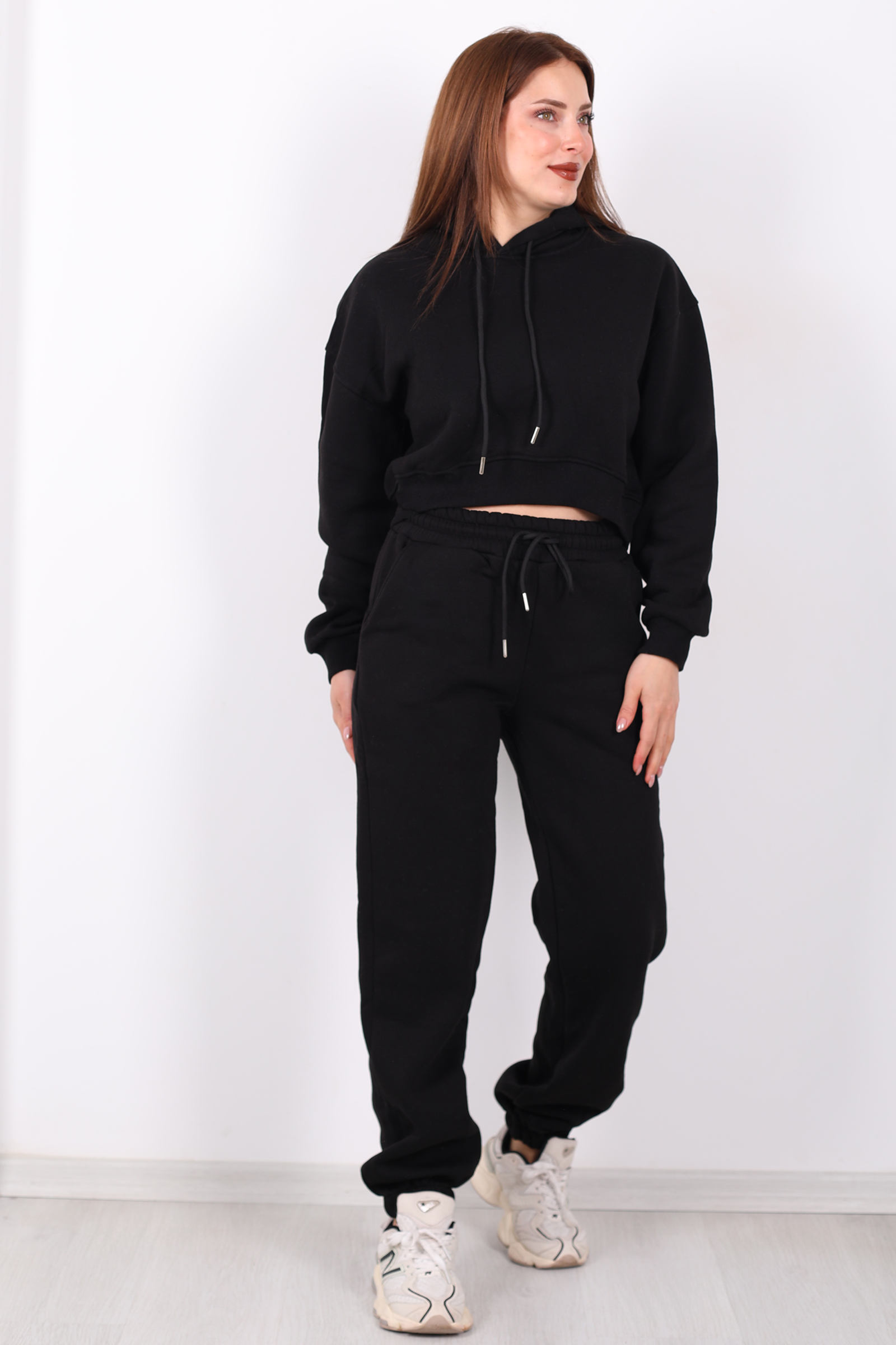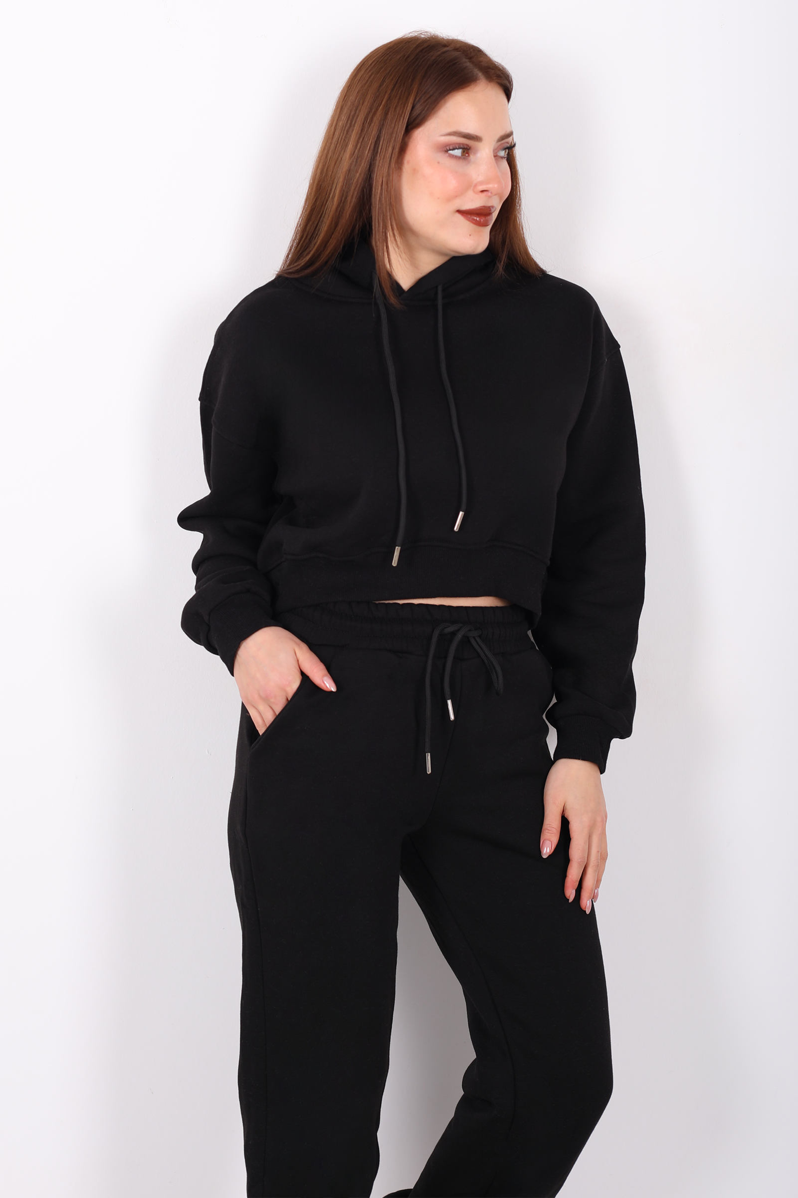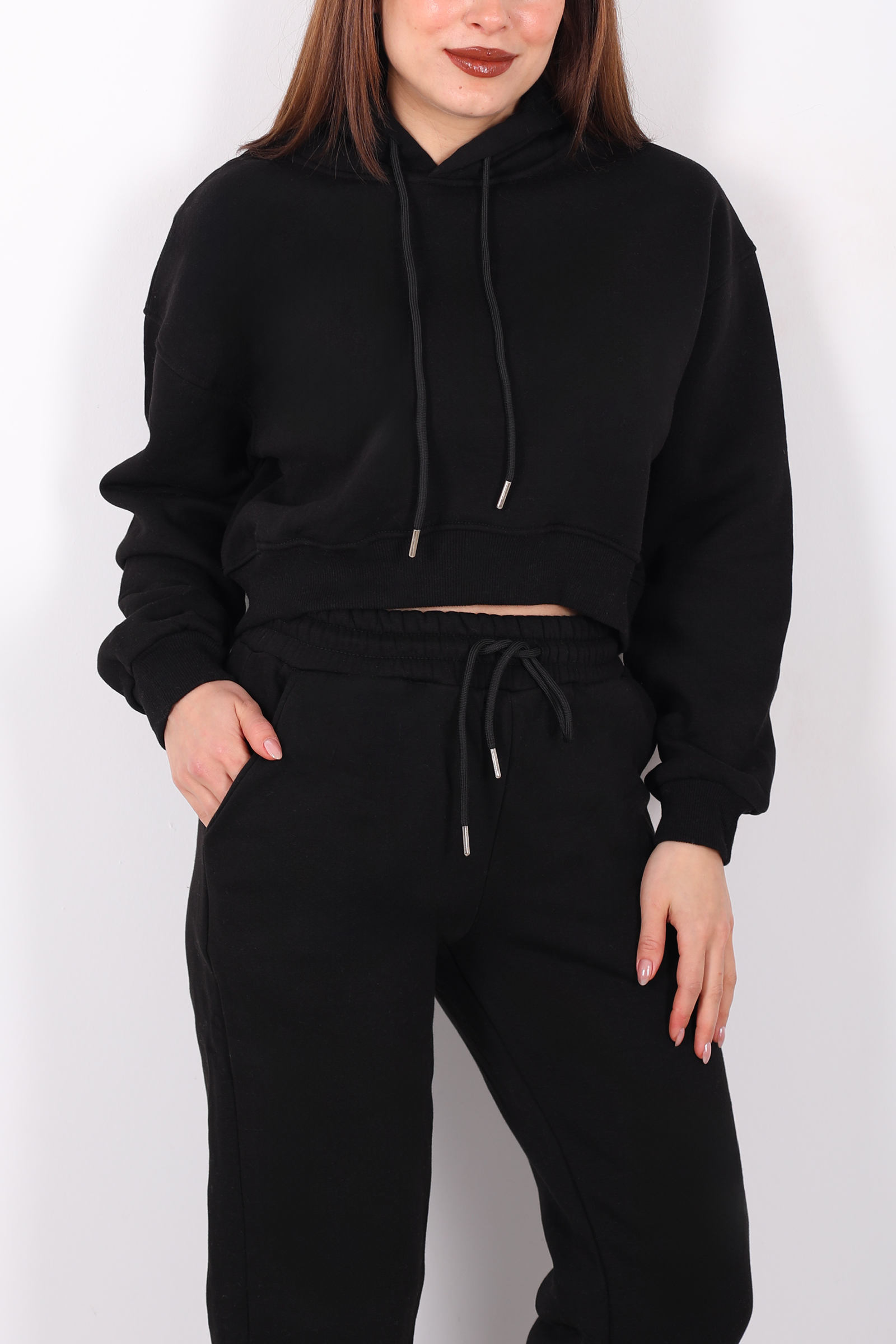 Her adımda kendini güçlü ve özgür hissedenler için: siyah beli lastikli kapüşonlu üç iplik sweat takım, sokak stiline sükûnet ve karakter katan bir seçim. Beli lastikli tasarımı sayesinde bedene tam otururken aynı zamanda kolay giy‑çık rahatlığı sunar; kapüşon detayı hafif serin sabahlarda sığınak görevi görür.