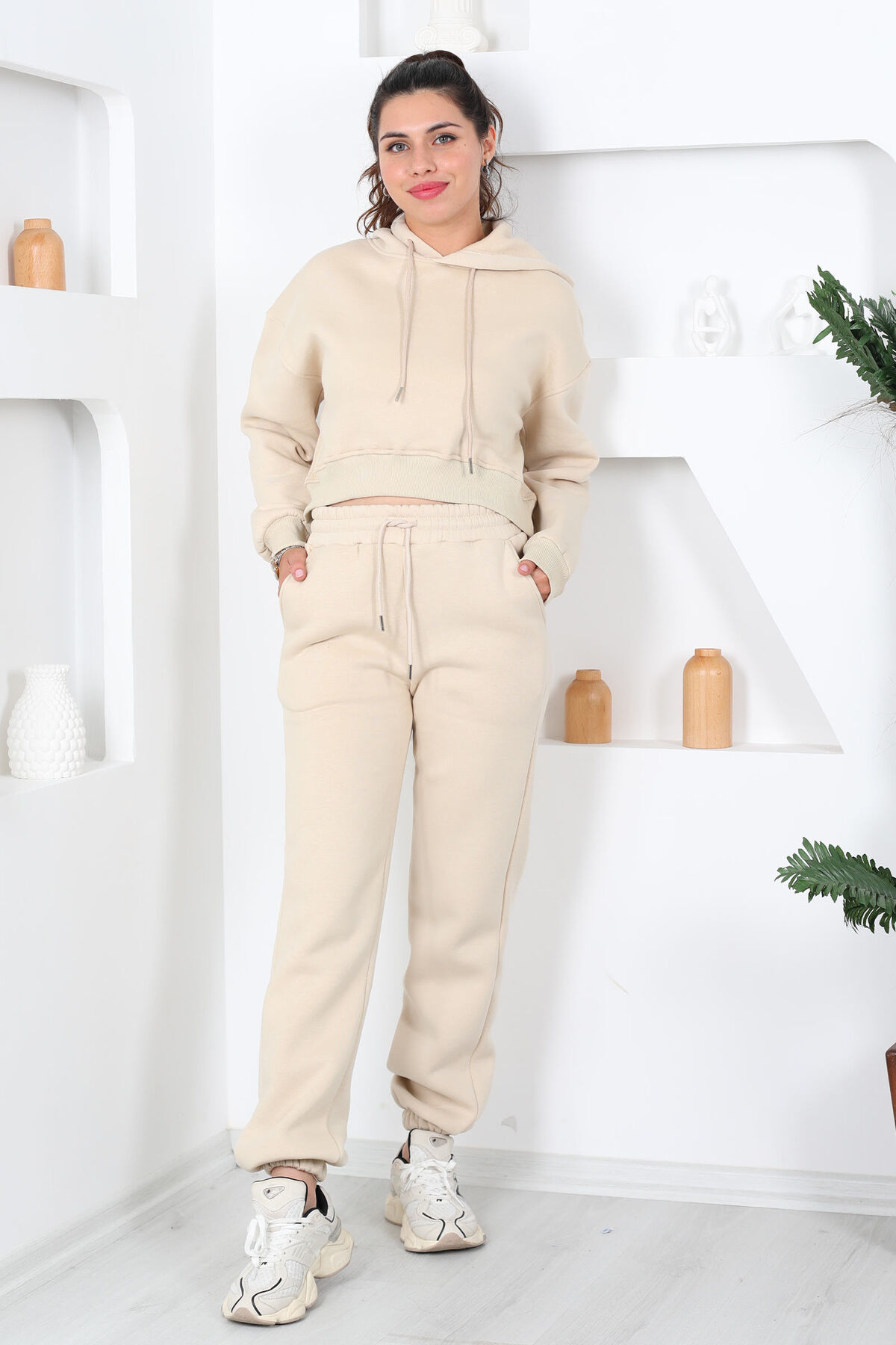 Sadelikten vazgeçmeyenler için tasarlanmış bu taş rengi sweat takım, rahatlığı şıklıkla buluşturuyor. Kapüşon detayının spor ruhu ve beli lastikli kesimin rahatlığıyla, her anınıza eşlik edecek ideal parça.Oversize kaban ya da kot ceketle kontrast yarat ve tarzını güçlendir.