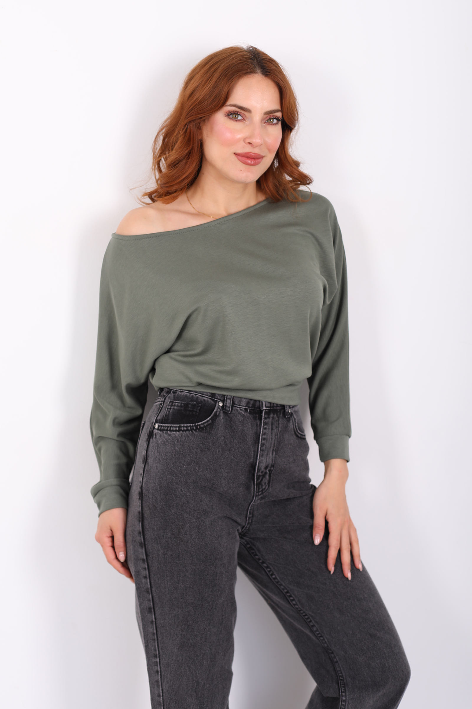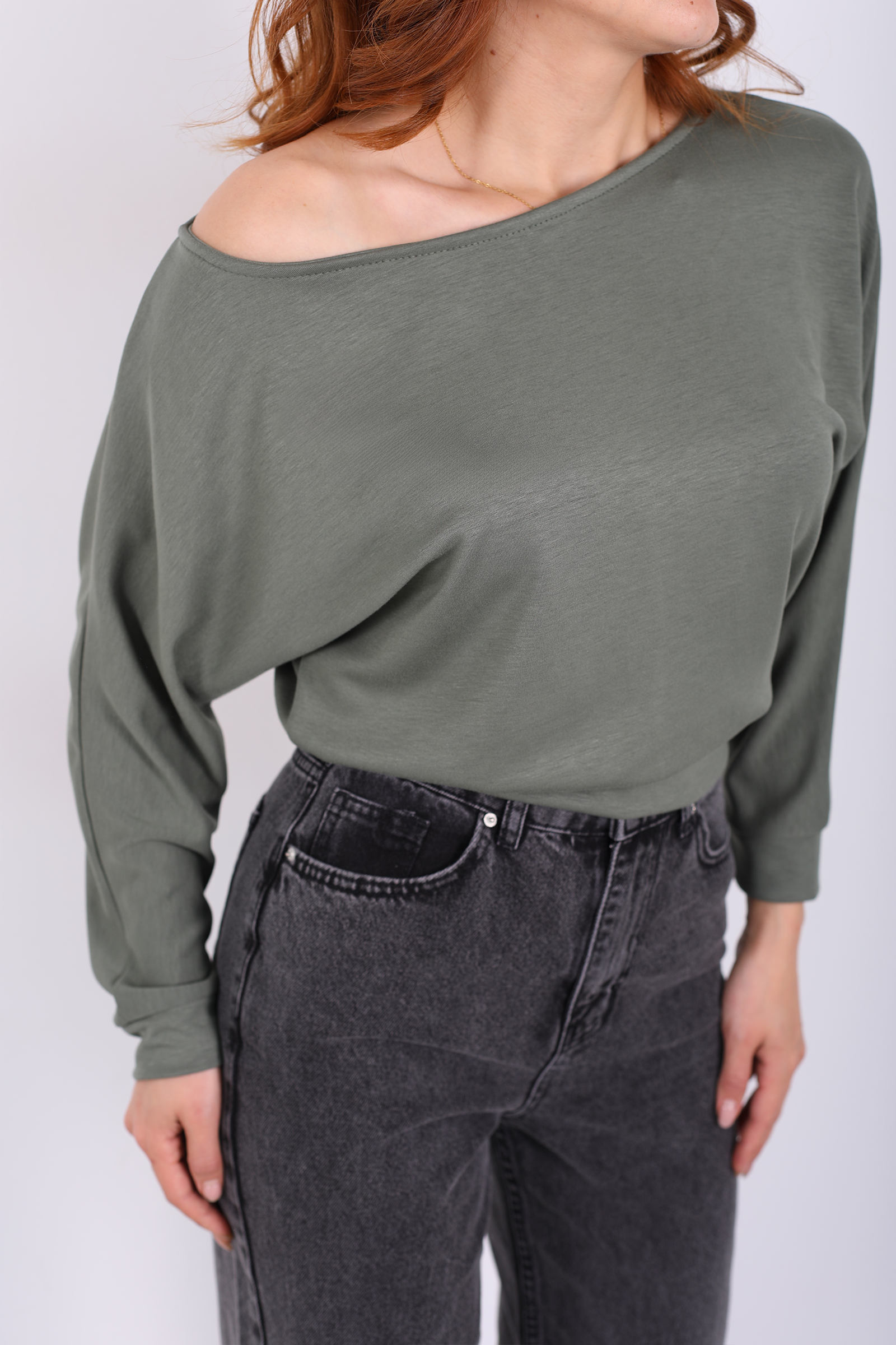 Kayık Yaka Basic Modal Ekru Kadın Bluz