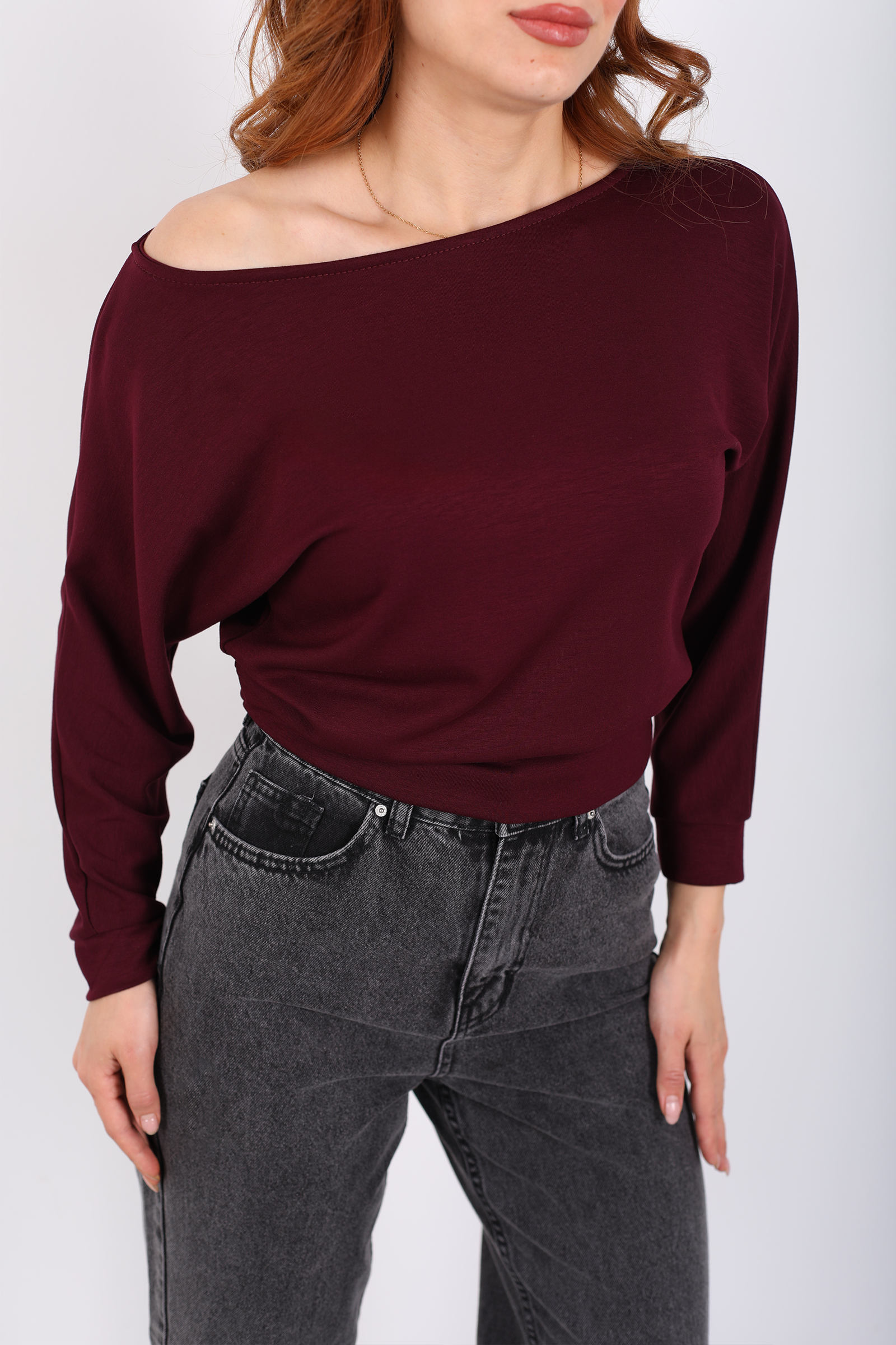Kayık Yaka Basic Modal Bordo Kadın Bluz