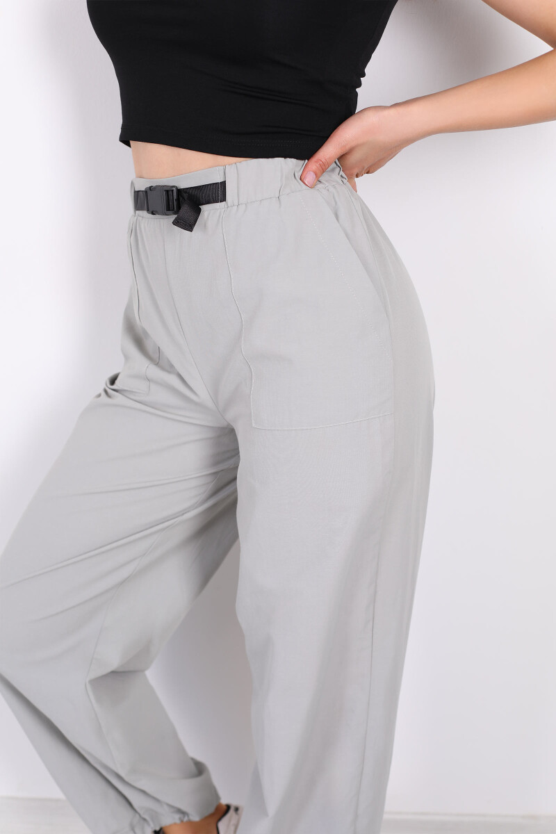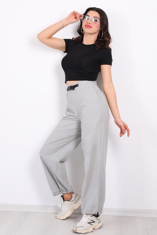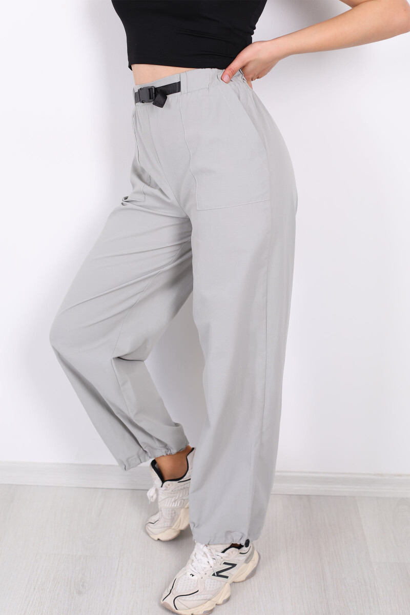 Beli Lastikli Kemer Tokalı Gri Kadın Poplin Pantolon, şıklığı ve rahatlığı bir arada sunan modern bir tasarıma sahip. Yüksek bel kesimi, belinizi zarifçe sararken; kemer tokalı detayı, pantolona sofistike bir dokunuş katıyor. Gri rengi, nötr yapısıyla her üstle kolayca kombinlenebilir ve şıklığınızı tamamlar.