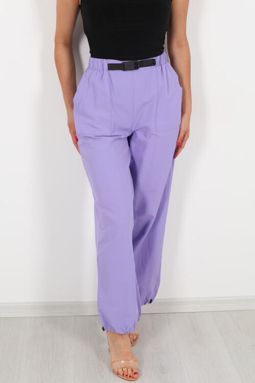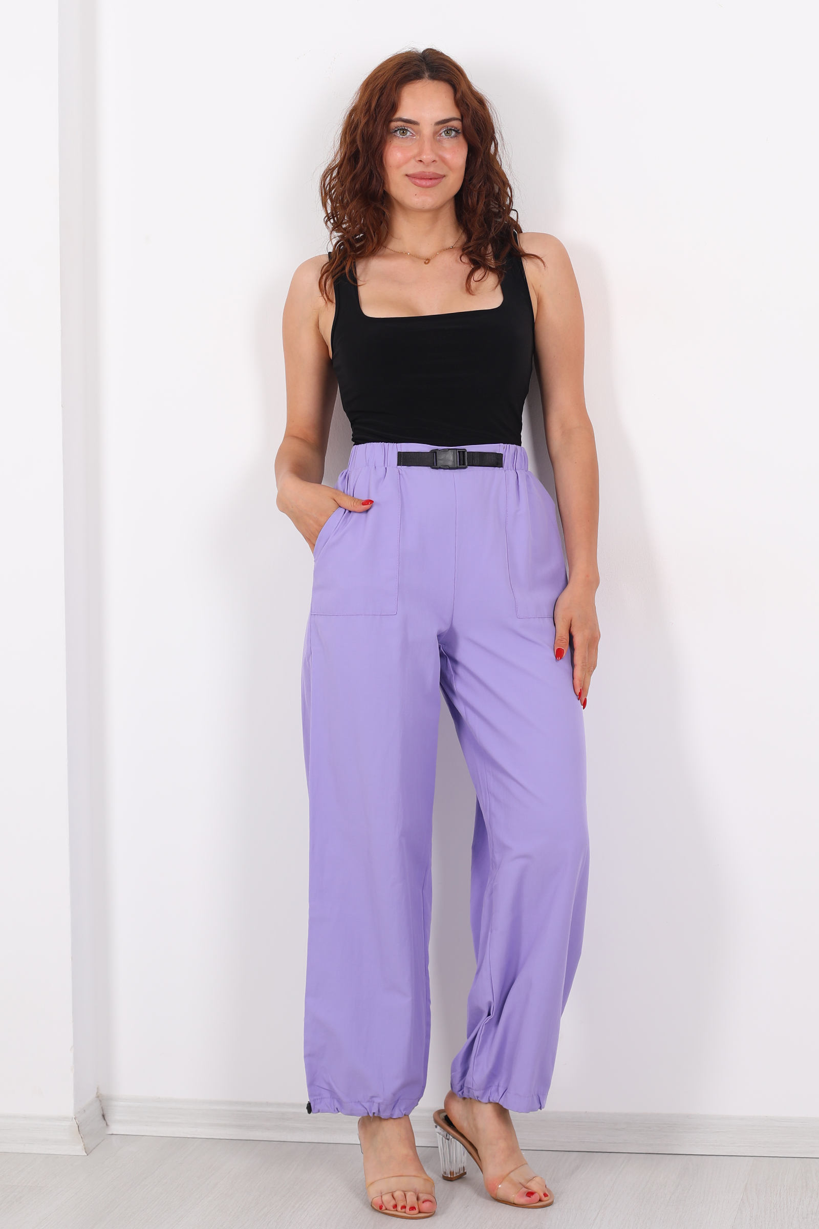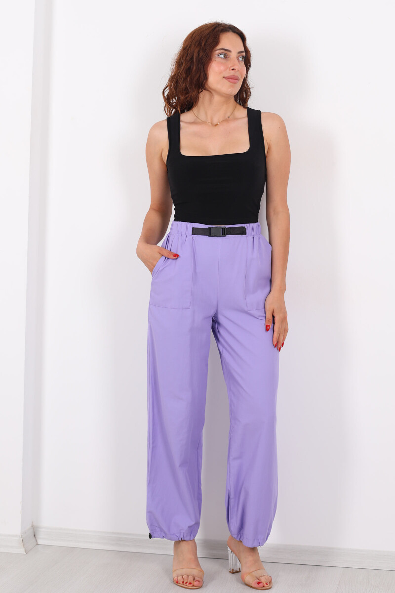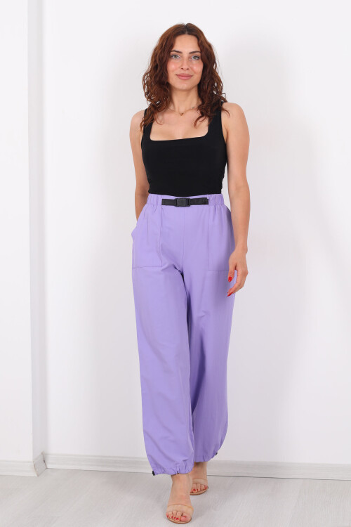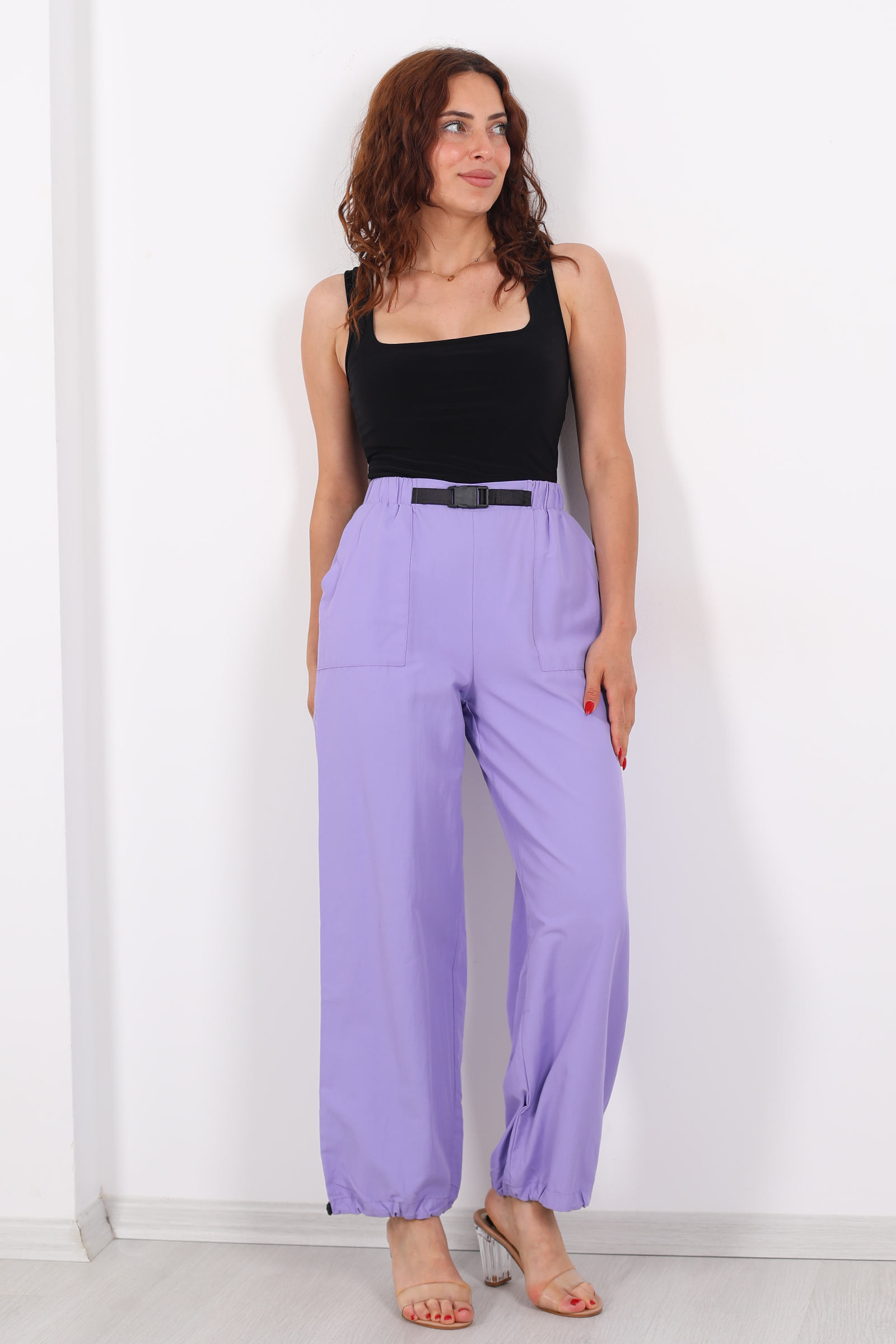 Gardırobunuza hem rahatlık hem de şıklık katacak bu lila poplin pantolon, trend kesimi ve fonksiyonel detaylarıyla öne çıkıyor. Yüksek bel tasarımı, beli lastikli yapısı ile mükemmel oturuş sağlar ve kuşaklı kemer detayı ile stili tamamlar. Canlı ve zamansız lila tonuyla yaz‑bahar kombinlerine zarafet katar.Sabah yürüyüşleri ya da günlük stiliniz için beyaz basic tişört ve sneaker ile sade şıklık.