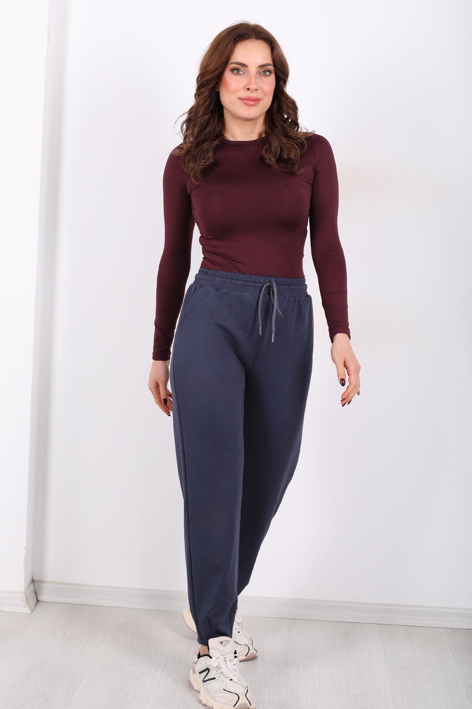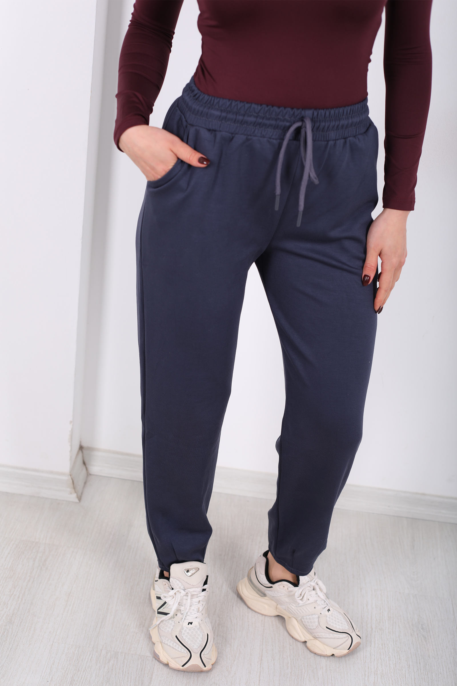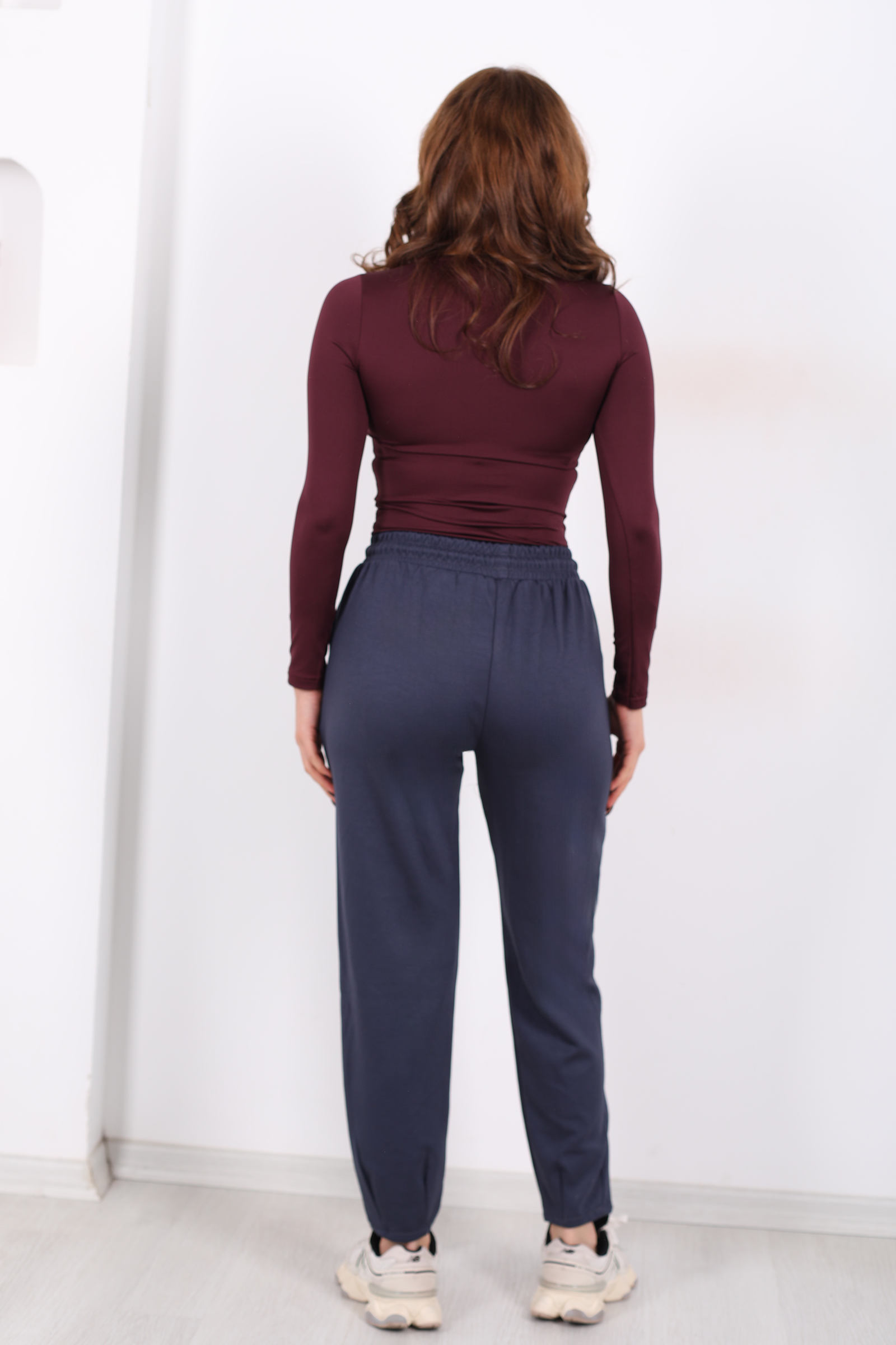 Beli Lastikli Yüksek Bel Lacivert Kadın Modal Pantolon