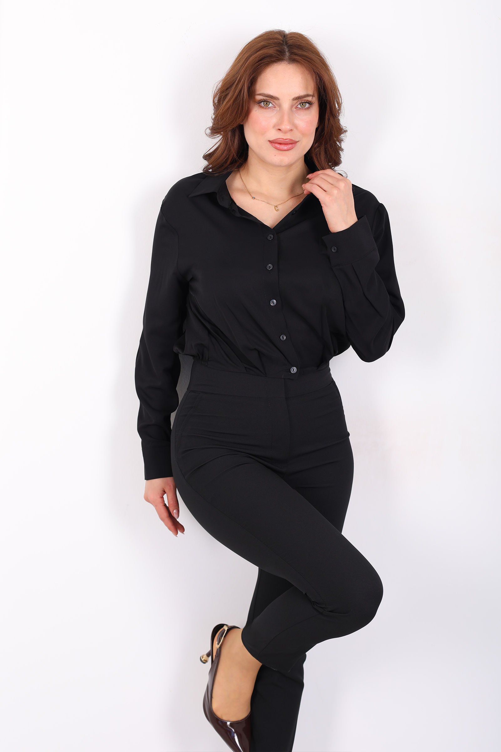 Siyah beli lastikli pileli kısa gömlek, zarif ve modern tasarımıyla her kombinle uyum sağlar. Beli lastikli tasarımı, vücuda otururken pileli yapısı, hareketli ve dinamik bir görünüm sunar. Siyah rengi, her zaman şık ve zamansızdır, her ten rengiyle mükemmel bir uyum yakalar. Bu gömlek, etekler veya yüksek bel pantolonlarla şık bir kombin oluştururken, rahat kesimiyle gündelik hayatta da kullanılabilir. Hem rahat hem de şık bir görünüm arayanlar için mükemmel bir seçenek.