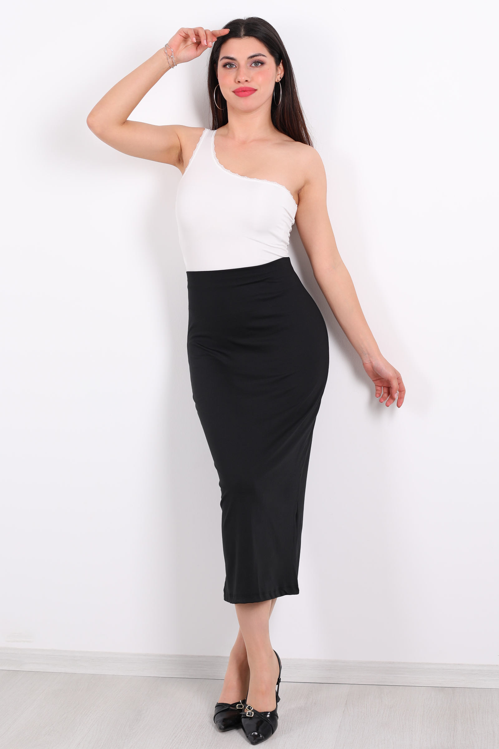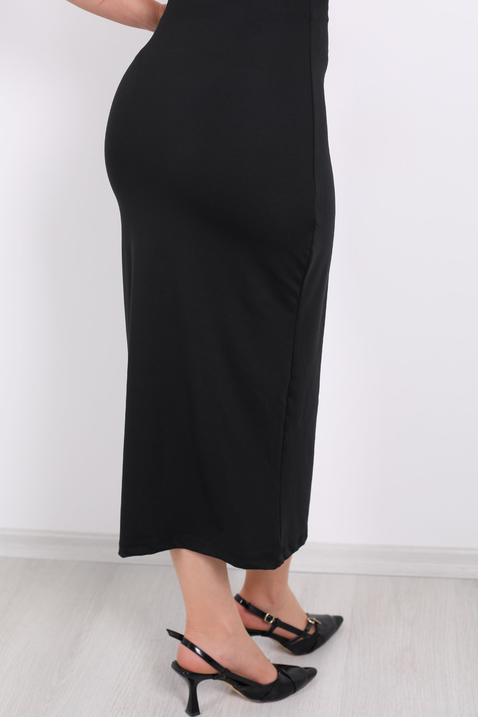 Siyahın zarifliğini ve Sandy kumaşının konforunu bir araya getiren bu kalem etek, şıklığınızı tamamlamak için ideal bir seçenek. Beli lastikli tasarımı, rahat bir kullanım sunarken, vücuda oturan kalem kesimiyle feminen bir siluet oluşturur. 84 cm boyu ve 43 cm basen ölçüsüyle, vücut hatlarınızı zarif bir şekilde vurgular. %90 polyester ve %10 elastan karışımı kumaşı sayesinde esneklik ve dayanıklılık sağlar.