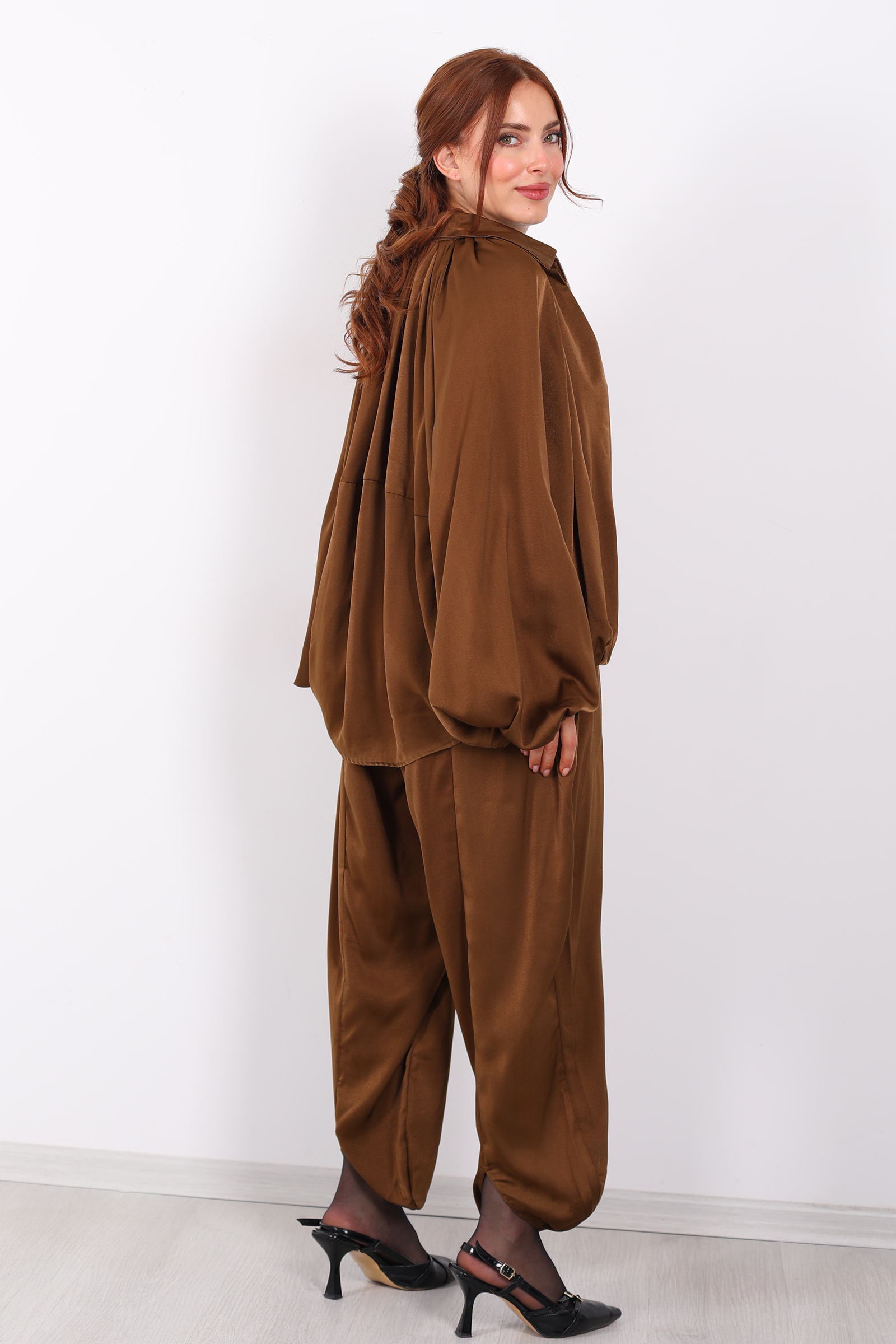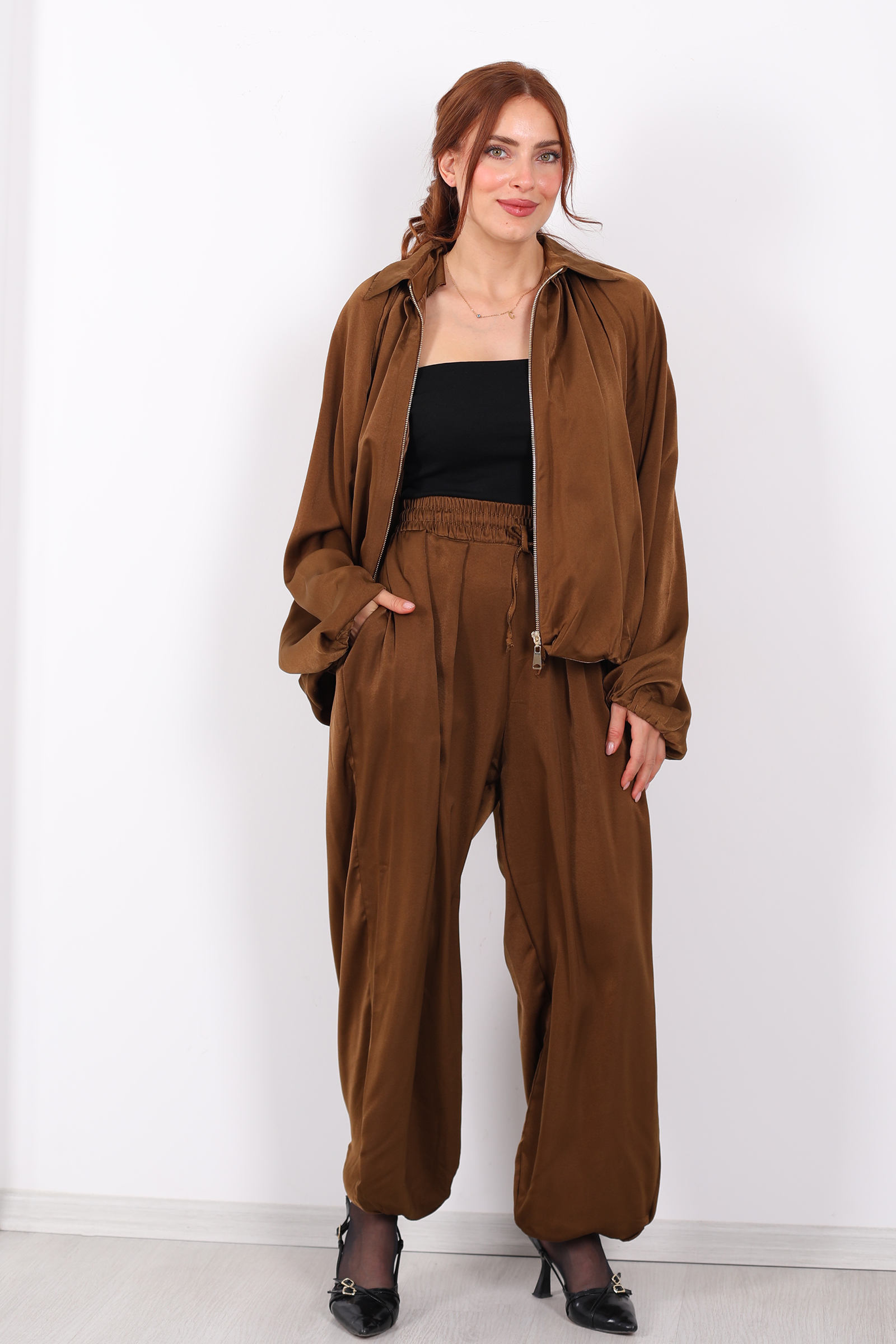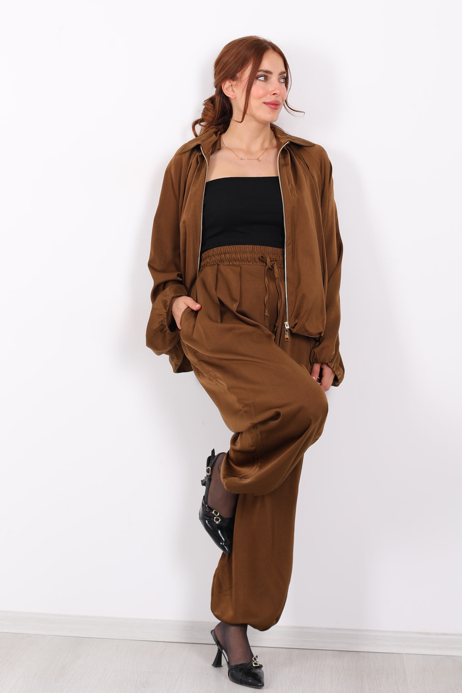 Bu Beli Lastikli Saten Taba Kadın Şalvar, zarafeti ve rahatlığı bir araya getiren sofistike bir parça. Taba rengi sıcak ve doğal bir ton sunarken, saten kumaş parlak ve akıcı dokusuyla lüks bir his verir. Belinde yer alan lastik detayı sayesinde yüksek konfor sağlar, kolayca giyilip çıkarılabilir ve beden uyumunu artırır.