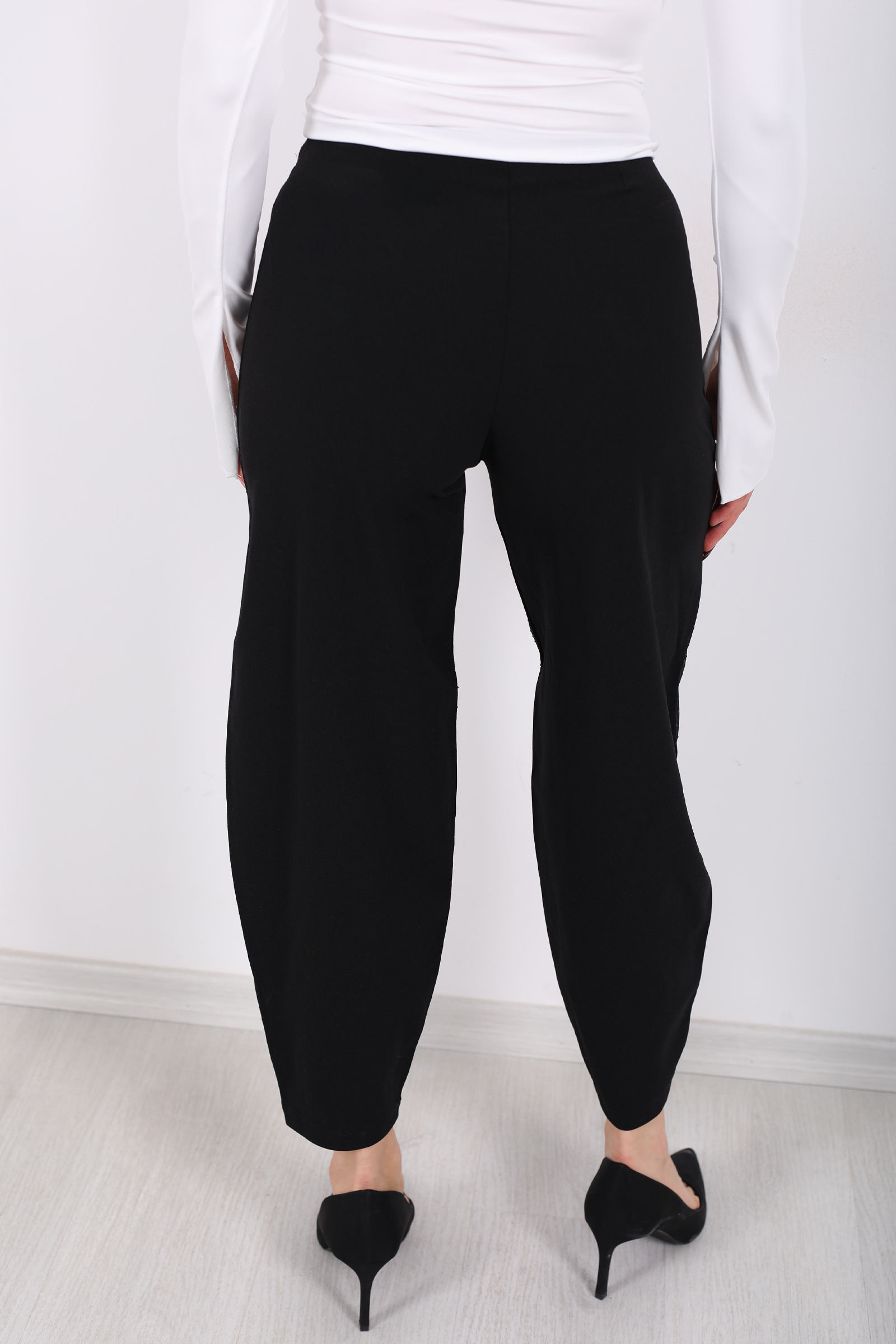 Beli Lastikli Yüksek Bel Siyah Kadın Modal Pantolon